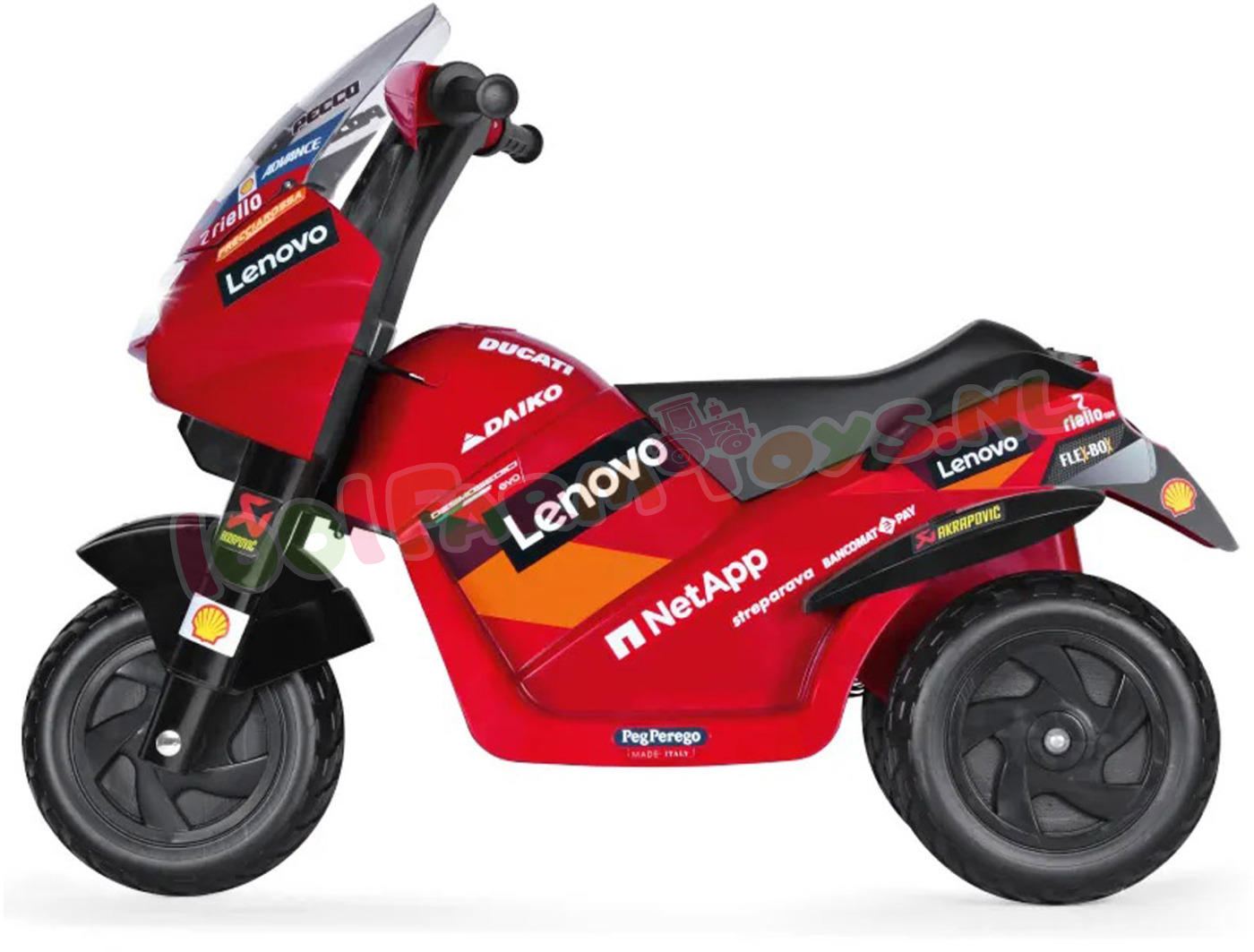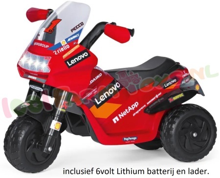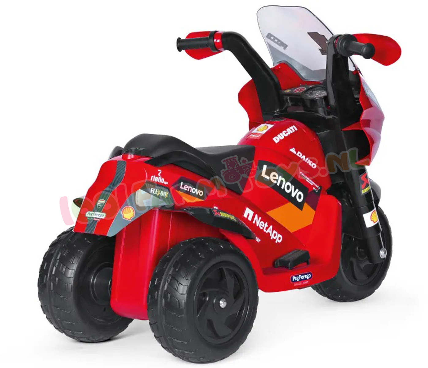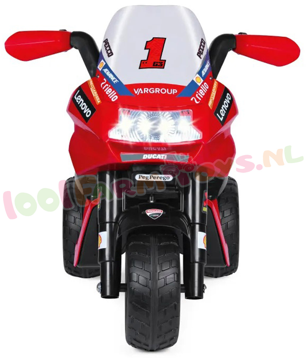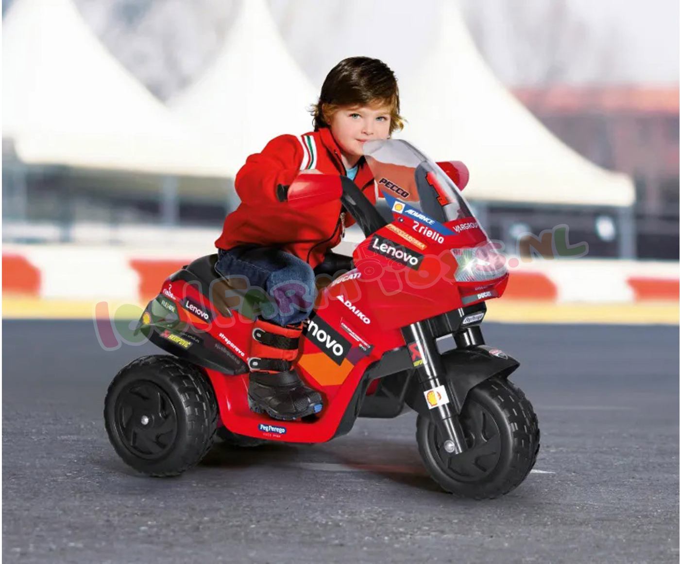 Plezier in pole position met een elektrische Ducati-motorfiets met licht en geluid.
