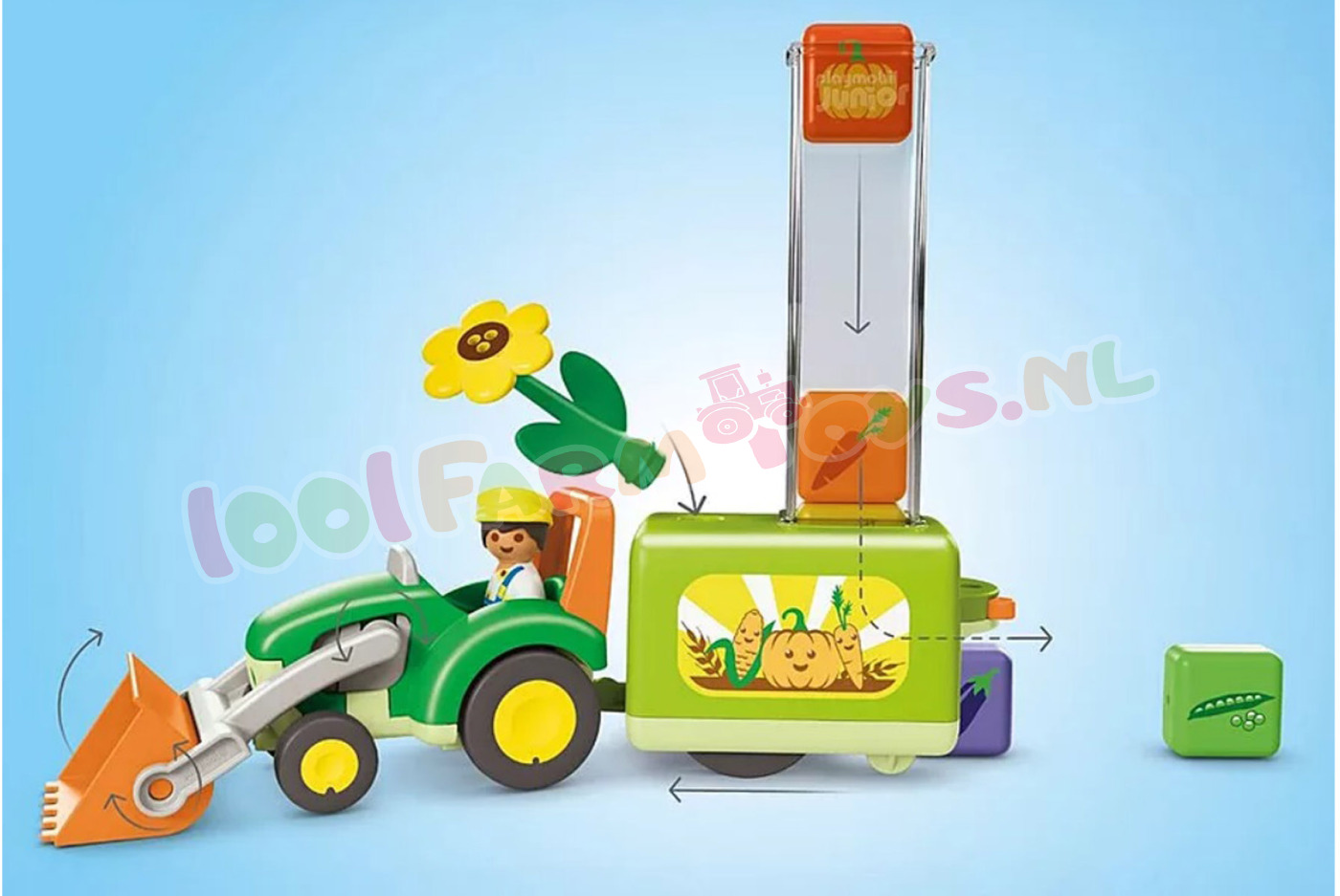 • Plantenwagen compatibel met veel PLAYMOBIL JUNIOR voertuigen