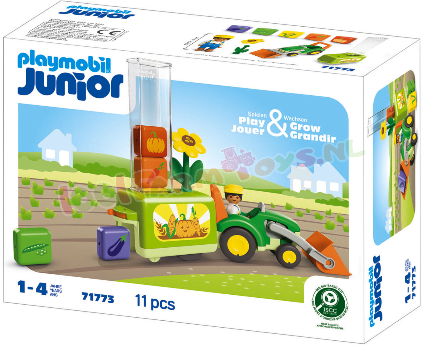 Alle PLAYMOBIL JUNIOR speelsets zijn gemaakt van meer dan 90% bio-gebaseerd plastic (ISCC PLUS-gecertificeerd). Het plastic kan worden herleid tot bio-gebaseerde grondstoffen via de massabalansmethode. Hiermee zetten we ons in om het gebruik van fossiele grondstoffen aanzienlijk te verminderen.