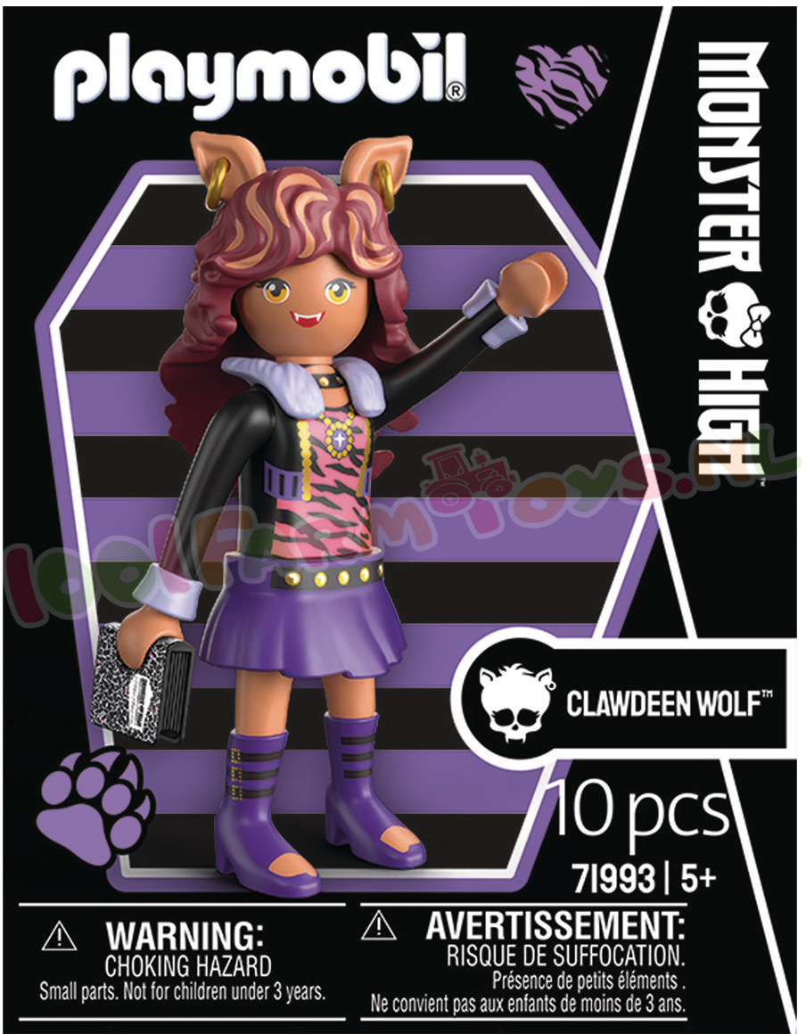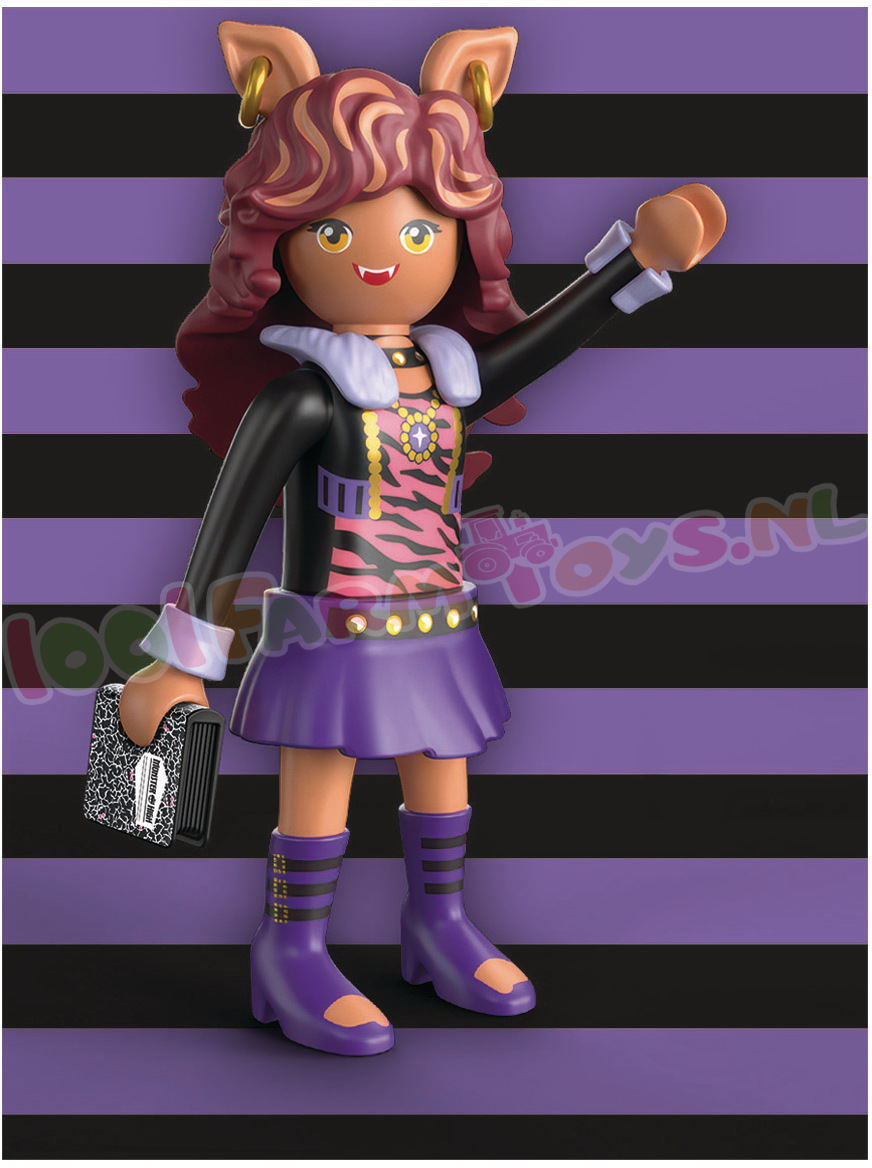 Clawdeen Wolf: Welkom in de Monster High™-wereld van PLAYMOBIL – met Clawdeen Wolf! Deze stijlvolle trendsetter valt op met haar zelfverzekerde. coole look en een griezelig-schattig boekaccessoire voor nog meer karakter. Dankzij de typische PLAYMOBIL-beweeglijkheid en het iconische ontwerp maakt Clawdeen elke verzameling compleet – een absolute must-have voor Monster High™-fans!Clawdeen is er helemaal klaar voor om de dag te veroveren in echte Monster High™-stijl! Deze gedetailleerde PLAYMOBIL-tiener heeft modulaire onderdelen om haar look eindeloos te mixen en matchen. Met haar boek erbij wordt het verhaal nog leuker. Of ze nu zelfverzekerd door de gangen loopt of stiekem haar geheimen opschrijft – Clawdeen barst van de creatieve inspiratie. Met de kenmerkende PLAYMOBIL-speelpret en haar gevoel voor mode is ze een droom voor elke monsterfan!Zie ook Monster High: PY71992; PY71993; PY71994; PY71995; PY71996; PY71997; PY71998; PY72043; PY72044; PY72045; PY72046