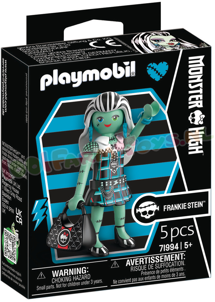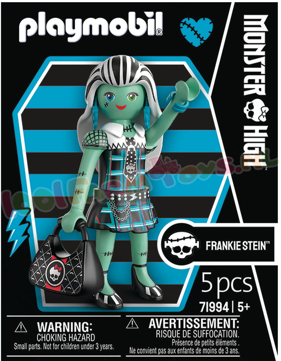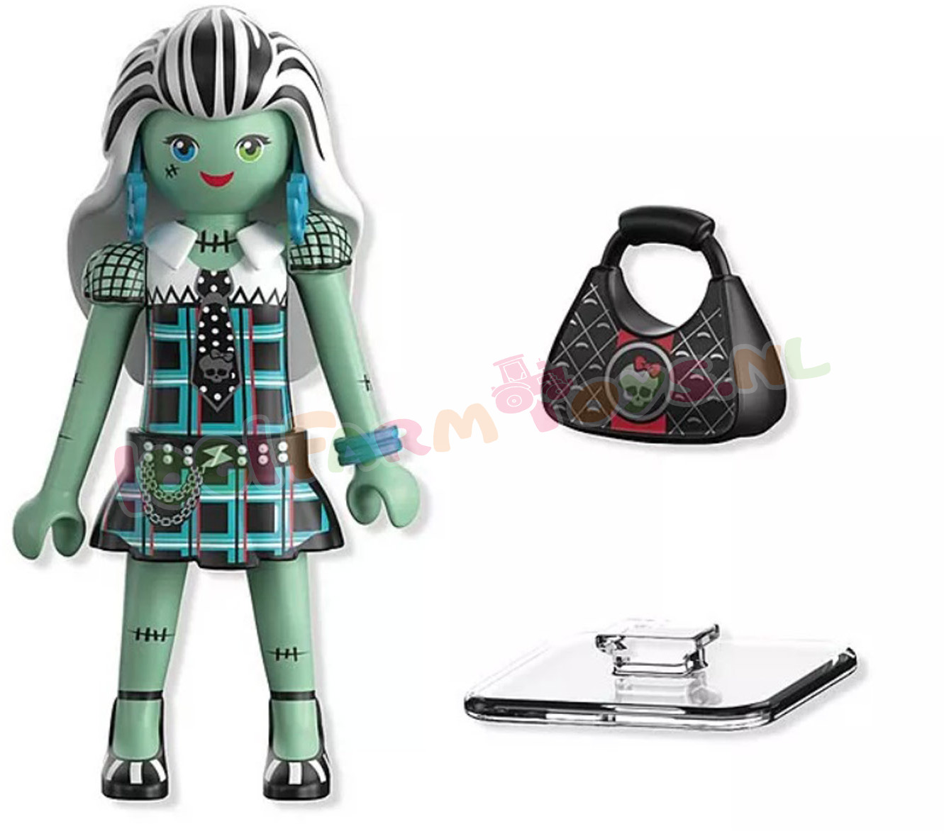 Frankie Stein: Klaar voor opwindend speelplezier? Frankie Stein combineert het iconische Monster High™-ontwerp met de klassieke PLAYMOBIL-charme – gedetailleerd uitgewerkt met een bliksemsnelle handtas in bout-look. Deze set laat Frankies onmiskenbare patchworkstijl perfect tot zijn recht komen – een echt cultpersonage voor alle Monster High™-fans!Frankie's armen en benen zijn klaar om te mixen. matchen en poseren dankzij het modulaire PLAYMOBIL-design – ideaal voor bliksemsnelle avonturen of spookachtig leuke displays. Haar handtas zit boordevol hoogspanning en haar gestikte outfit blijft trouw aan haar bekende stijl. Of ze nu de Monster High™-school binnenstormt of jouw collectie nieuw leven inblaast – deze figuur brengt een schok aan flair en fantasie. Sluit je aan bij het speelplezier en laat het knetteren maar beginnen!Zie ook Monster High: PY71992; PY71993; PY71994; PY71995; PY71996; PY71997; PY71998; PY72043; PY72044; PY72045; PY72046