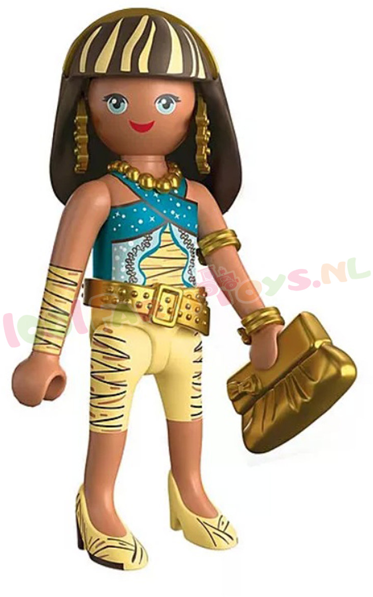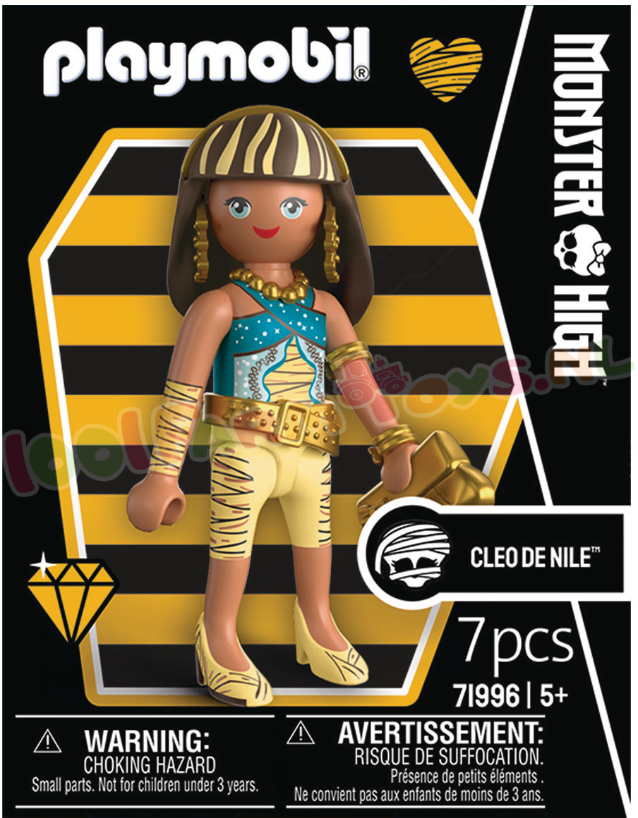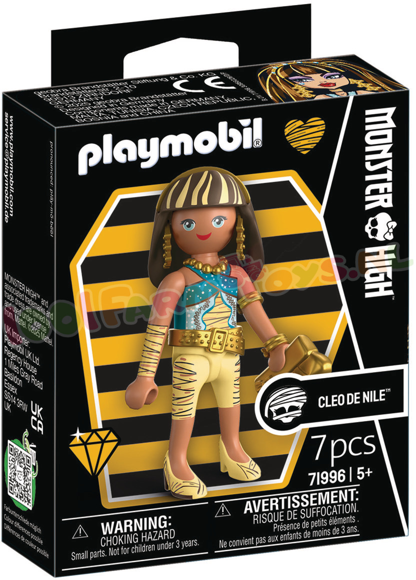 Cleo De Nile: Een echte PLAYMOBIL-schat: Cleo De Nile combineert antieke glamour met de moderne stijl van Monster High™! Gehuld in koninklijke gewaden. afgewerkt met gouden accenten en voorzien van een stijlvolle handtas. is ze klaar om de schoolgangen – en elke verzamelplank – te veroveren. Om mee te spelen of om te verzamelen: Deze mummiekoningin is de perfecte mix van mystieke chic en tijdloos PLAYMOBIL-design.Dankzij het modulaire PLAYMOBIL-ontwerp kunnen Cleo’s ledematen in verschillende dramatische poses worden gezet – perfect voor opvallende scènes. Haar slanke silhouet en elegante details maken haar tot een echte blikvanger in elke Monster High-opstelling. De compacte handtas zorgt voor een speelse twist in elk griezelig verhaal. Ontworpen om te mixen. matchen en schitteren: met deze PLAYMOBIL-figuur beleven fans Cleo’s koninklijke avonturen telkens weer opnieuw – met stijl in overvloed!Zie ook Monster High: PY71992; PY71993; PY71994; PY71995; PY71996; PY71997; PY71998; PY72043; PY72044; PY72045; PY72046