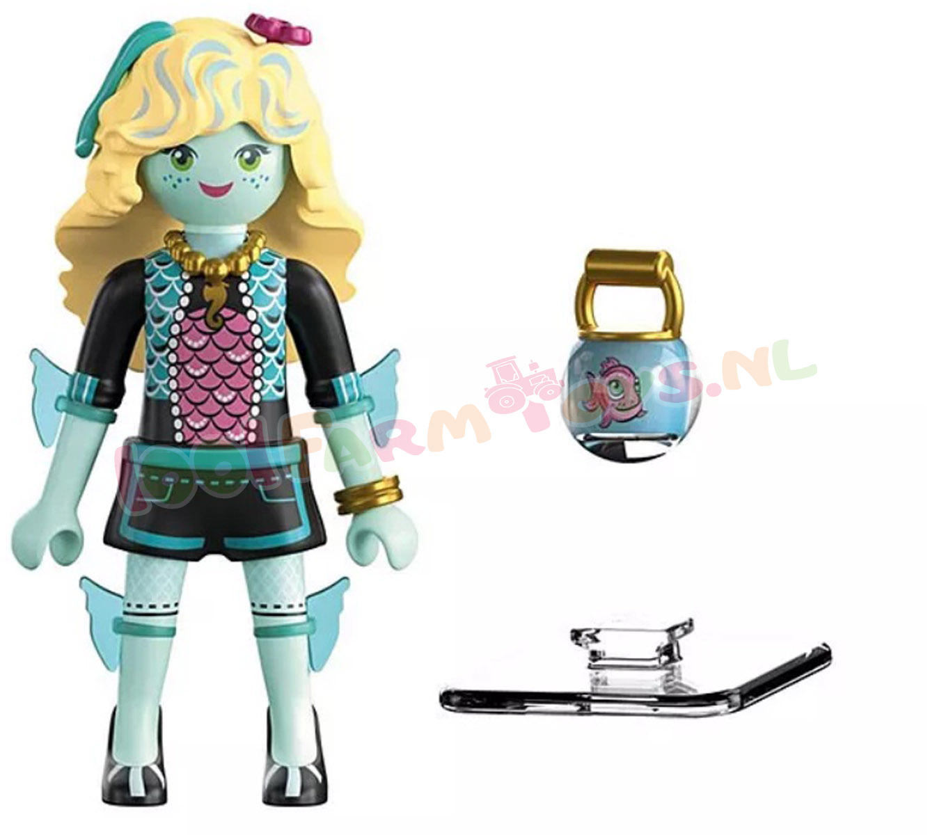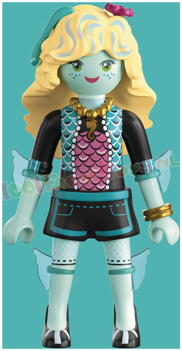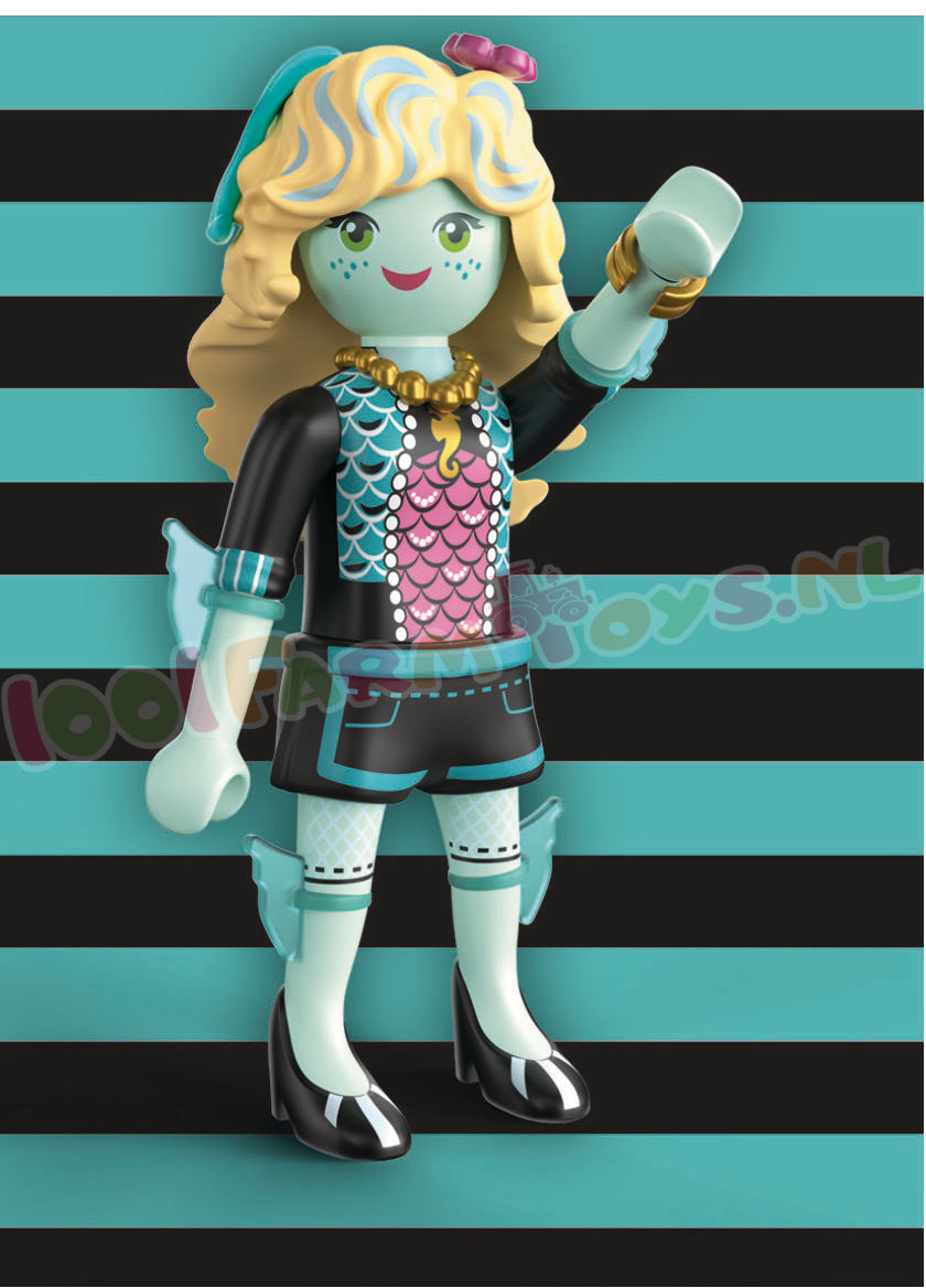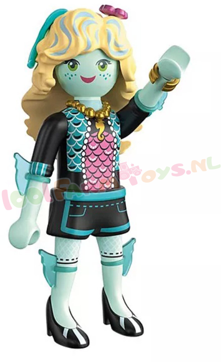 Lagoona Blue Klaar voor een spetterend optreden? Lagoona Blue brengt met haar op de oceaan geïnspireerde details echte zeemagie naar de wereld van Monster High™! Inclusief: een doorzichtige tas in PLAYMOBIL-stijl – inclusief haar visvriendje. Een onderwaterdroom voor iedereen die zijn verzameling een vleugje aquatische charme wil geven.Dankzij het modulaire ontwerp van PLAYMOBIL kan Lagoona coole poses aannemen en haar stijl aanpassen voor eindeloze onderwateravonturen. Haar gedetailleerde kenmerken en vloeiende silhouet zorgen voor een zee van persoonlijkheid in elke collectie. Of ze nu door de gangen van Monster High™ zwemt of zich verliest in diepe dagdromen – deze PLAYMOBIL-tiener is helemaal klaar om mee te surfen op de golf van fantasierijk spel. Perfect om mee te spelen of neer te zetten – een echte aanwinst voor elke griezelige verzameling!Zie ook Monster High: PY71992; PY71993; PY71994; PY71995; PY71996; PY71997; PY71998; PY72043; PY72044; PY72045; PY72046