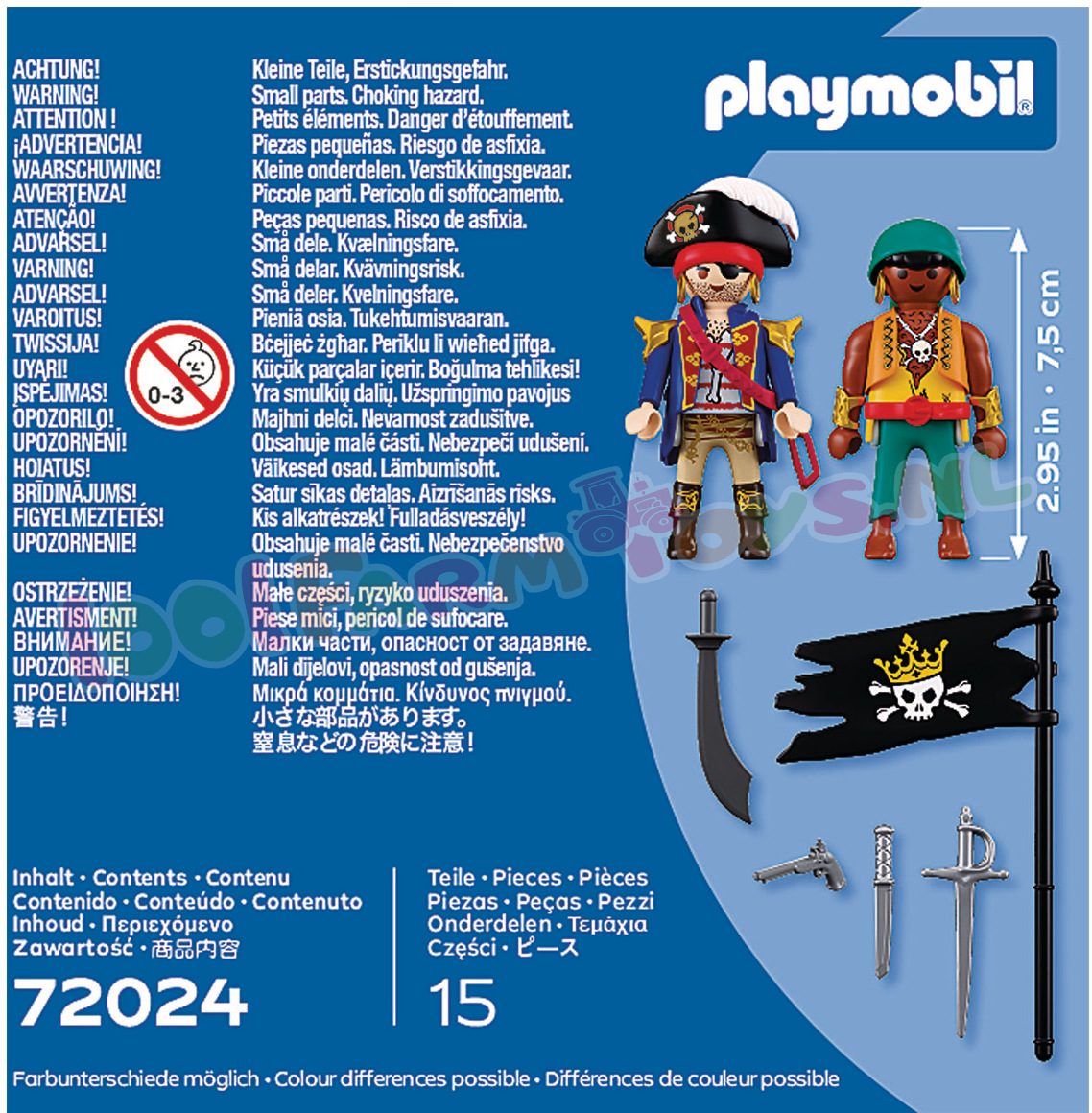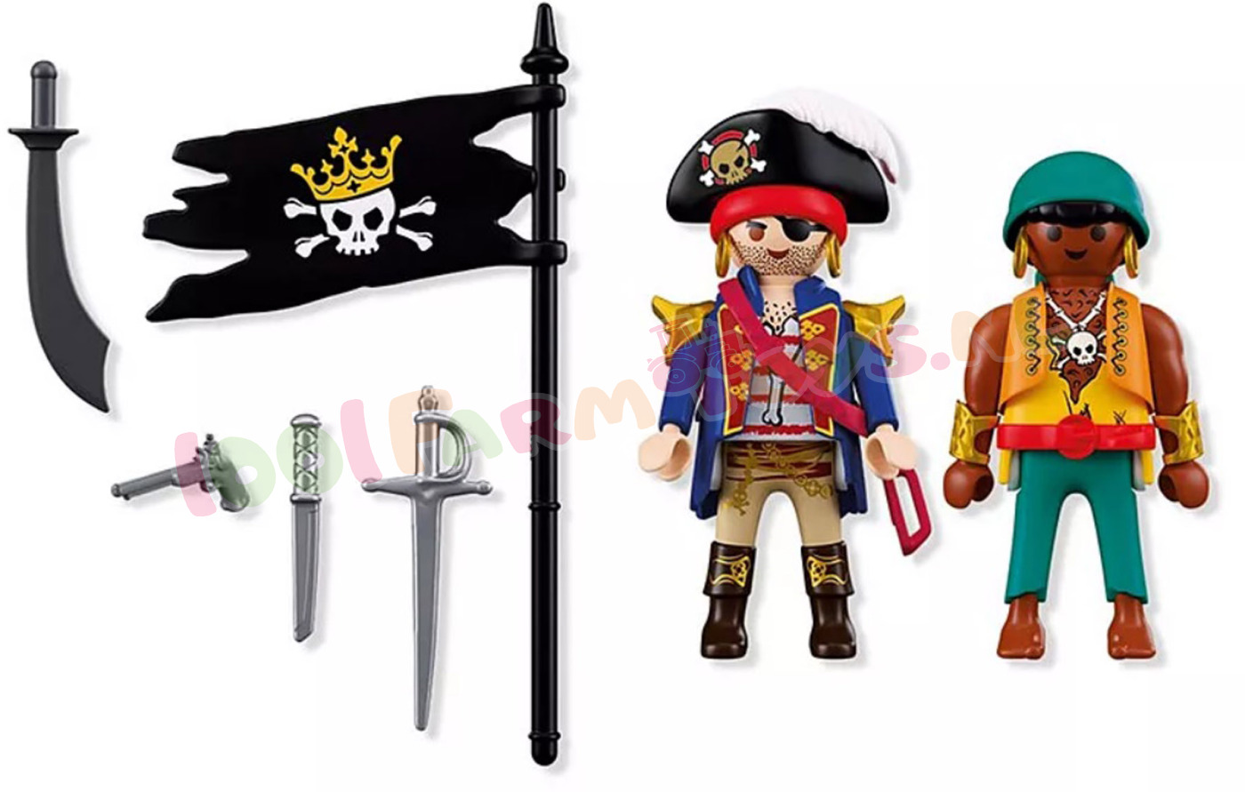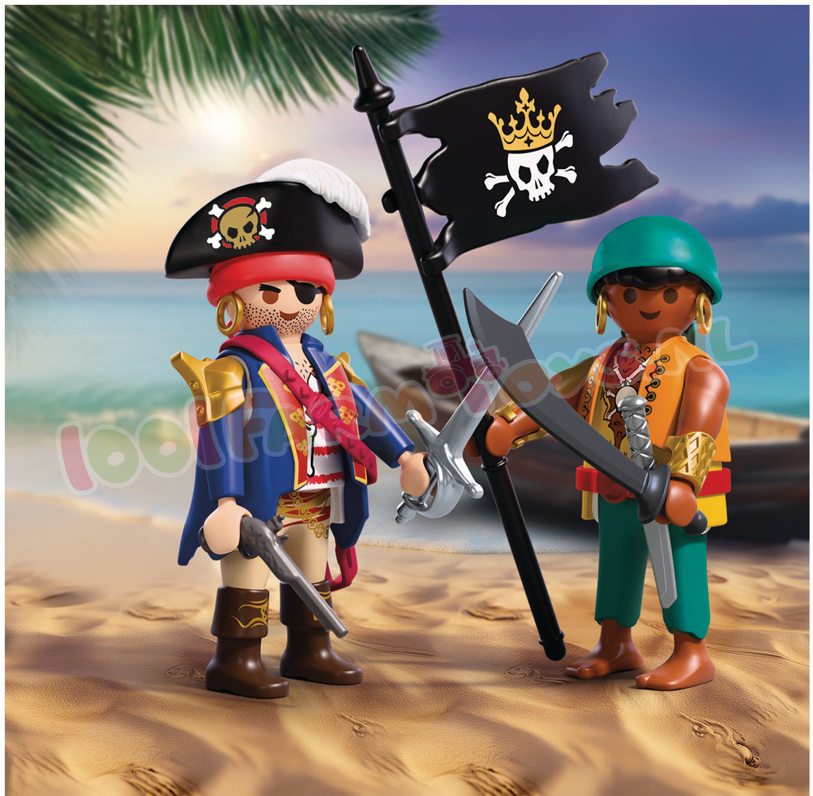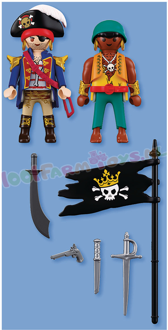 U ontvangt het goedkoopste artikel GRATIS.Twee vijandige piraten ontmoeten elkaar opnieuw – de een richt zijn pistool. de ander zwaait met sabel en vlag. Een felle confrontatie is onvermijdelijk!Wanneer deze rivaliserende zeeschuimers hun zwaarden trekken en zich voorbereiden op hun volgende zeewaardige avontuur. stijgt de spanning tot het kookpunt. Met piratenhoeden. blinkende wapens en een trotse vlag wordt elk gevecht een spannend verhaal vol durf en verrassende wendingen. Deze energieke PLAYMOBIL DuoPack maakt elk piratenavontuur nog levendiger – perfect voor elke speelwereld. Laat deze stoere piraten jouw PLAYMOBIL Piratencrew versterken en zet koers naar eindeloze fantasiegevechten en goudzoektochten! Figuren: 2 piraten Accessoires: 1 piratenhoed. 1 hoofddoek. 1 pistool. 1 riem. 1 degen. 1 sabel. 1 vlag. 1 mes.Zie ook DuoPack: PY70692; PY70821; PY70823; PY70824; PY71209; PY71505; PY71506; PY71507; PY71799; PY71803; PY71804; PY71884; 71885; PY71886; PY71887; PY72023; PY72024; PY72025; PY72026;