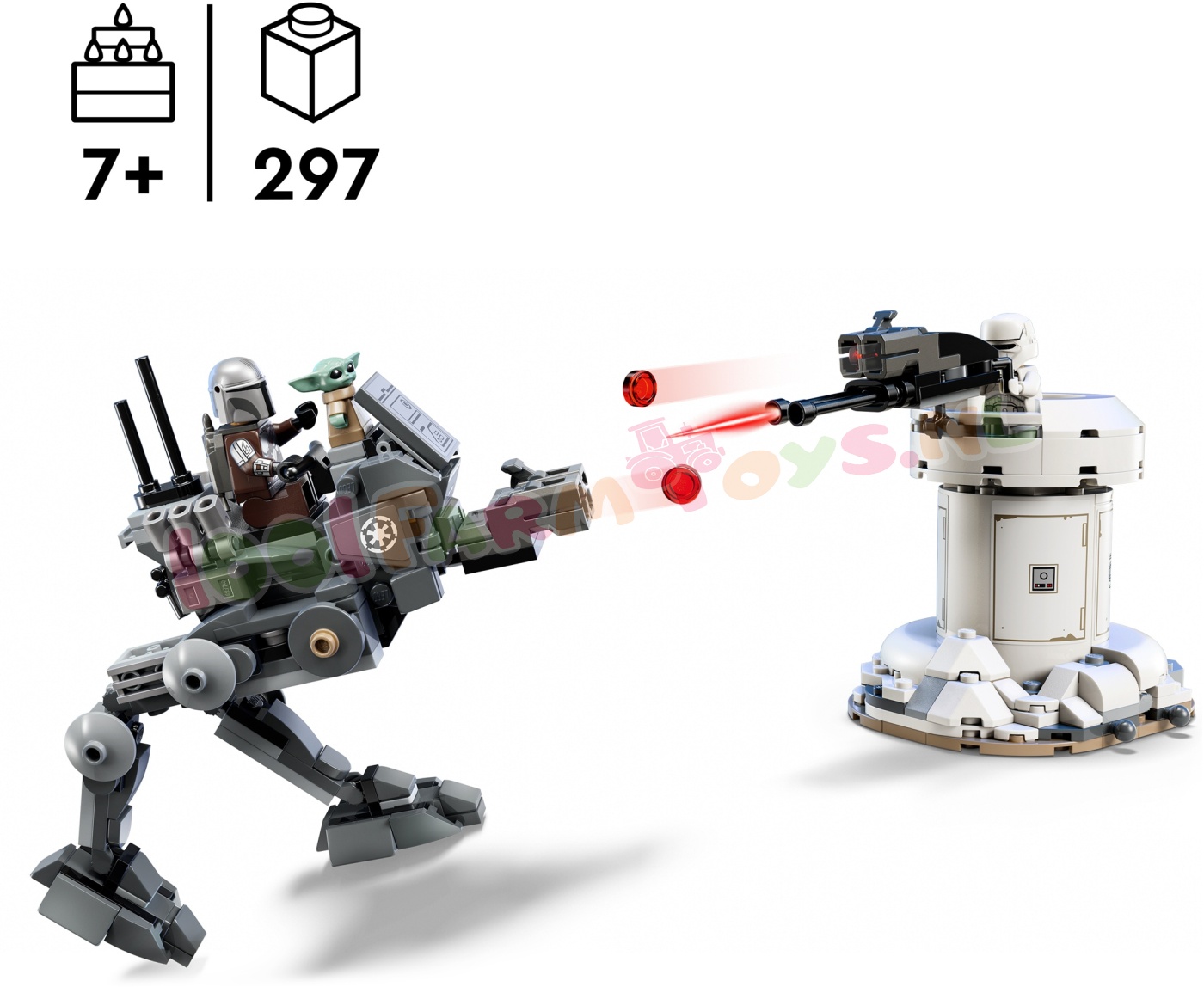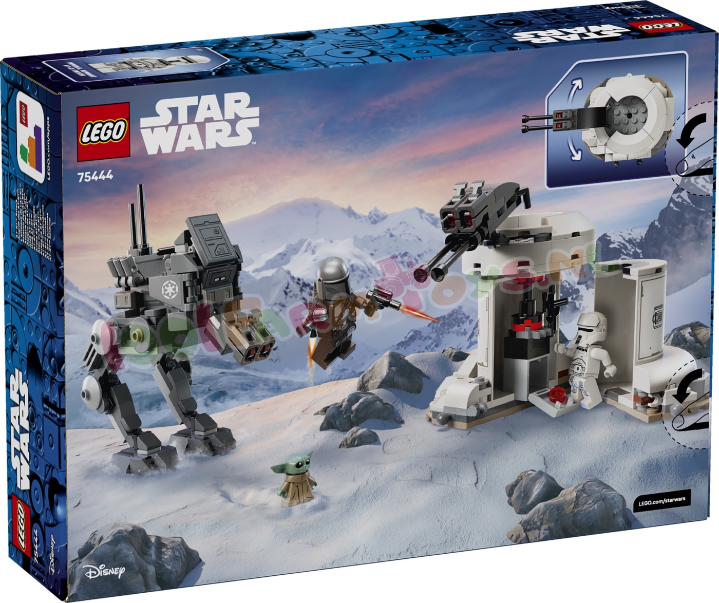 Laat kinderen hun eigen fantasierijke Star Wars: De Mandalorian en Grogu™ avonturen beleven met deze AT-RT aanval (75444) bouw- en speelset. De set bevat een verstelbare AT-RT walker met een dubbele noppenschieter en een verdedigingstoren met een draaibare geschutskoepel en een eigen dubbele noppenschieter. Plaats de Imperial Remnant AT-RT Driver of de LEGO® minifiguur van de Mandalorian in de AT-RT bestuurdersstoel (verwijder een dashboardsteen om ruimte te maken voor de Grogu LEGO figuur. zodat hij met Mando mee kan rijden). Open de verdedigingstoren om een wapenrek en opslagruimte te ontdekken. Rust de Mandalorian uit met het jetpack en blasterpistool en de AT-RT Driver met een blaster voor nog meer fantasierijke actie. Dit bouwspeelgoed is een spannend cadeau voor jongens. meisjes en alle fans van Star Wars: De Mandalorian en Grogu vanaf 7 jaar en is een geweldige manier om de fantasie van kinderen te prikkelen. Kinderen kunnen vol zelfvertrouwen bouwen met de LEGO Builder app die ze kunnen gebruiken om in te zoomen. hun model in 3D te draaien en hun voortgang bij te houden met de eenvoudig te volgen digitale instructies. De set bevat 297 onderdelen. STAR WARS™ SPEELGOEDBOUWSET – speel een Star Wars: De Mandalorian en Grogu™ AT-RT aanval (75444) na met een AT-RT walker van LEGO® stenen die noppen kan afvuren en een Imperial Remnant verdedigingstoren 3 LEGO® STAR WARS™ PERSONAGES – werk samen met de LEGO minifiguur van de Mandalorian en de LEGO figuur van Grogu om het op te nemen tegen de Imperial Remnant AT-RT Driver AT-RT IS KLAAR VOOR DE STRIJD – zet de poten van de AT-RT in de juiste stand. richt en vuur met de dubbele noppenschieteren verwijder een dashboardsteen om ruimte te maken zodat Grogu kan meerijden met de Mandalorian VERDEDIGINGSTOREN – plaats een LEGO® minifiguur achter de dubbele noppenschieter. draai de geschutstoren naar elke richting en open de toren om een wapenrek en opslagruimte te ontdekken STAR WARS™ CADEAU VOOR KINDEREN – dit bouwspeelgoed boordevol actie is een geweldig cadeau voor jongens. meisjes en fans van Star Wars: De Mandalorian en Grogu™ vanaf 7 jaar MEER INTERACTIEF PLEZIER – de LEGO® Builder app helpt kinderen zelfstandig te bouwen met functies waarmee ze kunnen inzoomen en sets kunnen draaien met behulp van 3D-instructies. hun voortgang kunnen bijhouden en ze op één plek kunnen opslaan ONTDEK HET ASSORTIMENT – ontdek ook de andere LEGO® Star Wars™ verzamelsets die zijn geïnspireerd op Star Wars: De Mandalorian en Grogu™ (apart verkrijgbaar) om spannende scènes opnieuw te beleven en nieuwe fantasierijke avonturen te verzinnen AFMETINGEN – de AT-RT in deze 297-delige LEGO® StarWars™ bouw- en speelset is ca. 12 cm hoog. 10 cm lang en 5 cm breed