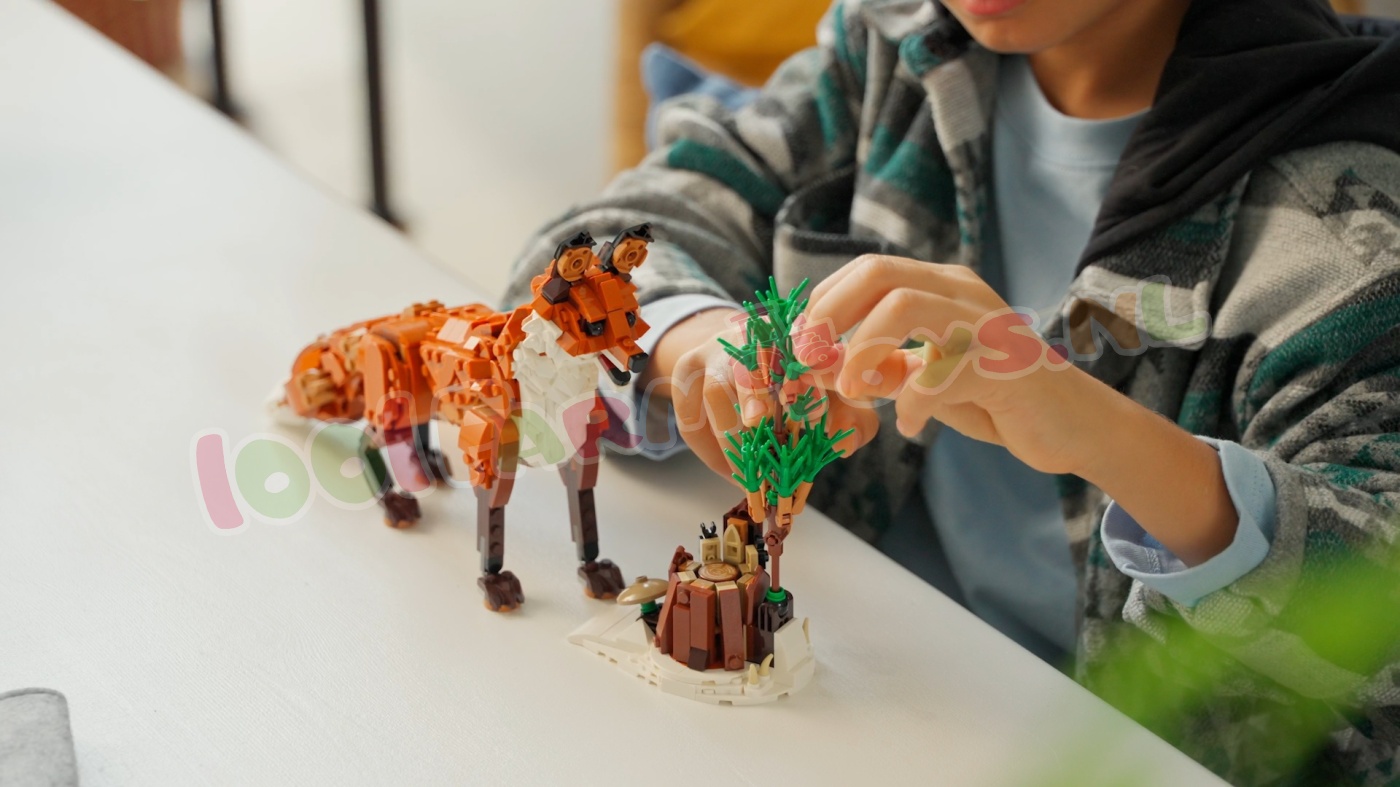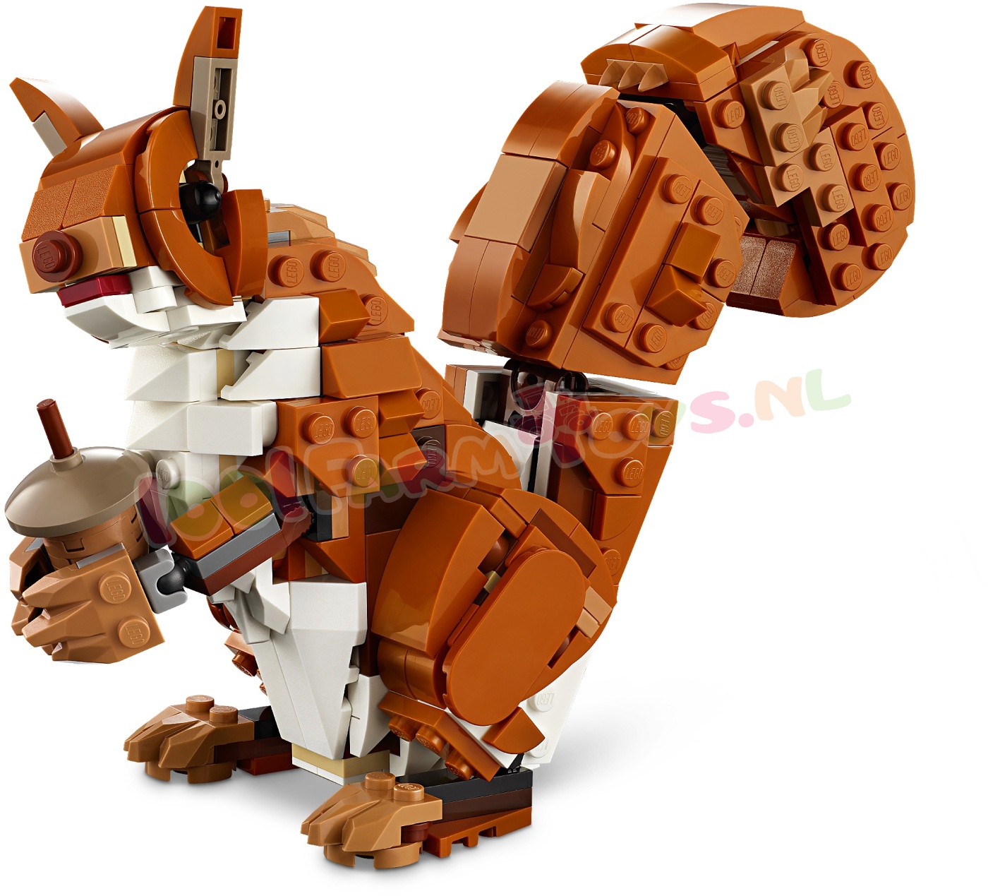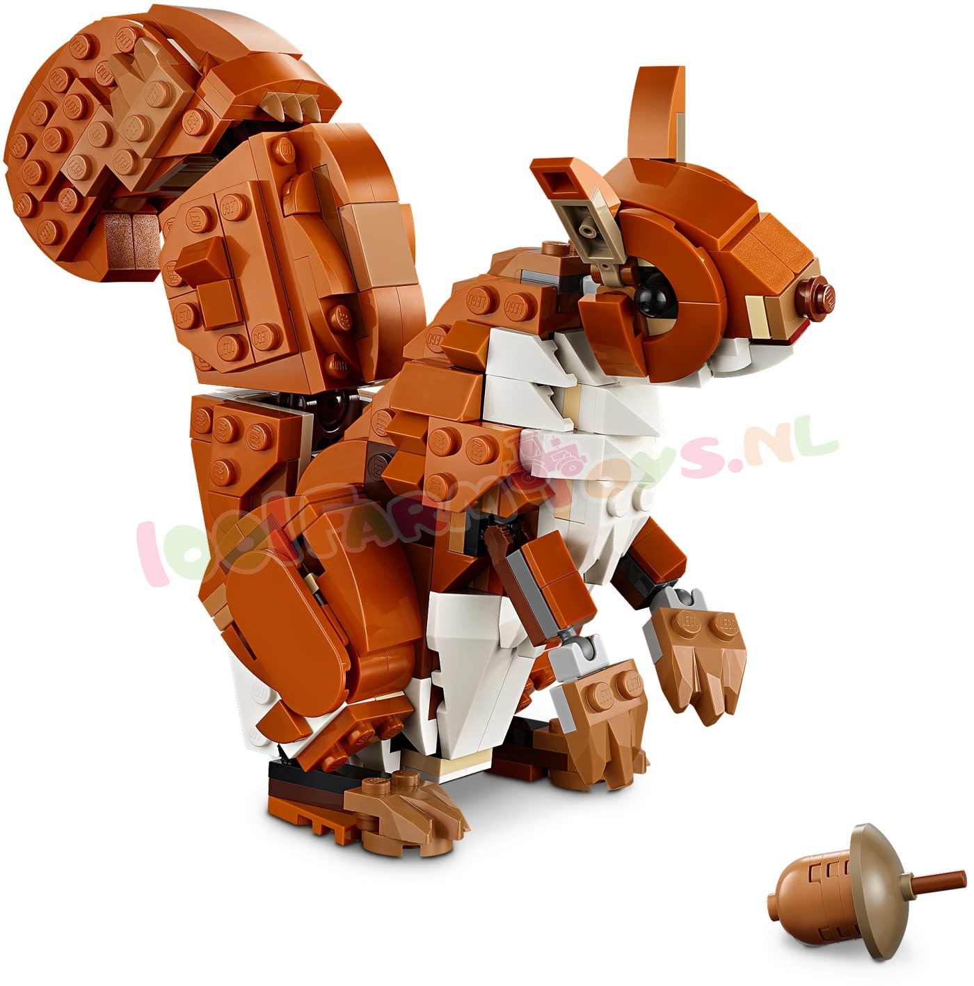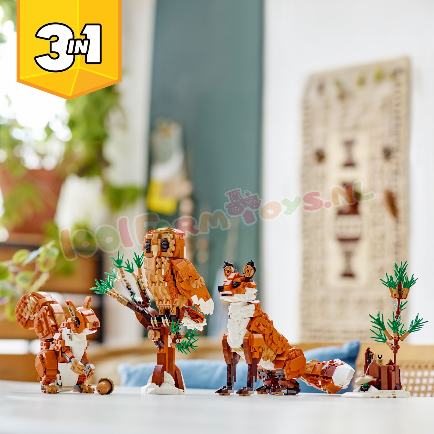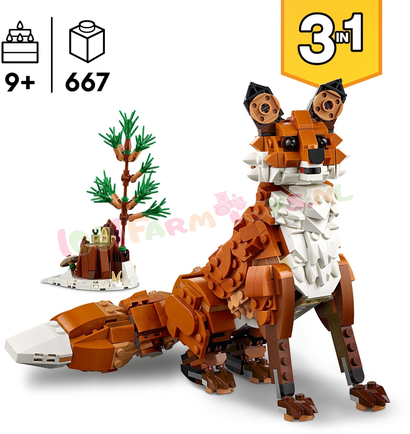 Er staan jongens en meisjes vanaf 9 jaar magische avonturen te wachten met de 3 verschillende LEGO® dierenmodellen in deze Creator Bosdieren: Rode vos (31154) 3-in-1 speelset. De set bestaat uit een verstelbare rode vos die zijn kop. nek. poten. klauwen en staart kan bewegen. Hij kan zitten of staan en wordt geleverd met een besneeuwde boomstronk en een spar.Met deze Creator 3in1 set kunnen kinderen 3 verschillende LEGO bosdieren bouwen met dezelfde stenen. Ze kunnen een verstelbare rode vos bouwen en deze ombouwen tot een verstelbare rode uil die op een boomtak zit of een beweegbare rode eekhoorn met een eikel. De 3 speelsets zijn fraaie blikvangers voor op een plank of nachtkastje.LEGO Creator 3in1 speelgoed is een geweldig cadeau met 3 creatieve mogelijkheden in elke doos. Kinderen zullen de modellen graag bouwen. herbouwen en opnieuw bouwen. De 3-in-1 sets sluiten aan op hun interesses. waaronder supersnelle voertuigen. geweldige dieren en gedetailleerde stadstaferelen. 3 LEGO® dieren. waaronder een rode vos. in 1 doos – jongens en meisjes vanaf 9 jaar kunnen 3 verschillende modellen bouwen en herbouwen met dezelfde stenen met de LEGO Creator Bosdieren: Rode vos 3-in-1 bouwset Eindeloze avonturen in het bos – kinderen kunnen hun fantasie gebruiken om verhalen te bedenken met 3 mogelijke dierenmodellen: een rode vos. een rode uil en een rode eekhoorn Verstelbare dierenfiguren – de speelgoedvos kan zijn kop. nek. poten. bek. klauwen en staart bewegen. de uilkan zijn kop 360 graden draaien en de kop. de oren en de poten van de rode eekhoorn zijn ook beweegbaar Standaards en accessoires – de speelset met rode vos wordt geleverd met een besneeuwde boomstronk en een spar. de uil kan op een tak met verstelbare twijgjes worden gezet en de rode eekhoorn is inclusief een eikel Cadeautip voor kinderen vanaf 9 jaar – dit 3-in-1 speelgoed biedt een leuke bouw- en speelervaring en kan cadeau worden gegeven voor een verjaardag of de feestdagen aan kinderen die dol zijn op LEGO® modellen Een leuke bouwervaring – de LEGO® Builder app begeleidt kinderen op een intuïtief bouwavontuur. Ze kunnen sets opslaan. hun voortgang bijhouden. inzoomen en hun modellen in 3D draaien tijdens het bouwen LEGO® Creatorspeelgoed – met elke 3-in-1 set kunnen kinderen 3 verschillende modellen bouwen. geïnspireerd op hun grootste passies. waaronder dieren. voertuigen en gedetailleerde stadsscènes Afmetingen – deze 667-delige LEGO® bouwset bevat een bouwbare uil van ca. 18 cm hoog.