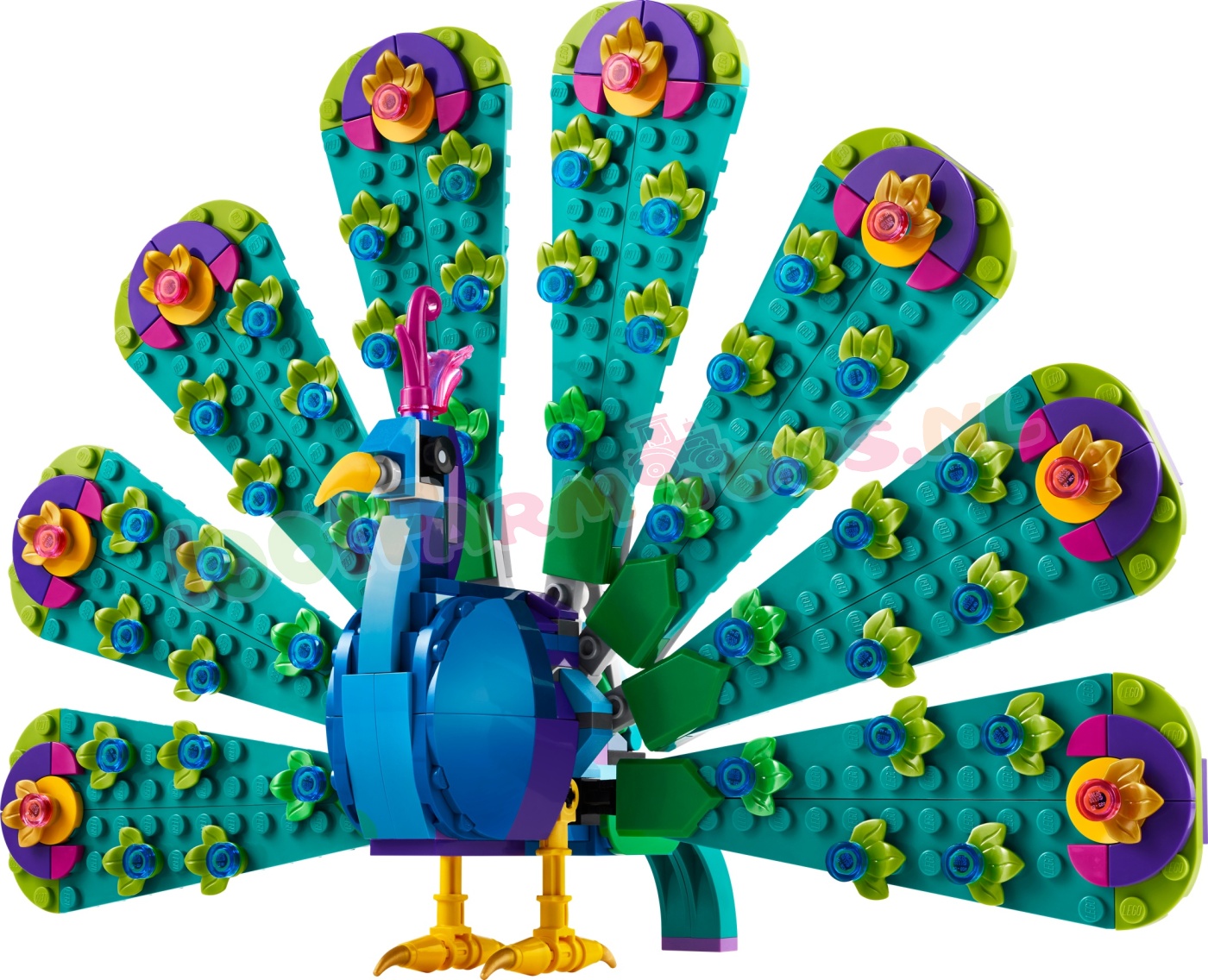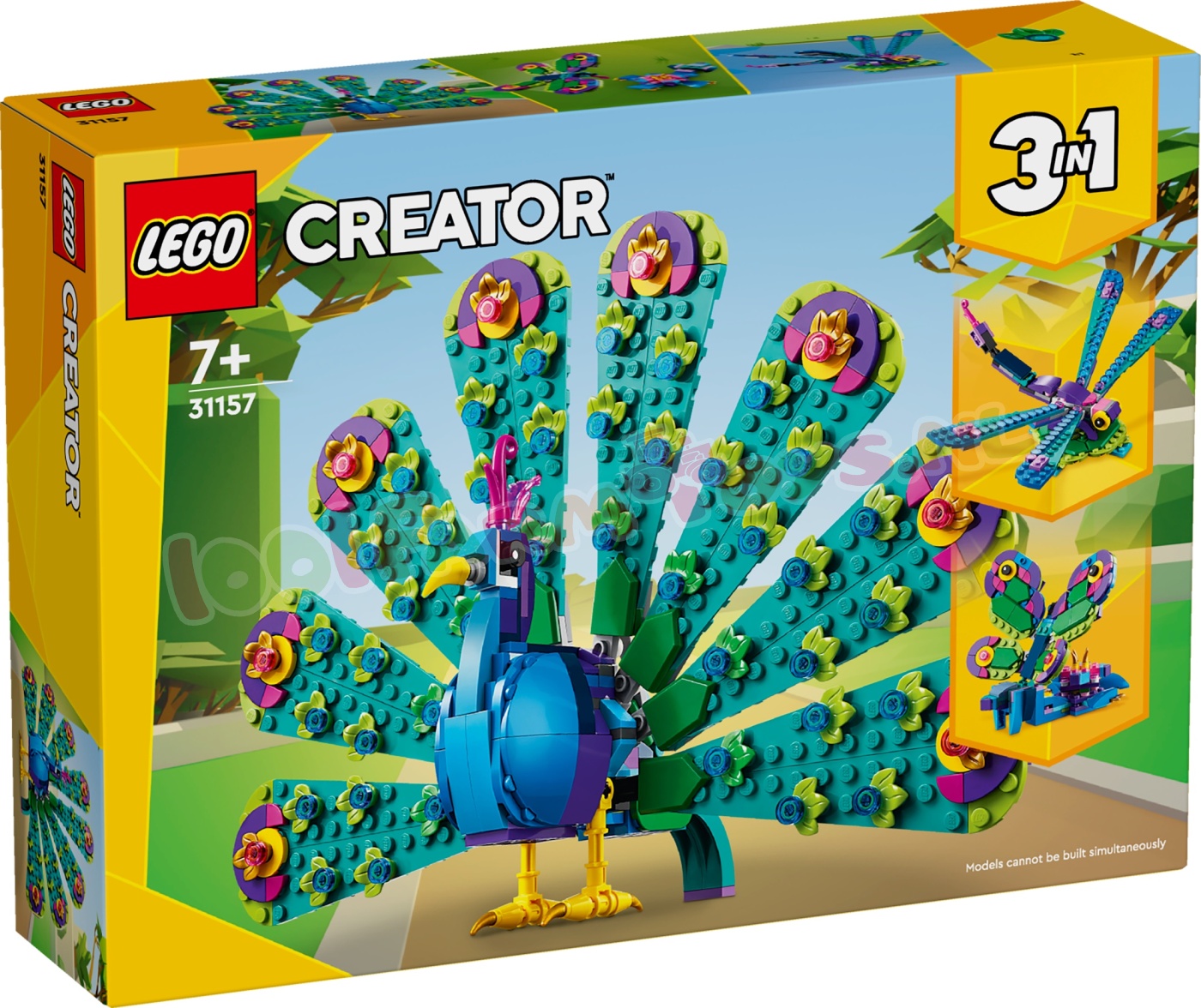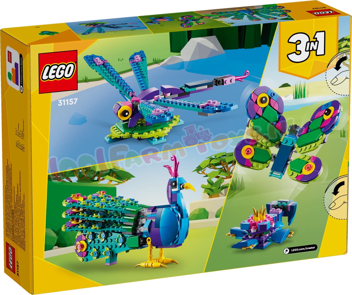 Jongens en meisjes vanaf 7 jaar kunnen 3 verschillende LEGO® dieren bouwen. ermee spelen en ze neerzetten met deze indrukwekkende Creator Exotische pauw (31157) 3-in-1 bouwset. Het bouwmodel van een pauw heeft prachtige en gedetailleerde staartveren die naar beneden kunnen worden gevouwen of trots kunnen worden uitgespreid.Deze LEGO Creator 3in1 set biedt kinderen 3 verschillende bouw- en speelervaringen met dezelfde set stenen. Ze kunnen een pauw bouwen en deze ombouwen tot een libelle met verstelbare vleugels en staart op een leliebladstandaard of tot een kleurrijke vlinder met verstelbare vleugels. De 3 modellen zien er vrolijk uit op een plank of nachtkastje.LEGO Creator 3in1 speelgoed is een geweldig cadeau met in elke doos 3 bouwmogelijkheden. Kinderen zullen de modellen graag bouwen. herbouwen en opnieuw bouwen. Ze kunnen zich urenlang vermaken met 3-in-1 sets die aansluiten op hun interesses. waaronder supersnelle voertuigen. geweldige dieren en gedetailleerde stadstaferelen. 3 LEGO® dieren. waaronder een pauw. in 1 doos – jongens en meisjes vanaf 7 jaar bouwen en herbouwen 3 mogelijke modellen met dezelfde stenen met deze LEGO Creator Exotische pauw 3-in-1 set Eindeloze speelmogelijkheden met dieren – kinderen kunnen hun eigen verhalen naspelen met 3 verschillende dierenmodellen: een pauw. een libelle en een vlinder Verstelbare figuren – de pauw kan zijn kleurrijke en gedetailleerde veren omlaag doen of openen. de vleugels en staart van de libelle zijn verstelbaar en de vlinder heeft verstelbare vleugels Displaymodellen om mee te spelen – de 3 LEGO® modellen kunnen na het spelen worden neergezet: de pauw kan op zichzelf staan en de libelle en vlinder worden geleverd met een displaystandaard