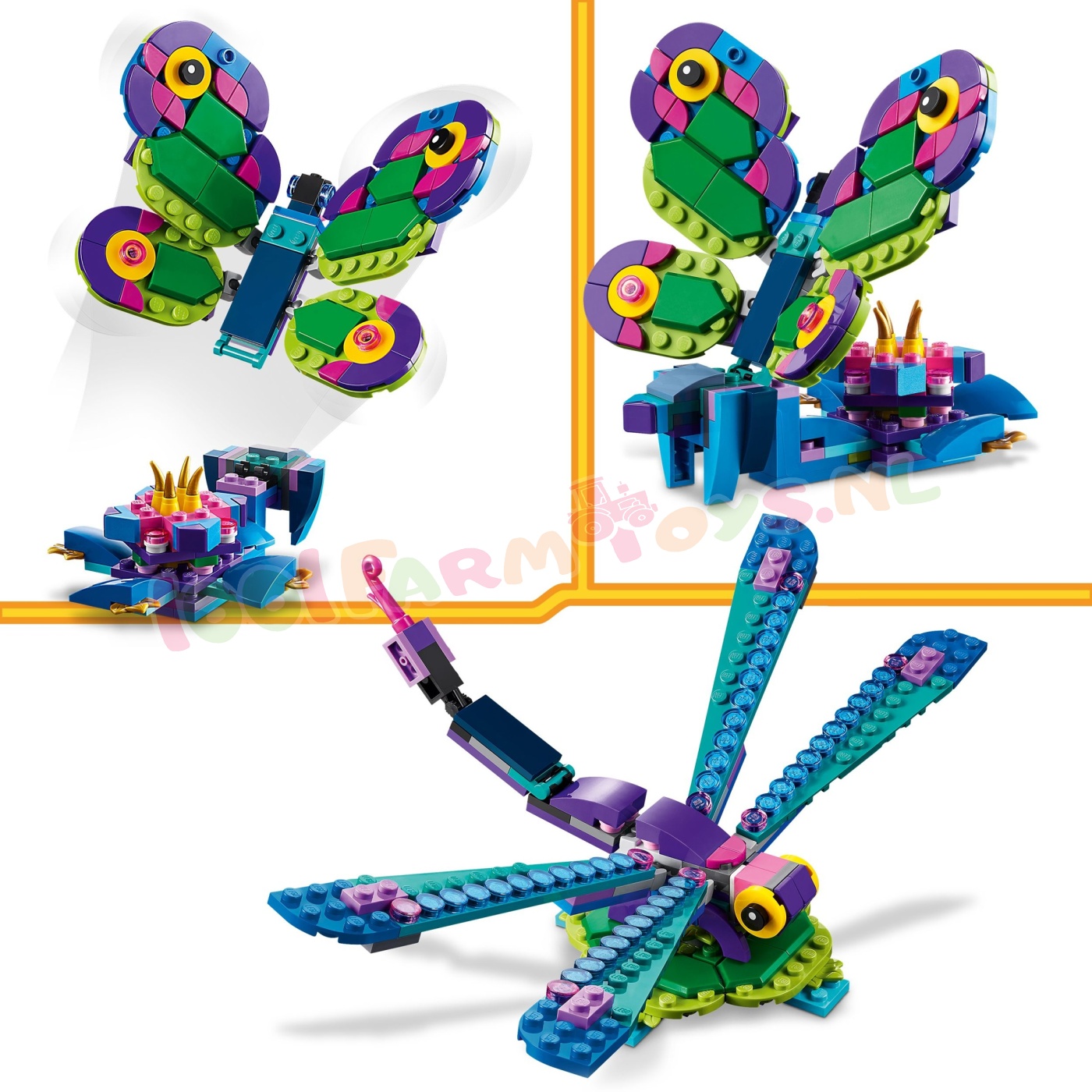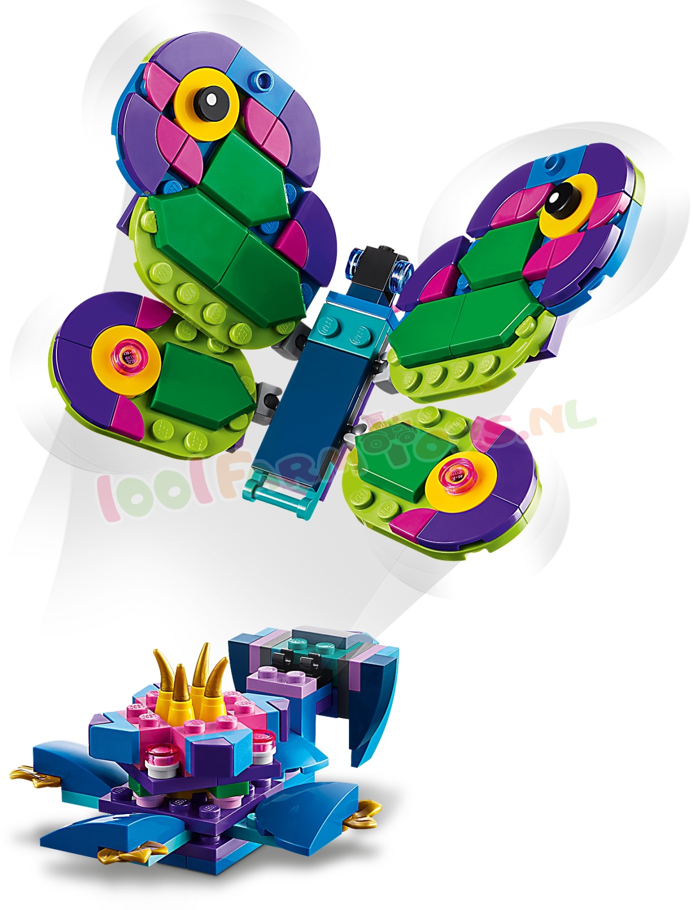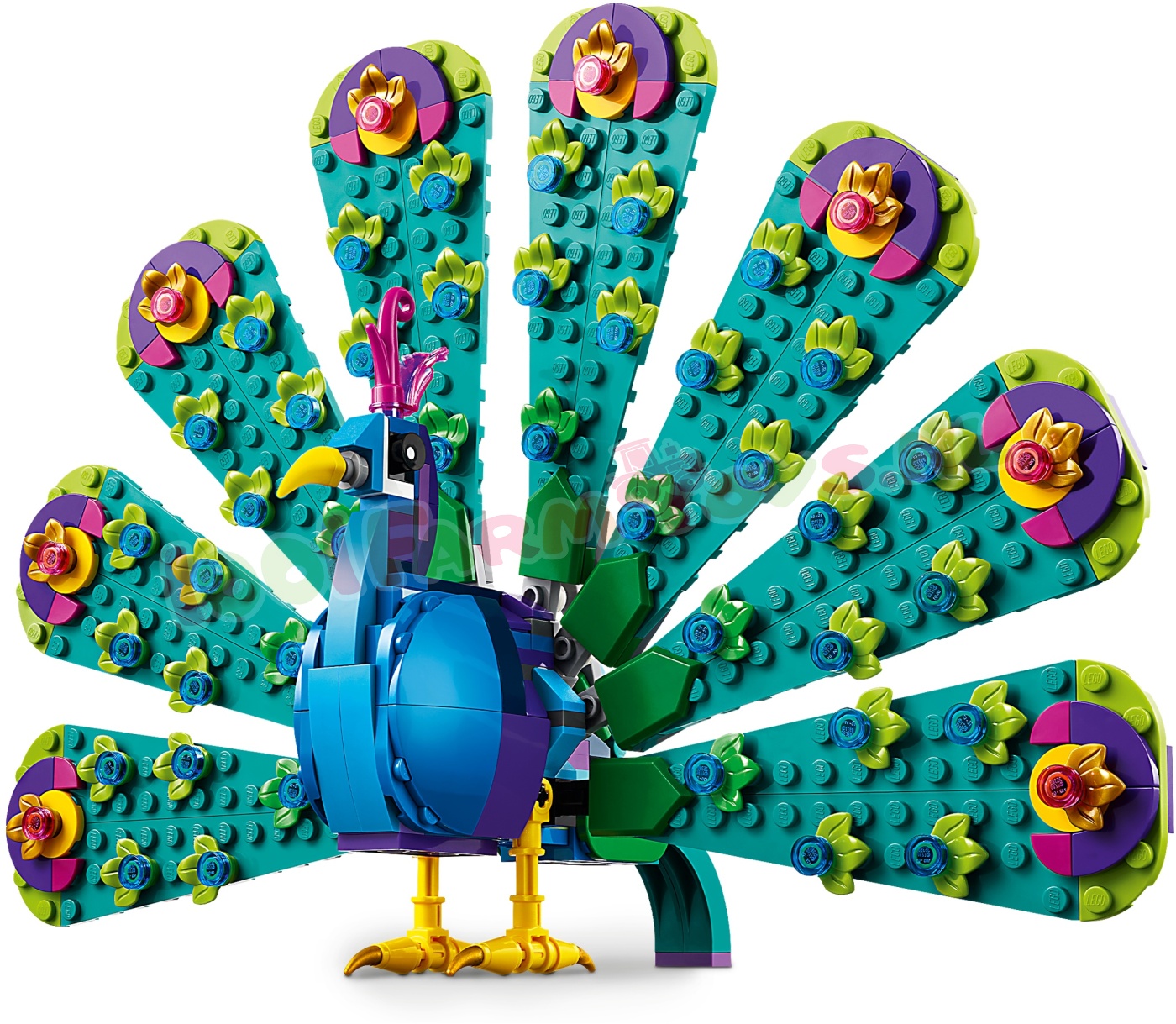 Jongens en meisjes vanaf 7 jaar kunnen 3 verschillende LEGO® dieren bouwen. ermee spelen en ze neerzetten met deze indrukwekkende Creator Exotische pauw (31157) 3-in-1 bouwset. Het bouwmodel van een pauw heeft prachtige en gedetailleerde staartveren die naar beneden kunnen worden gevouwen of trots kunnen worden uitgespreid.Deze LEGO Creator 3in1 set biedt kinderen 3 verschillende bouw- en speelervaringen met dezelfde set stenen. Ze kunnen een pauw bouwen en deze ombouwen tot een libelle met verstelbare vleugels en staart op een leliebladstandaard of tot een kleurrijke vlinder met verstelbare vleugels. De 3 modellen zien er vrolijk uit op een plank of nachtkastje.LEGO Creator 3in1 speelgoed is een geweldig cadeau met in elke doos 3 bouwmogelijkheden. Kinderen zullen de modellen graag bouwen. herbouwen en opnieuw bouwen. Ze kunnen zich urenlang vermaken met 3-in-1 sets die aansluiten op hun interesses. waaronder supersnelle voertuigen. geweldige dieren en gedetailleerde stadstaferelen. 3 LEGO® dieren. waaronder een pauw. in 1 doos – jongens en meisjes vanaf 7 jaar bouwen en herbouwen 3 mogelijke modellen met dezelfde stenen met deze LEGO Creator Exotische pauw 3-in-1 set Eindeloze speelmogelijkheden met dieren – kinderen kunnen hun eigen verhalen naspelen met 3 verschillende dierenmodellen: een pauw. een libelle en een vlinder Verstelbare figuren – de pauw kan zijn kleurrijke en gedetailleerde veren omlaag doen of openen. de vleugels en staart van de libelle zijn verstelbaar en de vlinder heeft verstelbare vleugels Displaymodellen om mee te spelen – de 3 LEGO® modellen kunnen na het spelen worden neergezet: de pauw kan op zichzelf staan en de libelle en vlinder worden geleverd met een displaystandaard