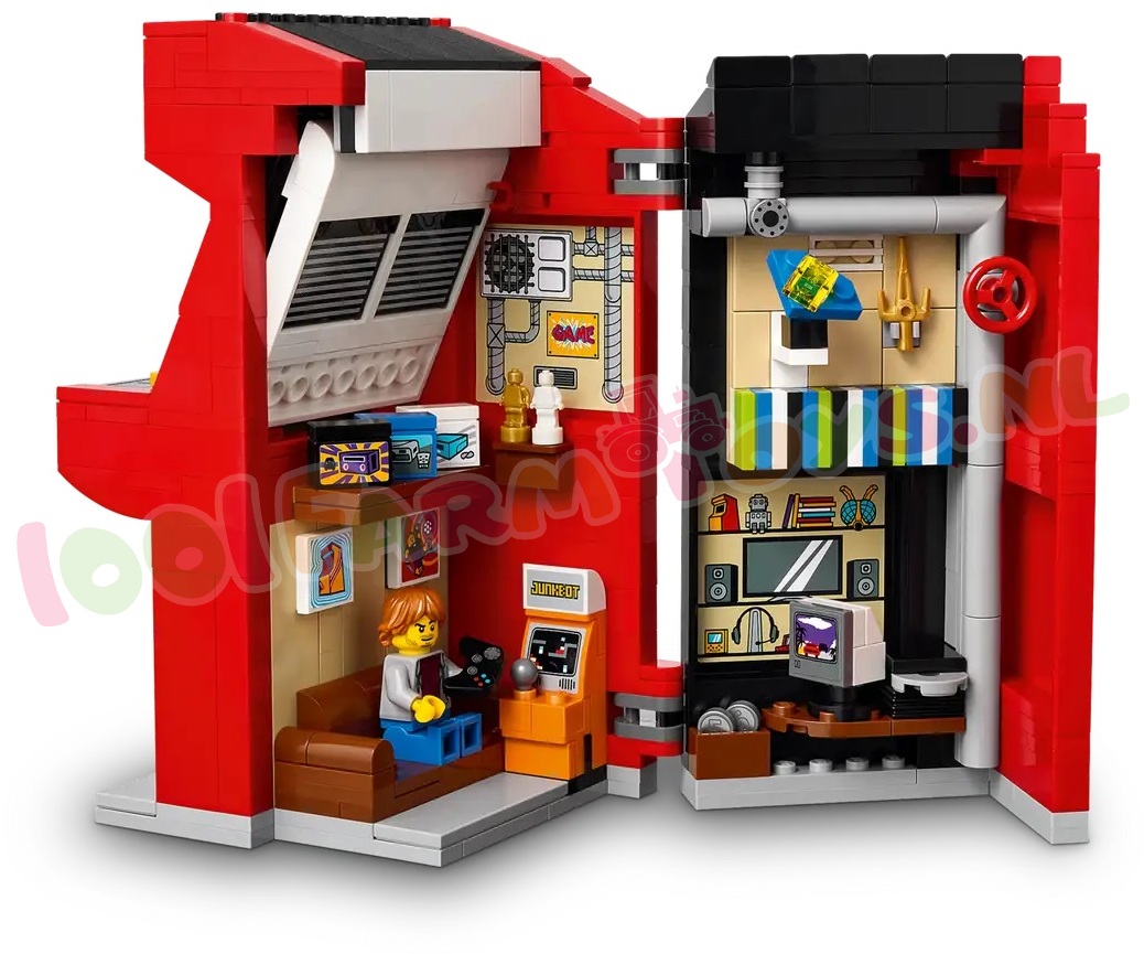 Advies Reserveer voor Afhalen.Laat gamefans een cool stukje decoratie bouwen met deze LEGO® Speelautomaat (40805). Dit speelse displaymodel is een leuk retrocadeau voor kinderen vanaf 10 jaar en volwassen fans. Aan de binnenkant vind je een gamekamer met een bouwbare minispeelautomaat. computer. bank en LEGO® minifiguur met een afstandsbediening. Plaats de meegeleverde munten in de gleuf van de speelautomaat en zie hoe ze er weer uitrollen. Dit model zal elke gamer nostalgisch maken! Decoratief model voor kinderen en volwassenen – denk terug aan het spelen van klassieke arcadespellen en creëer een speels stukje gamedecoratie met deze gedetailleerde LEGO® Speelautomaat bouwset voor kinderen vanaf 10 jaar Videogameset voor verzamelaars – de bouwbare speelautomaat kan worden geopend en bevat een gedetailleerde speelkamer inclusief een bouwbare minispeelautomaat. een computer. een bank en een LEGO® minifiguur Bouw je eigen gamingdecoratie – deze set biedt een boeiende bouwervaring voor jonge en oudere gamers en ziet er leuk uit op een bureau of boekenplank Speels displaymodel – de set bevat muntelementen die je in de gleuf van de speelautomaat kunt plaatsen. waarna ze er weer uit rollen Retrocadeau voor kinderen envolwassen fans – geef deze 468-delige LEGO® bouwset aan kinderen vanaf 10 jaar en volwassen fans van videogames Afmetingen – deze bouwbare LEGO® speelautomaat is ca. 16 cm hoog. 11 cm breed en 8 cm diep