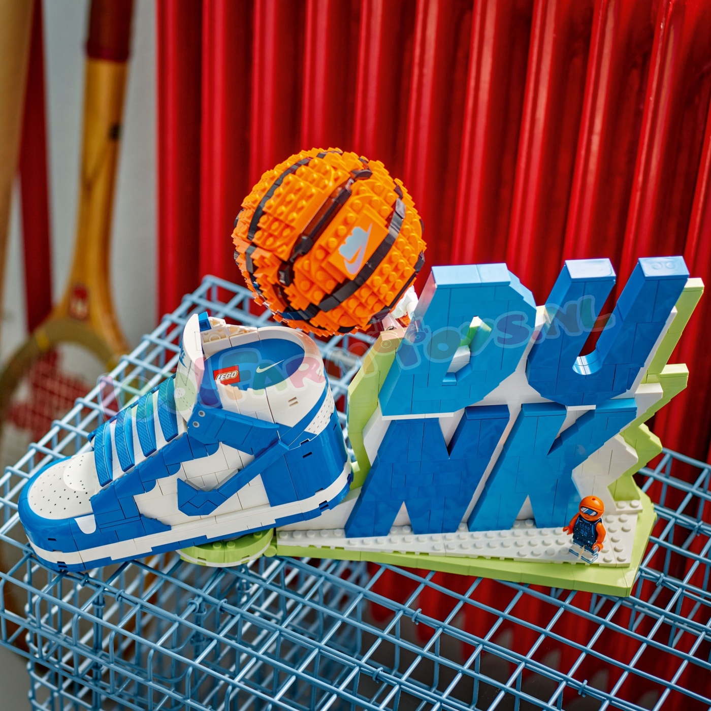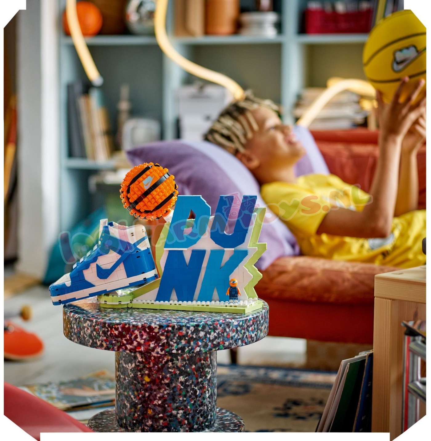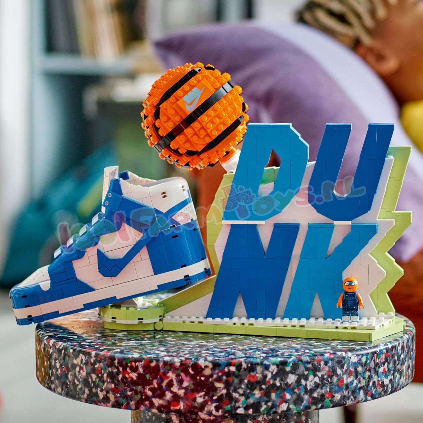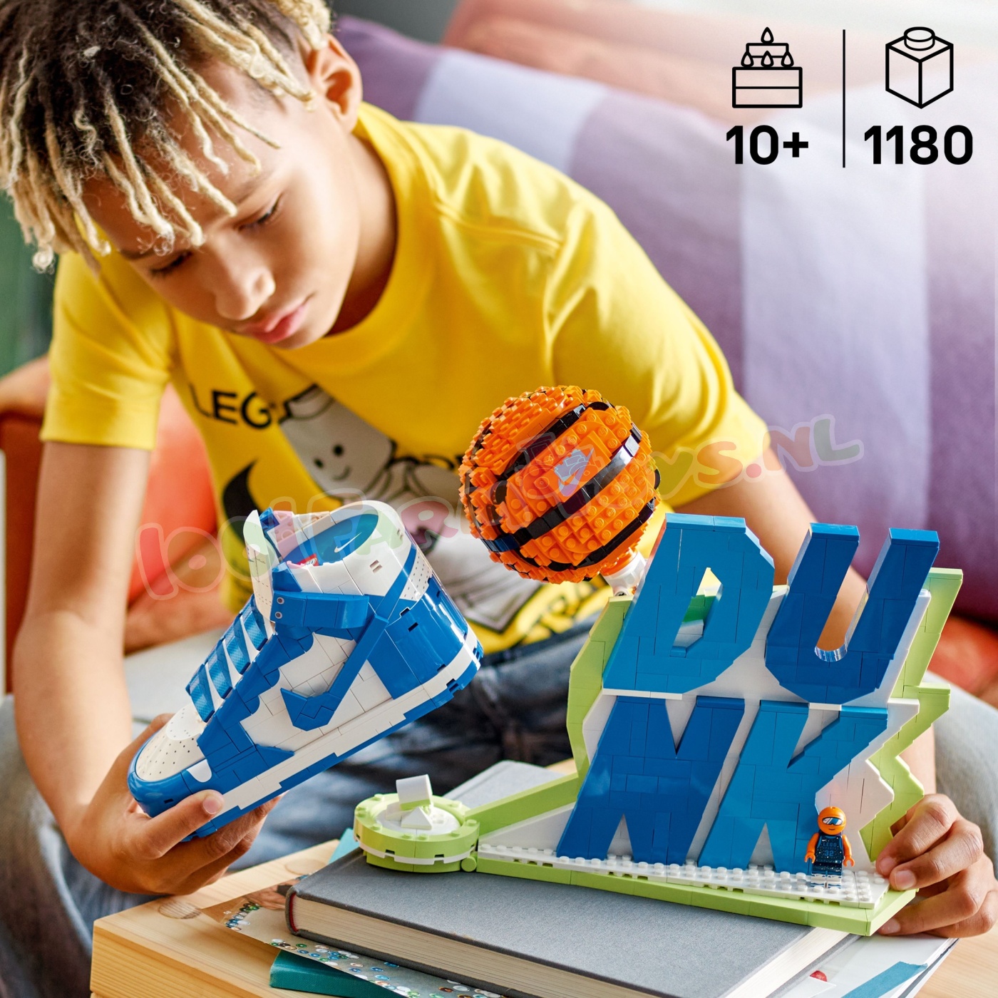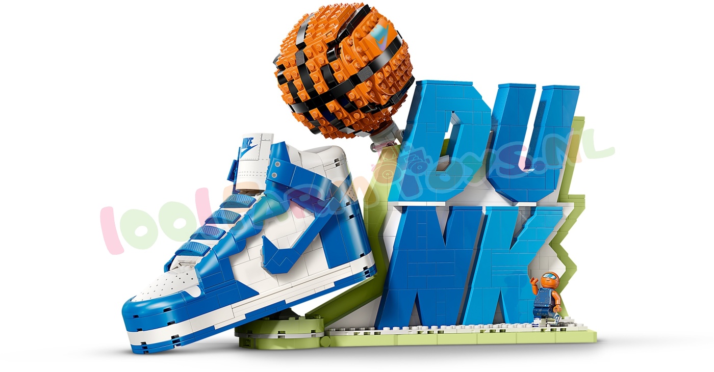 Advies Reserveer voor Afhalen.Schoenen en stenen komen samen in de leukste samenwerking van het seizoen met deze LEGO® Nike bouwset voor kinderen vanaf 10 jaar. De Nike Dunk (43008) is geïnspireerd op de beroemde sneaker die meer dan 40 jaar geleden voor het eerst werd gedragen en klaar om door jou te worden gebouwd!Dit aanpasbare model voor verzamelaars zit boordevol basketbalvibes en bewijst dat schoenen niet alleen supercool zijn als ze aan je voeten zitten.Het model bestaat uit een Nike Dunk. een draaibare basketbal en de bekende 'Dunk' slogan die sportfans kunnen bouwen. herbouwen en neerzetten. In het Nike Dunk model zijn opbergvakken verborgen om bijvoorbeeld kampioensringen veilig op te bergen en er zijn extra veters inbegrepen voor een alternatief kleurenschema. De set wordt bovendien geleverd met superfan B'Ball Head. een exclusieve minifiguur die zijn eigen Nike outfit en een paar mini Nike Dunks draagt.