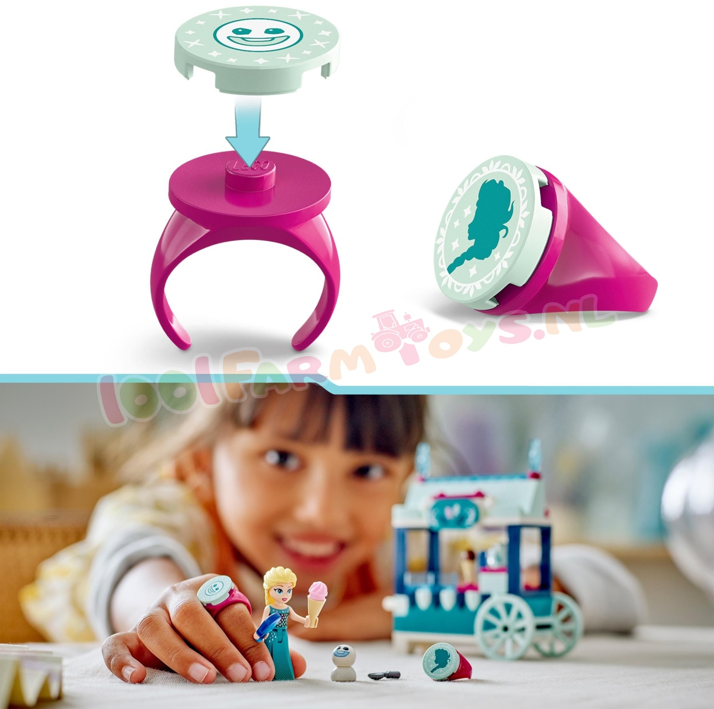 Maak indruk op Disney fans en kinderen vanaf 5 jaar met deze LEGO® | Disney Frozen Elsa's Frozen traktaties (43234) bouw- en speelset. De doos bevat een bouwbaar ijskarretje met een ijsmachine. 2 ijshoorntjes. 2 ijslolly's en andere verhaalideeën. Inclusief een Elsa LEGO | Disney minipoppetje en een Snowgie LEGO | Disney figuur om het rollenspel op gang te brengen. plus 2 verzamelringen met verwisselbare versieringen.Deze bouwset helpt het zelfvertrouwen van kinderen te vergroten door creatieve verhalen te stimuleren. Ze beleven volop speelplezier terwijl ze helemaal opgaan in een sprookjeswereld en hun eigen avonturen bedenken. De set is ideaal voor korte speelsessies en kan worden toegevoegd aan andere LEGO bouwsets (apart verkrijgbaar) om het speelplezier uit te breiden. Voor nog meer digitaal plezier kunnen kinderen een eenvoudig. intuïtief bouwavontuur beleven met de LEGO Builder app. Daarmee kunnen ze inzoomen. modellen in 3D draaien. sets opslaan en hun voortgang bijhouden. Disney Frozen plezier voor kinderen vanaf 5 jaar – spreek meisjes en jongens aan met deze Elsa's Frozen traktaties bouw- en speelset en stimuleer de creativiteit terwijl kinderen hun eigen verhalen bedenken en naspelen Elsa en de Snowgie – de bouwset bevat een ijskarretje. een Elsa LEGO® | Disney minipoppetje. een Snowgie LEGO | Disney figuur en 2 ringen om te verzamelen met verwisselbare decoraties IJskarretje – kinderen kunnen het kleurrijke ijskarretje duwen. de ijshoorntjes klaarzetten en scènes naspelen waarin Elsa en de Snowgie ijskoude lekkernijen serveren Sprookjesachtig bouwspeelgoed – met deze LEGO® bouwset kunnen Disney fans hun fantasie gebruiken om onbeperkt gloednieuwe verhalen te bedenken en hun passie voor creatief fantasiespel te ontdekken Cadeau voor kinderen vanaf 5 jaar – een leuke Disney cadeautip voor zomaar tussendoor voor meisjes en jongens die van de Frozen films houden en graag verhalen verzinnen met Elsa en de Snowgie Breid het speelplezier uit – voegdeze LEGO® | Disney Frozen bouwset toe aan andere sets (apart verkrijgbaar) uit de reeks Bouwen aan vaardigheden – met een LEGO® | Disney Elsa minipoppetje. LEGO | Disney Snowgie figuur en een gedetailleerd ijskarretje stimuleert deze bouwset creatief speelplezier waarmee kinderen belangrijke vaardigheden ontwikkelen Afmetingen – de 82-delige bouwset bestaat uit een bouwbaar ijskarretje van ca. 11 cm hoog. 9 cm lang en 4 cm breed.