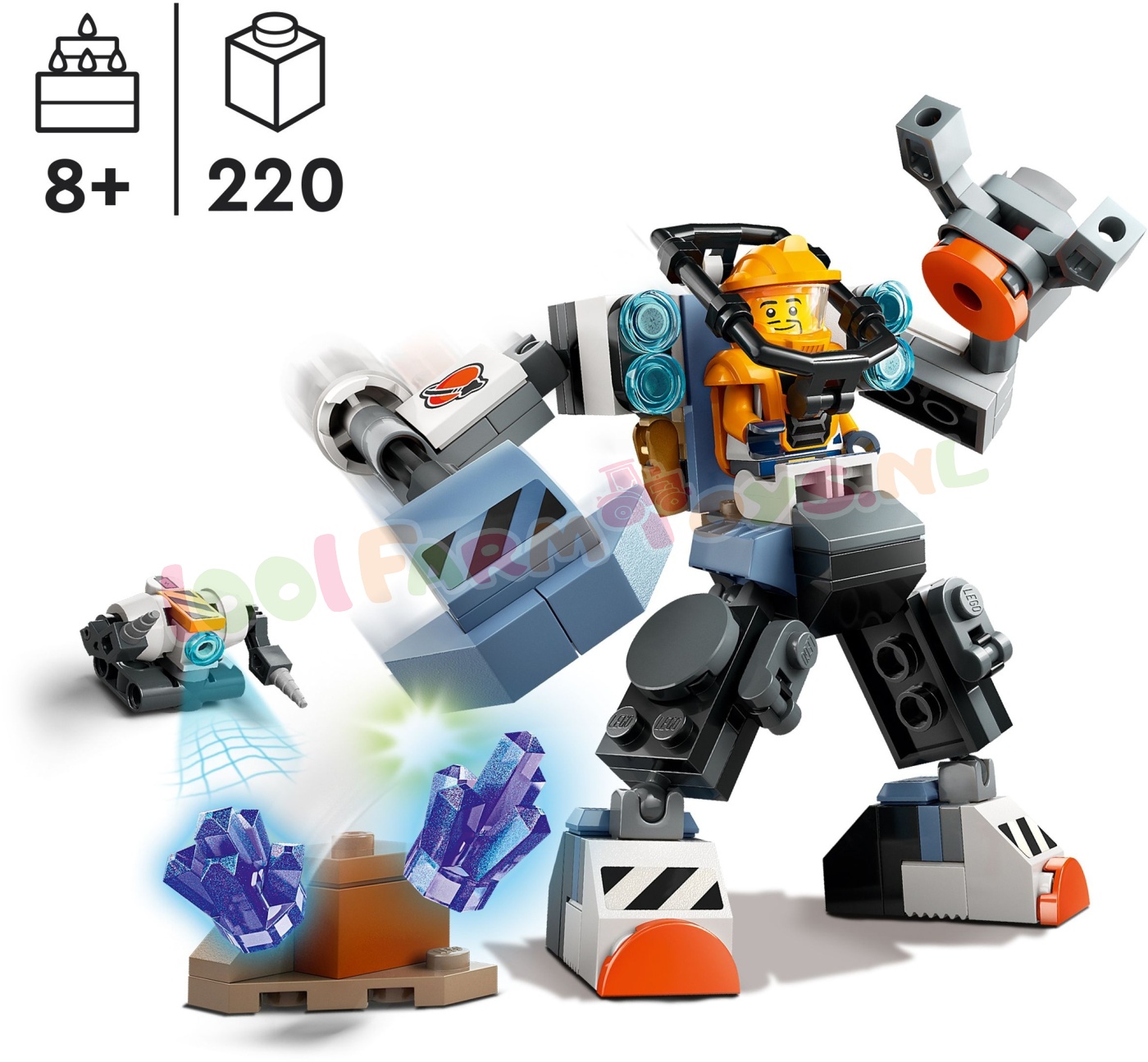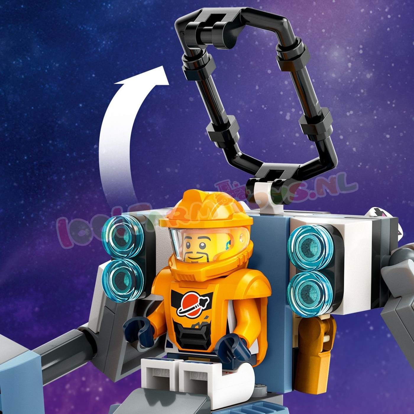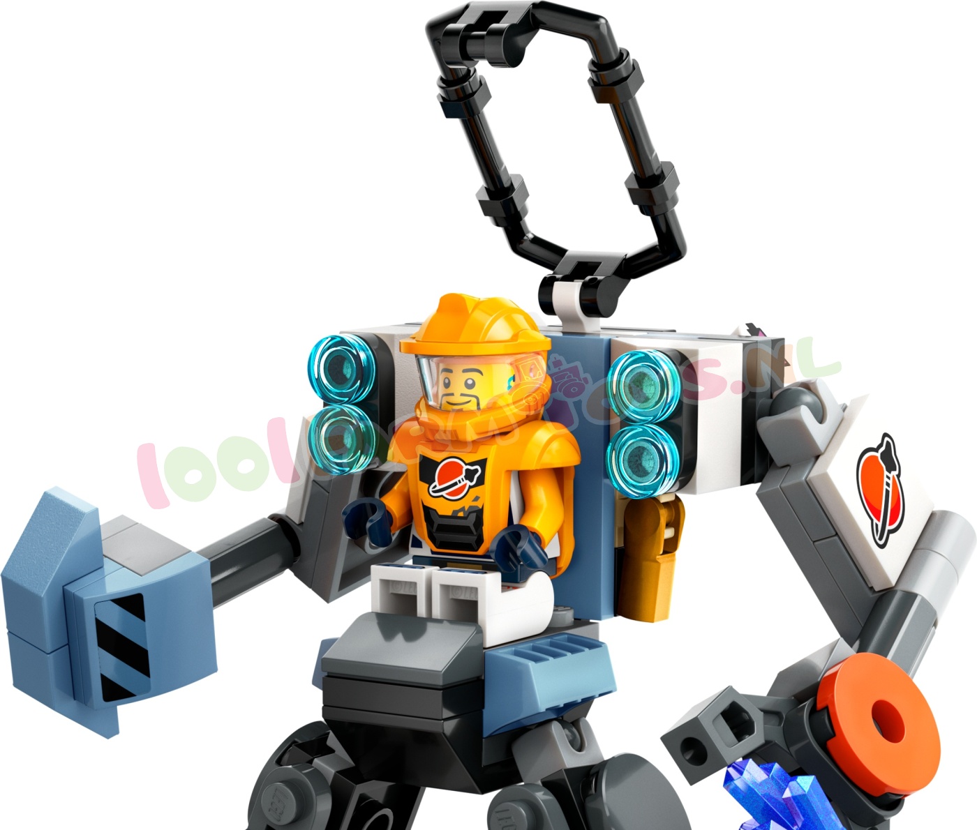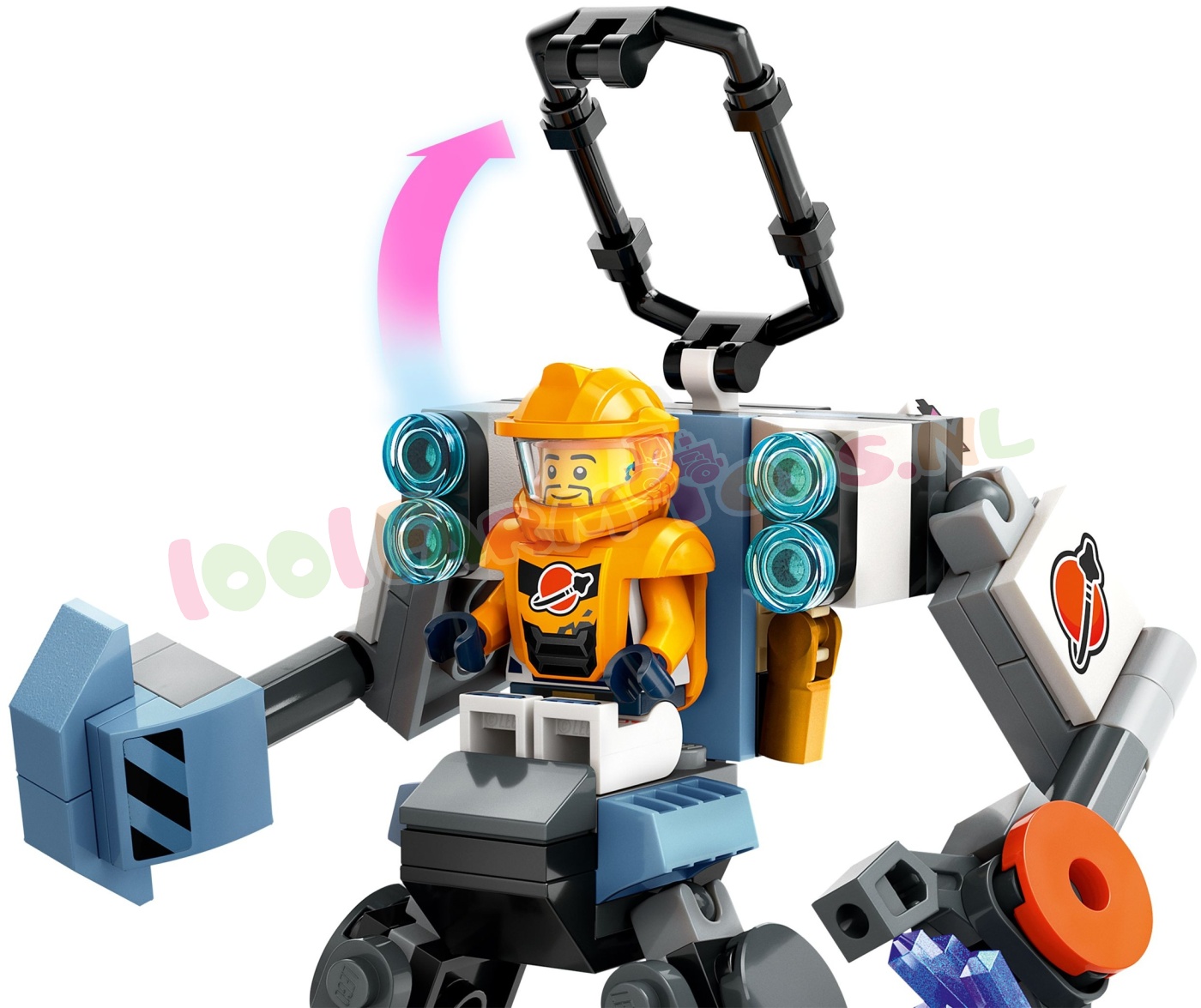De fantasie van kinderen stijgt naar nieuwe hoogten met de LEGO® City Ruimtebouwmecha (60428) voor jongens en meisjes van 6 jaar en ouder. Deze futuristische speelgoedmecha heeft armen met een hamer en een klauw. een minifiguur van een piloot die in de cockpit past en grote voeten om verre planeten te verkennen. Voeg de bouwrobot. planeetomgeving en kristalelementen aan toe voor urenlang actiespel.Neem jonge mechafans mee op een spannend bouwavontuur met de LEGO Builder app. Hiermee kunnen ze speelgoedsets ontdekken en opslaan. hun bouwvoortgang bijhouden. inzoomen en hun modellen in 3D draaien om ze vanuit alle hoeken bekijken tijdens het bouwen.LEGO City ruimtesets bevatten realistische voertuigen. gedetailleerde gebouwen en inspirerende personages die fantasie en realiteit combineren voor eindeloos fantasierijk speelplezier. Kinderen kunnen deze leuke set toevoegen aan andere sets (apart verkrijgbaar) uit het LEGO City ruimteassortiment voor nog meer legendarische ruimteavonturen. Speelgoedmecha voor kinderen vanaf 6 jaar – deze futuristische LEGO® City ruimteset bevat een beweegbare mecha met hamer- en klauwarmen. een minifiguur van een piloot voor in de cockpit en grote voeten om nieuwe werelden te ontdekken Wat zit erin deze LEGO® bouwset? – alles wat kinderen nodig hebben om een beweegbare mecha. een bouwrobot voor in de ruimte. een ruimteminifiguur en een planeetomgeving met rots- en kristalelementen te bouwen Ruimtespeelgoed met leuke functies – kinderen kunnen de minifiguur in de cockpit plaatsen en de hamer- en klauwarmen gebruiken om op denkbeeldige planeten te graven naar energieopwekkende kristallen Digitale bouwinstructies – neem je ruimtefan mee op een leuk bouwavontuur met de LEGO® Builder app.waarmee kinderen modellen vanuit alle hoeken kunnen bekijken tijdens het bouwen Speelgoed voor mechafans – geef deze LEGO® City ruimtevaartset cadeau voor de feestdagen of als verrassing aan kinderen en ruimtevaartliefhebbers van 6 jaar en ouder Meer sets om te verzamelen – kinderen beleven nog meer plezier en avonturen als ze deze set toevoegen aan andere sets (apart verkrijgbaar) uit het LEGO® City ruimteassortiment Onbegrensde speelmogelijkheden – LEGO® City ruimtespeelsets bevatten realistische voertuigen. gedetailleerde gebouwen en inspirerende personages die fantasie en werkelijkheid combineren voor speelplezier zonder grenzen Afmetingen – deze 140-delige set is inclusief een mecha van ca. 10 cm hoog.