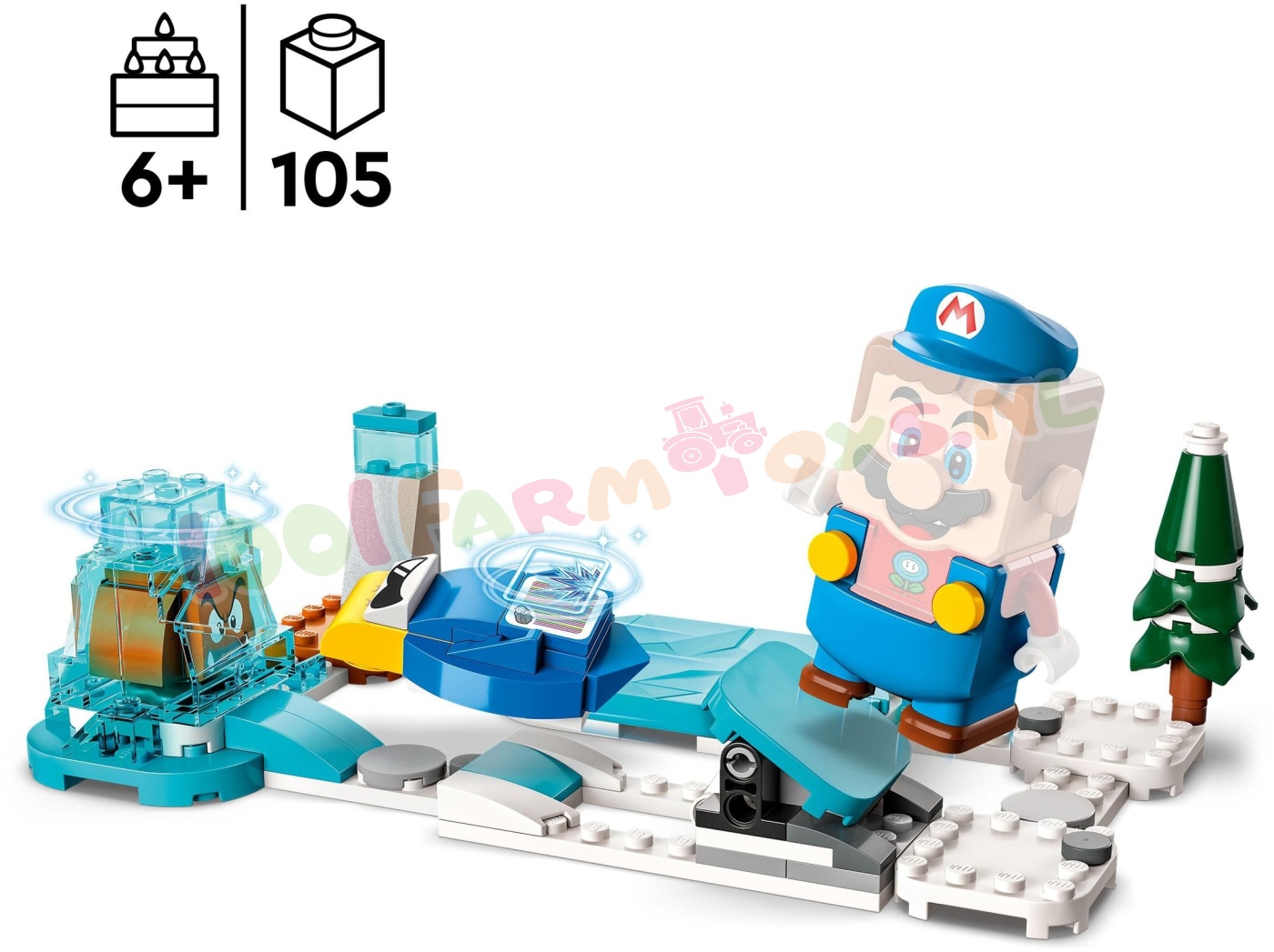 Kinderen kunnen een LEGO® Super Mario™ ijslevel bouwen met de Uitbreidingsset: IJs-Mario pak en ijswereld (71415). De set bevat een IJs-Mario pak voor LEGO® Mario™ (figuur niet inbegrepen) en LEGO figuren van een Cooligan en een Goomba. De bouwbare blauwe ijsplaat zorgt voor schaatsgeluiden van LEGO Mario als hij erop 'schaatst'. Er is ook een lanceerder om de Cooligan in een ijsblok te laten vliegen – wanneer het ijsblok verbrijzelt. komt de Goomba tevoorschijn. (Let op: je hebt de startset 71360. 71387 of 71403 nodig.)vSamen creatief spelenDeze speelset om te verzamelen is ideaal om samen of alleen mee te spelen en een topcadeau voor kinderen vanaf 6 jaar om mee te doen met de coolste trend. Download de LEGO Super Mario app voor de bouwinstructies en meer.Onbegrensde creativiteitMet de LEGO Super Mario startsets en uitbreidingssets kunnen fans hun eigen unieke levels maken en aanpassen voor urenlang spelen en munten verzamelen. Cooligan lanceerder met ijsbreker – kinderen kunnen leuke levels in ijsthema maken met de LEGO® Super Mario™ Uitbreidingsset: IJs-Mario pak en ijswereld (71415) Inclusief 2 LEGO® Super Mario™ figuren – wordt geleverd met LEGO speelgoedfiguren van een Cooligan en een Goomba Power-up – het IJs-Mario pak activeert unieke reacties van LEGO® Mario™ (figuur niet inbegrepen). zoals een ijsbal die op zijn buikscherm verschijnt en hem extra kracht geeft om zijn tegenstanders te verslaan Leuke uitdagingen – schaats op de bouwbare blauwe ijsplaat om schaatsgeluiden van LEGO® Mario™ te activeren en spring op de lanceerder om de Cooligan in het ijsblok te laten knallen en de Goomba te onthullen Cadeau voor kinderen van 6 jaar en ouder – geef deze 105-delige set cadeau voor een verjaardag of de feestdagen aan kinderen die een LEGO® Super Mario™ startset (71360. 71387 of 71403) bezitten. Die is vereist om met deze set te kunnen spelen Herbouwen en combineren – dit modulaire speelgoed is ca. 6 cm hoog. 20 cm breed en 12 cm diep in de basisopstelling en is ontworpen om te combineren met andere LEGO® Super Mario™ bouwsets Bouwen met behulp van een app – download de LEGO® Super Mario™ app voor de bouwinstructies. creatieve tips en meer. Ga naar LEGO.com/devicecheck voor een lijst met compatibele Android- en iOS-apparaten Onbegrensde mogelijkheden – LEGO® Super Mario™ speelgoedsets staan garant voor urenlang muntenverzamelplezier en onbeperkte creatieve uitdagingen doordat ze uit te breiden en om te bouwen zijn Topkwaliteit – al sinds 1958 voldoen LEGO® onderdelen aan strikte kwaliteitsnormen om ervoor te zorgen dat ze consistent en goed op elkaar passen Veiligheid is onze prioriteit – LEGO® stenen en onderdelen worden gegooid. verhit. geplet. gedraaid en geanalyseerd om er zeker van te zijn dat ze voldoen aan strenge wereldwijde veiligheidsnormen.