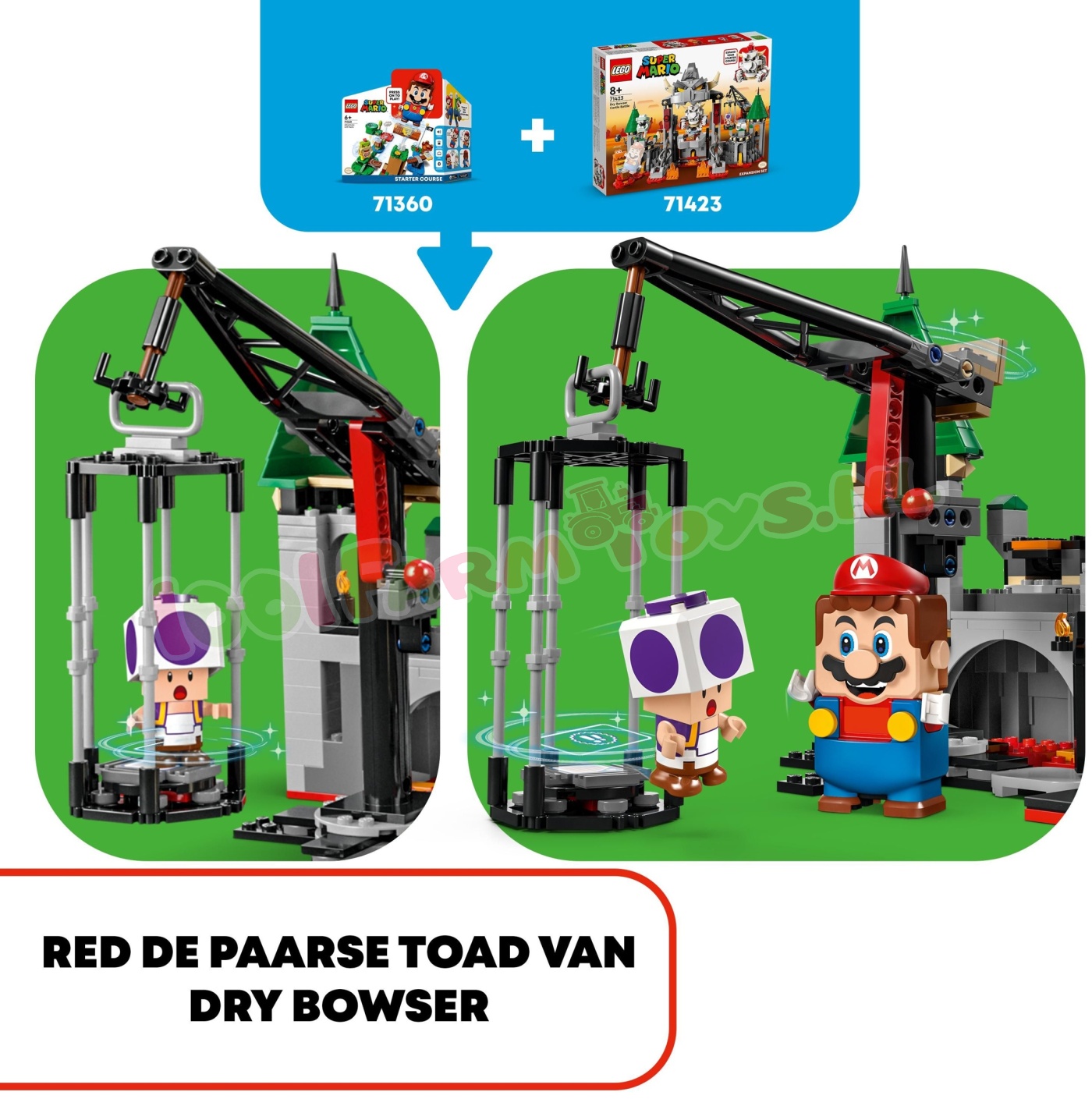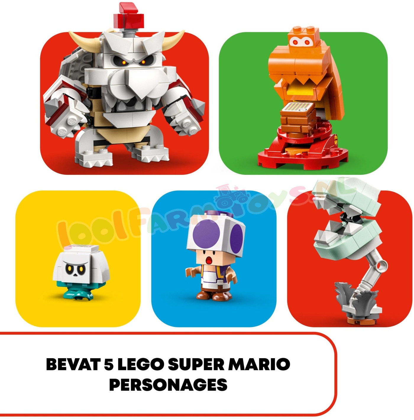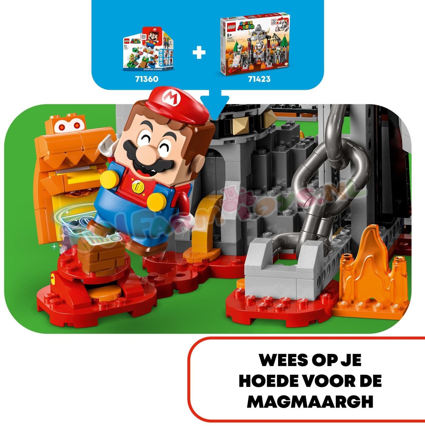U kunt uw bestelling natuurlijk ook afhalen bij ons in de winkel in Beesd. klik dan op afhalen.Creëer een LEGO® versie van een bekende locatie uit het Super Mario™ universum met de Uitbreidingsset: Gevecht op Dry Bowsers kasteel (71423). Spelers kunnen het kasteel verkennen met hun interactieve LEGO® Peach™. LEGO® Mario™ of LEGO® Luigi™ figuur (niet inbegrepen). Inclusief een ingang in de vorm van Bowsers kaak. een hijskraan om de paarse Toad uit de val te redden en Dry Bowser omver te werpen. flippers om de Bone Piranha Plant en Bone Goomba te verslaan. een Magmaargh aanvalsfunctie. fitnessruimte. geheime ingang. strategiekamer. sleutelblok en schatkistblok. Let op: je hebt de startset 71360. 71387 of 71403 nodig.TopcadeauDeze speelset is een geweldig cadeau voor kinderen van 8 jaar en ouder met 5 LEGO® Super Mario™ personages. Download de LEGO Super Mario app voor bouwinstructies. tips en meer.Speelsets om te verzamelenMet de LEGO Super Mario startsets en uitbreidingssets kunnen fans unieke levels maken. uitbreiden en ombouwen voor urenlang spelen en munten verzamelen. Gedetailleerde Uitbreidingsset: Gevecht op Dry Bowsers kasteel (71423) – kinderen kunnen een bekende Super Mario™ locatie nabouwen in de LEGO® Super Mario™ wereld om te spelen en munten te verzamelen 5 LEGO® Super Mario™ personages – Dry Bowser. een Magmaargh. een Bone Piranha Plant. een Bone Goomba en een paarse Toad Reddingsmissie – verken het kasteel met LEGO® Peach™. LEGO® Mario™ of LEGO® Luigi™ (figuren niet inbegrepen) en gebruik de hijskraan om de paarse Toad uit de val te redden en Dry Bowser omver te werpen Bouw een leuk level – de set bevat een Bone Piranha Plant en Bone Goomba. een Magmaargh aanvalsfunctie. een fitnessruimte. een geheime ingang. een strategiekamer. een sleutelblok en een schatkistblok Cadeautip voor kinderen van 8 jaar en ouder – geef deze 1321-delige set cadeau voor een verjaardag of de feestdagen aan kinderen die een LEGO® Super Mario™ startset (71360. 71387 of 71403) bezitten. Die is vereist om met deze set te kunnen spelen Herbouwen en combineren – deze modulaire set is ca. 27 cm hoog. 46 cm breed en 31 cm diep in de basisopstelling en kan worden gecombineerd met andere LEGO® Super Mario™ speelsets Bouwen met behulp van een app – download de LEGO® Super Mario™ app voor de bouwinstructies. creatieve tips en meer leuke dingen. Ga naar LEGO.com/devicecheck voor een lijst met compatibele Android- en iOS-apparaten Stimuleer de creativiteit – LEGO® Super Mario™ speelgoedsets staan garant voor veel muntenverzamelplezier en eindeloze creatieve uitdagingen doordat ze uit te breiden en om te bouwen zijn. Ze zijn ideaal om alleen of juist samen mee te spelen Topkwaliteit – LEGO® stenen voldoen aan strenge kwaliteitsnormen om ervoor te zorgen dat ze consistent en goed op elkaar passen Veiligheid voor alles – LEGO® onderdelen worden gegooid. verhit. geplet. gedraaid en geanalyseerd om er zeker van te zijn dat ze voldoen aan hoge wereldwijde veiligheidsnormen.