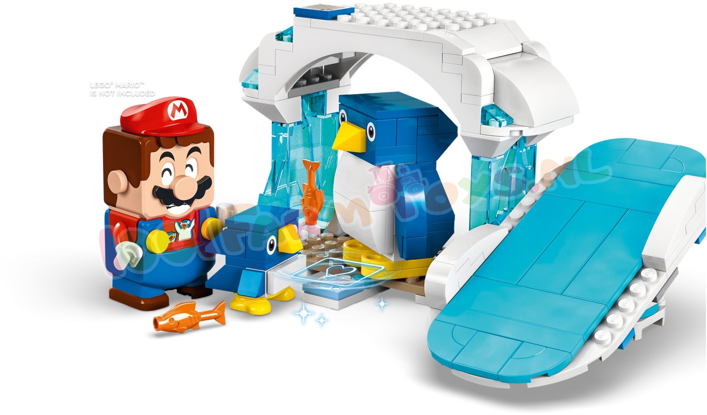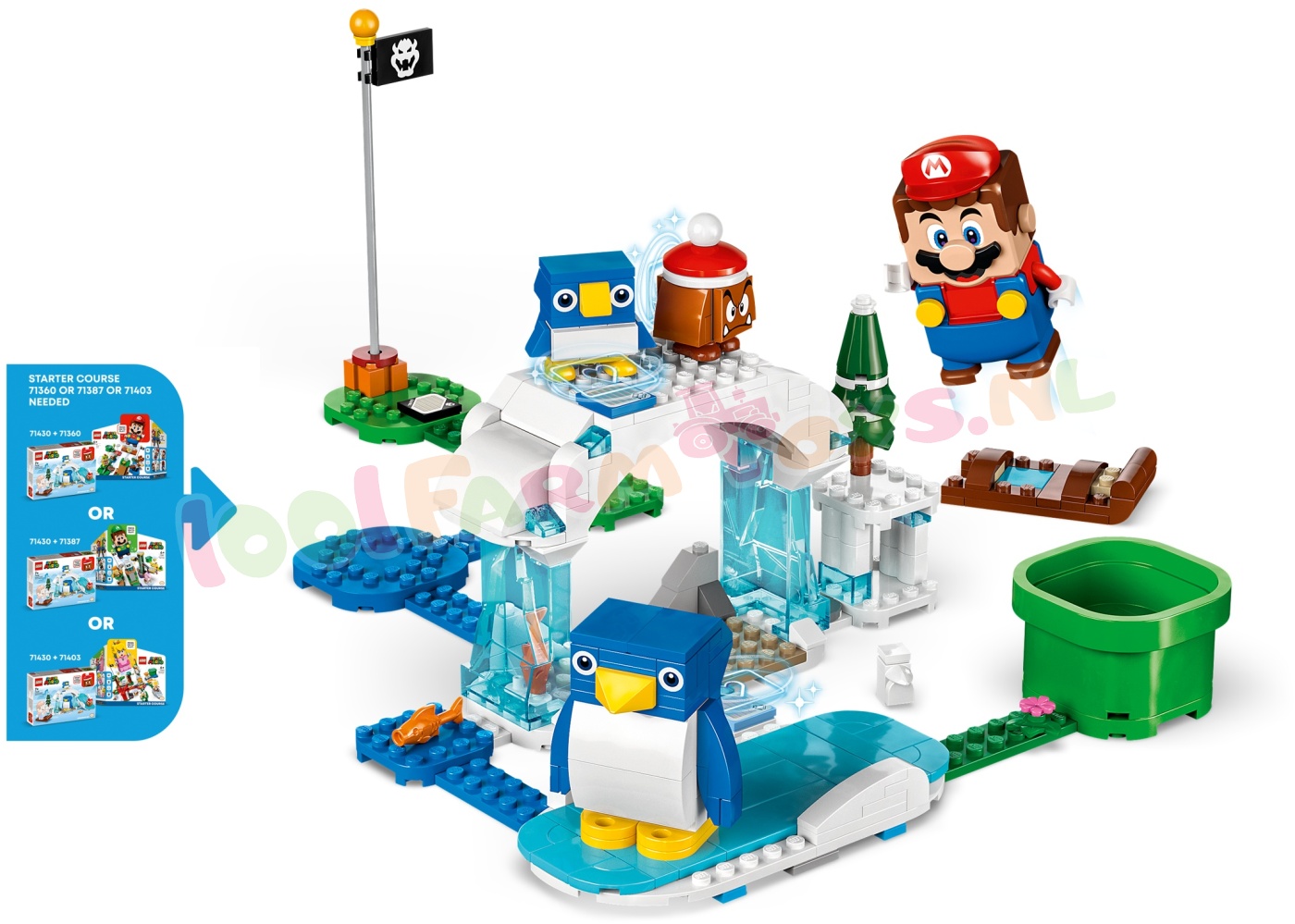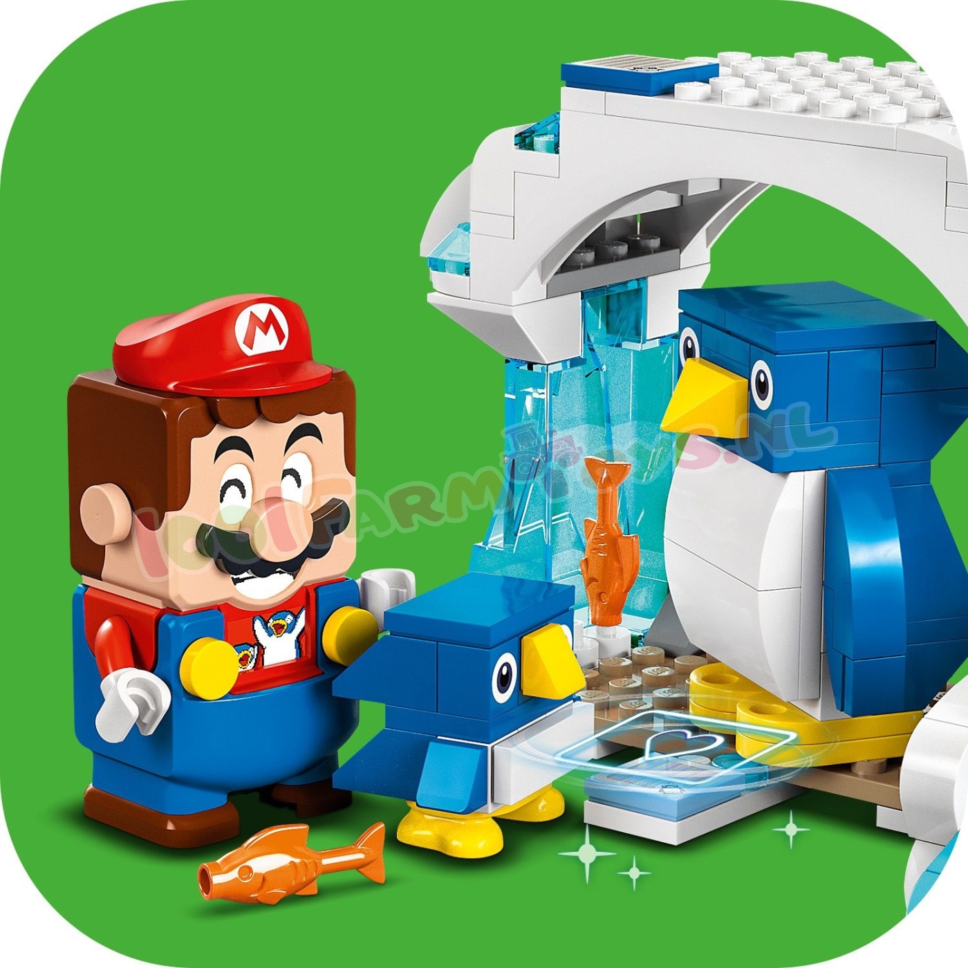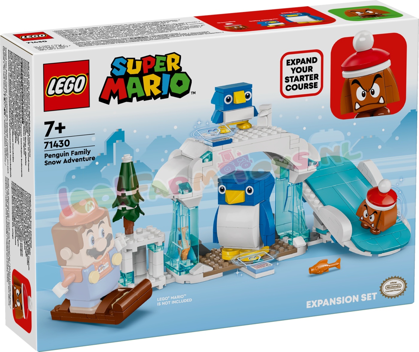 Speel rollenspellen en maak een leuk level met de LEGO® Super Mario™ Uitbreidingsset: Sneeuwavontuur met penguin en familie (71430). Dit bouwspeelgoed voor kinderen vanaf 7 jaar bevat 3 Super Mario™ personages – een van LEGO® stenen gebouwde Penguin. een babypinguïn en een Goomba figuur met winterse muts – plus een bouwbare ijsgrot. een 'ijsglijbaan' die kan worden omgebouwd tot een ijsbaan. 2 visfiguren en een slee voor creatief speelplezier.Voeg voor interactief spelen een LEGO® Mario™. LEGO® Luigi™ of LEGO® Peach™ figuur toe uit een LEGO Super Mario startset (71360. 71387 of 71403 – elk apart verkrijgbaar) en verdien digitale munten voor het herenigen van de babypinguïn met zijn ouder. het verslaan van de Goomba en meer.Deze set is een leuk cadeau voor gamers. Download de bijbehorende LEGO Super Mario app voor de bouwinstructies. fantasierijke bouw- en speelideeën en een veilige omgeving waar kinderen hun creaties met andere fans kunnen delen. LEGO® Super Mario™ bouwspeelgoed voor kinderen met een Goomba figuur – speel in een ijsgrot. ga sleeën en schaatsen met de Uitbreidingsset: Sneeuwavontuur met penguin en familie Inclusief 3 LEGO® Super Mario™ personages – een van LEGO® stenen gebouwde Penguin. een babypinguïn en een Goomba figuur met wintermuts. plus 2 visfiguren Rollenspelplezier – hang rond met de pinguïns in de grot. help ze van de 'ijsglijbaan' te sleeën of verander deze in een ijsbaan Interactief digitaal spelen – help LEGO® Mario™. LEGO® Luigi™ of LEGO® Peach™ (figuren niet inbegrepen) om de babypinguïn met zijn ouder te herenigen. op het 'ijs' te sleeën. de Goomba te verslaan en meer Cadeau voor gamers vanaf 7 jaar – geef deze kleine LEGO® set als verrassingscadeau aan kinderen. Voor interactief spelen is een LEGO® Super Mario™ startset (71360. 71387 of 71403) vereist De LEGO® Super Mario™ app – download de app voor de bouwinstructies. creatieve inspiratie en meer. Ga naar LEGO.com/devicecheck voor een lijst met compatibele Android- en iOS-apparaten Stimuleer de creativiteit van kinderen – LEGO® Super Mario™ speelsets staan voor rollenspel. digitaal munten verzamelen en creatieve uitdagingen. Ze zijn ideaal om alleen of juist samen mee te spelen Creëer een ijslevel – dit modulaire bouwspeelgoed met 228 onderdelen is ca. 9 cm hoog. 22 cm breed en 12 cm diep en kan worden gecombineerd met andere LEGO® Super Mario™ sets.