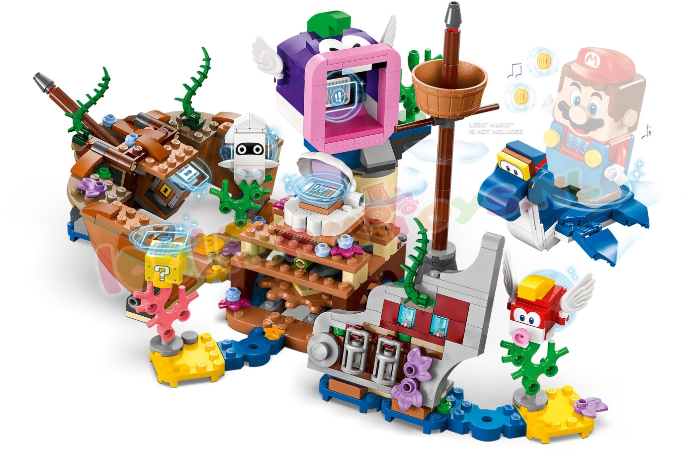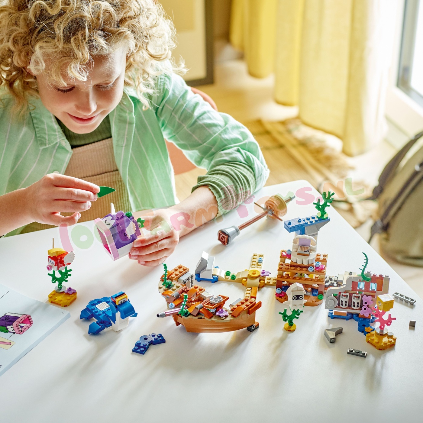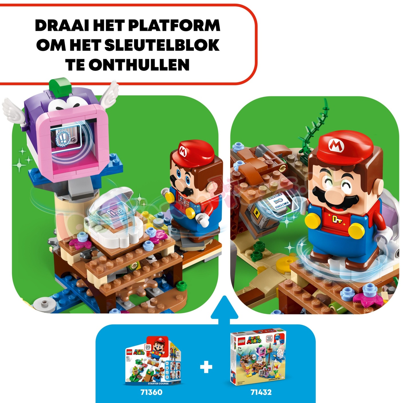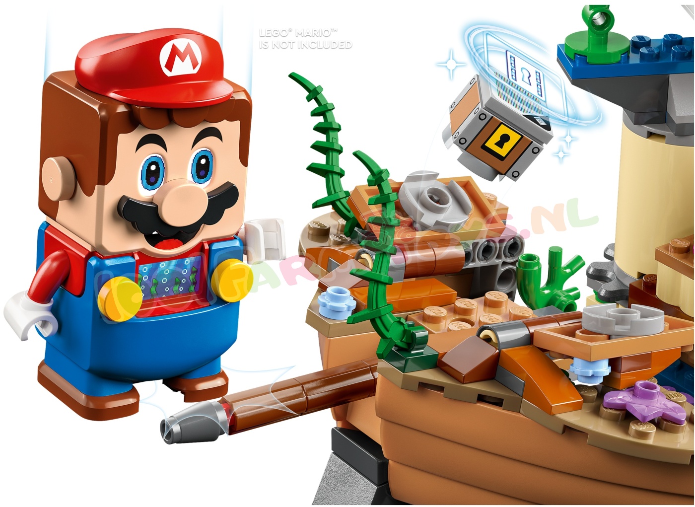 Creëer een spannend LEGO® Super Mario™ onderwaterlevel voor een schattenjacht met de Uitbreidingsset: Dorries gezonken scheepswrak (71432). Rijd op een Dorrie met een interactieve LEGO® Mario™. LEGO® Luigi™ of LEGO® Peach™ figuur (figuren niet inbegrepen) en verken het scheepswrak. Let op: voor interactief spelen is de startset 71360. 71387 of 71403 vereist.Dit bouwspeelgoed voor kinderen vanaf 7 jaar wordt geleverd met 4 bouwbare LEGO Super Mario™ personages: Dorrie. een Cheep Cheep. Cheep Chomp en Blooper. Draai aan het platform om het sleutelblok te ontdekken dat verborgen is in de schelp en open de schatkist om de edelsteen te pakken. Het ?-blok biedt willekeurige beloningen en de Cheep Chomp kan op een interactieve figuur in zijn mond kauwen voor leuke digitale reacties.In de LEGO Super Mario app vind je de bouwinstructies. De app biedt kinderen daarnaast creatieve bouw- en speelideeën en een veilige omgeving waar ze hun creaties kunnen delen. Uitbreidingsset: Dorries gezonken scheepswrak – voeg een avontuurlijke speurtocht toe aan de LEGO® Super Mario™ wereld van kinderen met dit bouwbare scheepswrak 4 bouwbare Super Mario™ personages – rijd op een Dorrie met LEGO® Mario™. LEGO® Luigi™ of LEGO® Peach™ (figuren niet inbegrepen) en versla de Cheep Cheep. Cheep Chomp en Blooper Interactief avonturenspeelgoed voor plezier met het hele gezin – verken het scheepswrak met een interactieve figuur. draai het platform om het sleutelblok in de schelp te onthullen en open de schatkist om de edelsteen te pakken Verzamelspeelgoed voor kinderen – ontvang willekeurige beloningen van het ?-blok en zie hoe een interactieve figuur reageert als de Cheep Chomp erop kauwt Cadeau voor gamers vanaf 7 jaar – deze 500-delige set is een leuk cadeau voor kinderen. Voor interactief spelen is een LEGO® Super Mario™ startset (71360. 71387 of 71403) vereist De LEGO® Super Mario™ app – download de app voor de bouwinstructies. inspirerende ideeën en meer. Ga naar LEGO.com/devicecheck voor een lijst met compatibele Android- en iOS-apparaten Voed de creativiteit van kinderen – LEGO® Super Mario™ speelgoed staat voor rollenspel. digitaal munten verzamelen en creatieve uitdagingen doordat het uit te breiden en om te bouwen is. Het is ideaal om alleen of juist samen mee te spelen Modulaire set – deze set is ca. 17 cm hoog. 30 cm breed en 21 cm diep in de basisopstelling en kan op verschillende manieren worden ingedeeld en gecombineerd met andere LEGO® Super Mario™ sets.