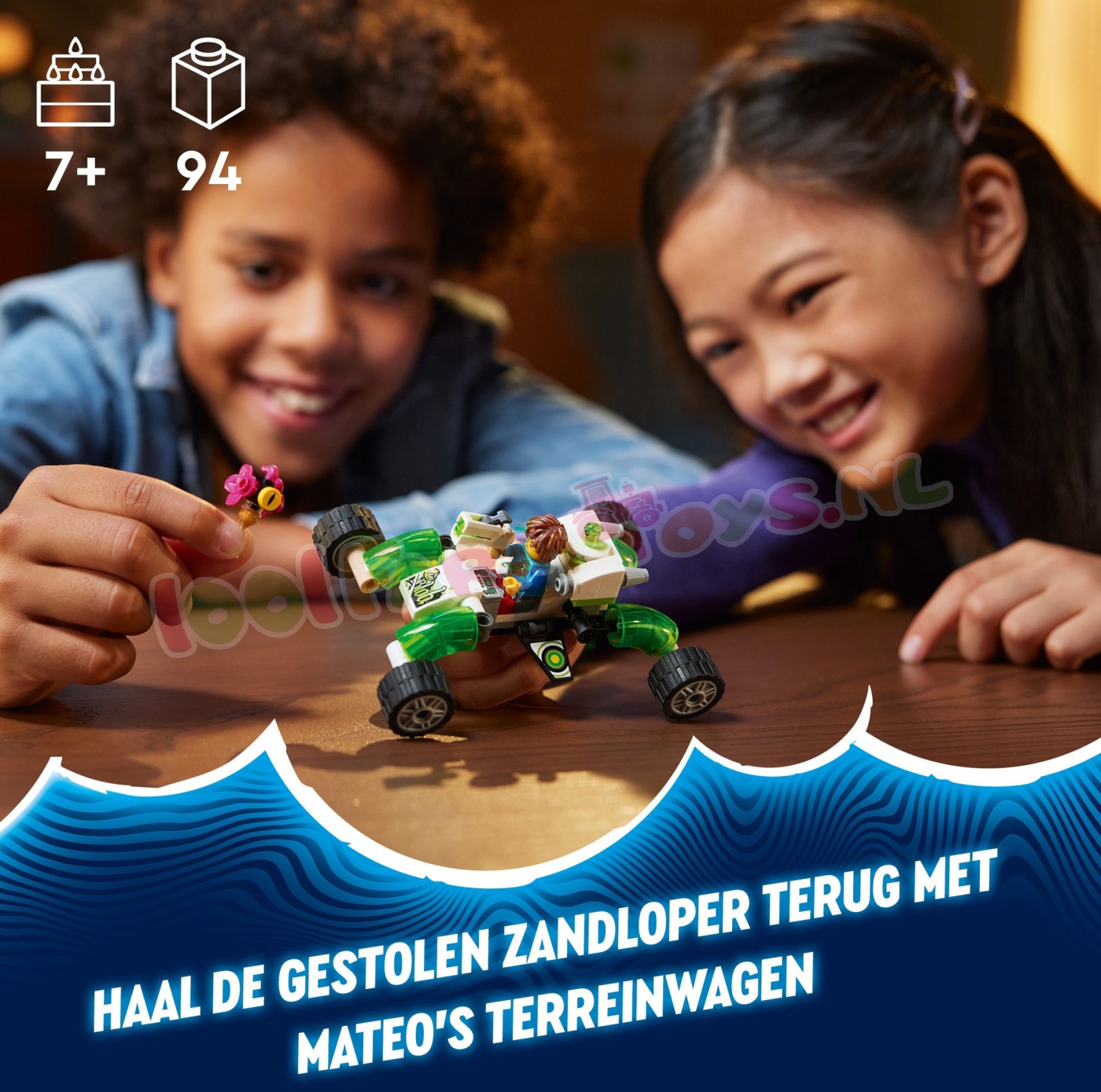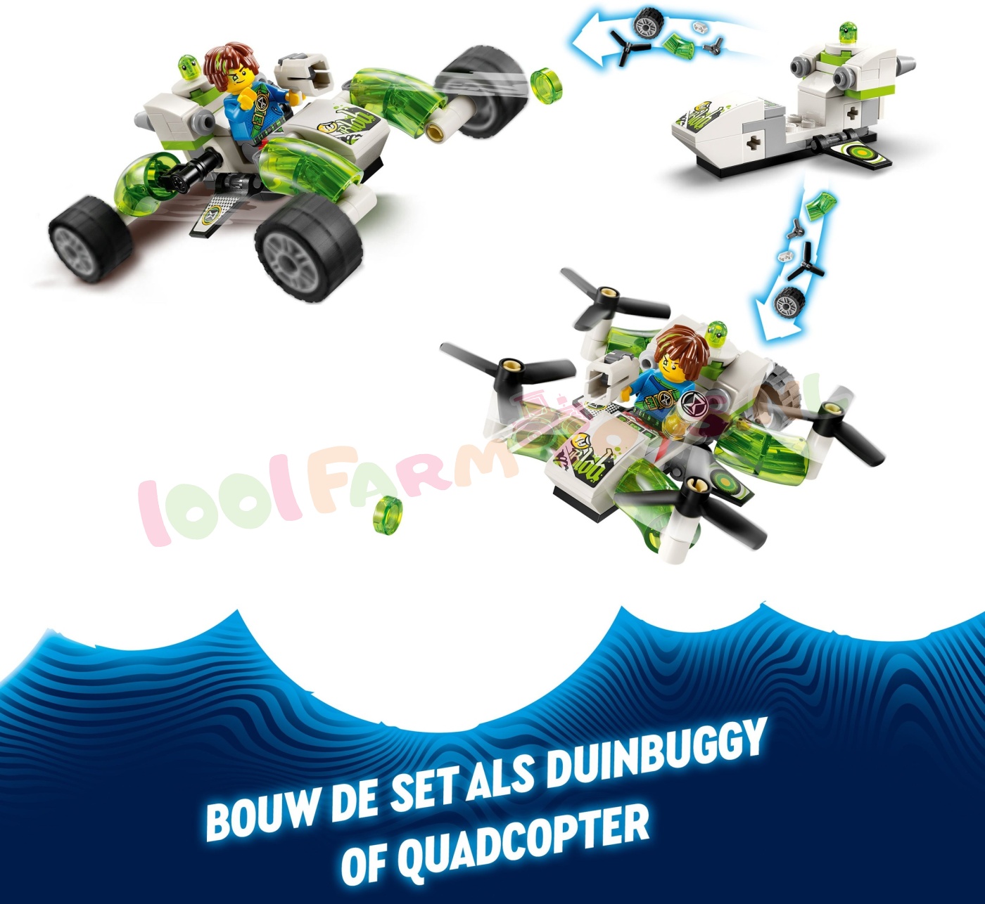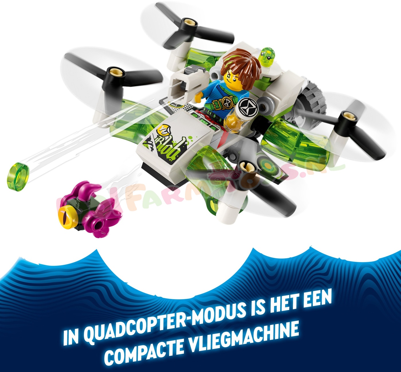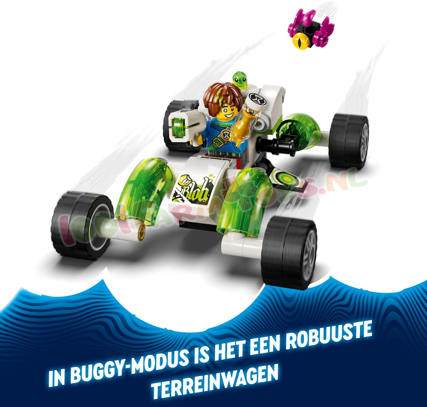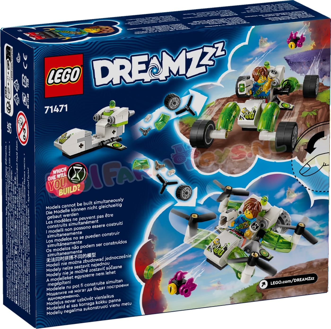 Kinderen vanaf 7 jaar kunnen de geweldige LEGO® DREAMZzz™ wereld verkennen met Mateo's terreinwagen (71471). De set is gebaseerd op de spannende tv-serie en kinderen kunnen de heldenfiguren Mateo en Z-Blob helpen een magische zandloper terug te vinden door het speelgoedvoertuig te bouwen als een buggy of een quadcopter.Door 2 spannende bouwmogelijkheden te bieden. moedigt dit actiespeelgoed kinderen aan om hun fantasie de vrije loop te laten en hun eigen avonturen te kiezen. In de buggymodus ishet model een stevige terreinwagen met draaiende wielen en in de quadcoptermodus een compacte vliegmachine met krachtige motoren.De set wordt tot leven gebracht door LEGO DREAMZzz personages. inclusief een gedetailleerde minifiguur van Mateo met een schieter. De set bevat ook figuren van een Grimgebroed en Mateo's kleverige hulpje Z-Blob. zodat kinderen creatief aan de slag kunnen en hun eigen droomavontuur kunnen bouwen. Speelgoedauto voor kinderen – jongens en meisjes vanaf 7 jaar kunnen hun fantasie de vrije loop laten met LEGO® DREAMZzz™ Mateo's terreinwagen. inclusief heldenfiguren en 2 verschillende bouwmogelijkheden 2 manieren om te spelen – creatieve kinderen kunnen hun eigen avontuur kiezen door het actiespeelgoed te bouwen als een buggy of een quadcopter Bouwen en herbouwen – in de buggymodus is het model een robuuste terreinwagen met draaiende wielen en in de quadcoptermodus een compacte vliegmachine met krachtige motoren Cadeaus voor kinderen – deze speelset is een fantasierijk cadeau voor jongens en meisjes die het voertuig keer op keer kunnen herbouwen LEGO® voertuig – deze kleine LEGO set voor autoliefhebbers is gebaseerd op de LEGO DREAMZzz™ tv-serie LEGO® DREAMZzz™ personages – de avontuurlijke speelgoedset bevat een minifiguur van Mateo. plus figuren van Z-Blob en een Grimgebroed LEGO® DREAMZzz™ sets – ontdek meer fantasiespeelgoed voor jongens en meisjes in het LEGO DREAMZzz assortiment. waarmee kinderen helemaal kunnen opgaan in avonturen in de Droomwereld en LEGO DREAMZzz personages kunnen ontmoeten Afmetingen – de bouwset bestaat uit 94 onderdelen en is in de buggymodus ca. 5 cm hoog. 12 cm lang en 9 cm breed.