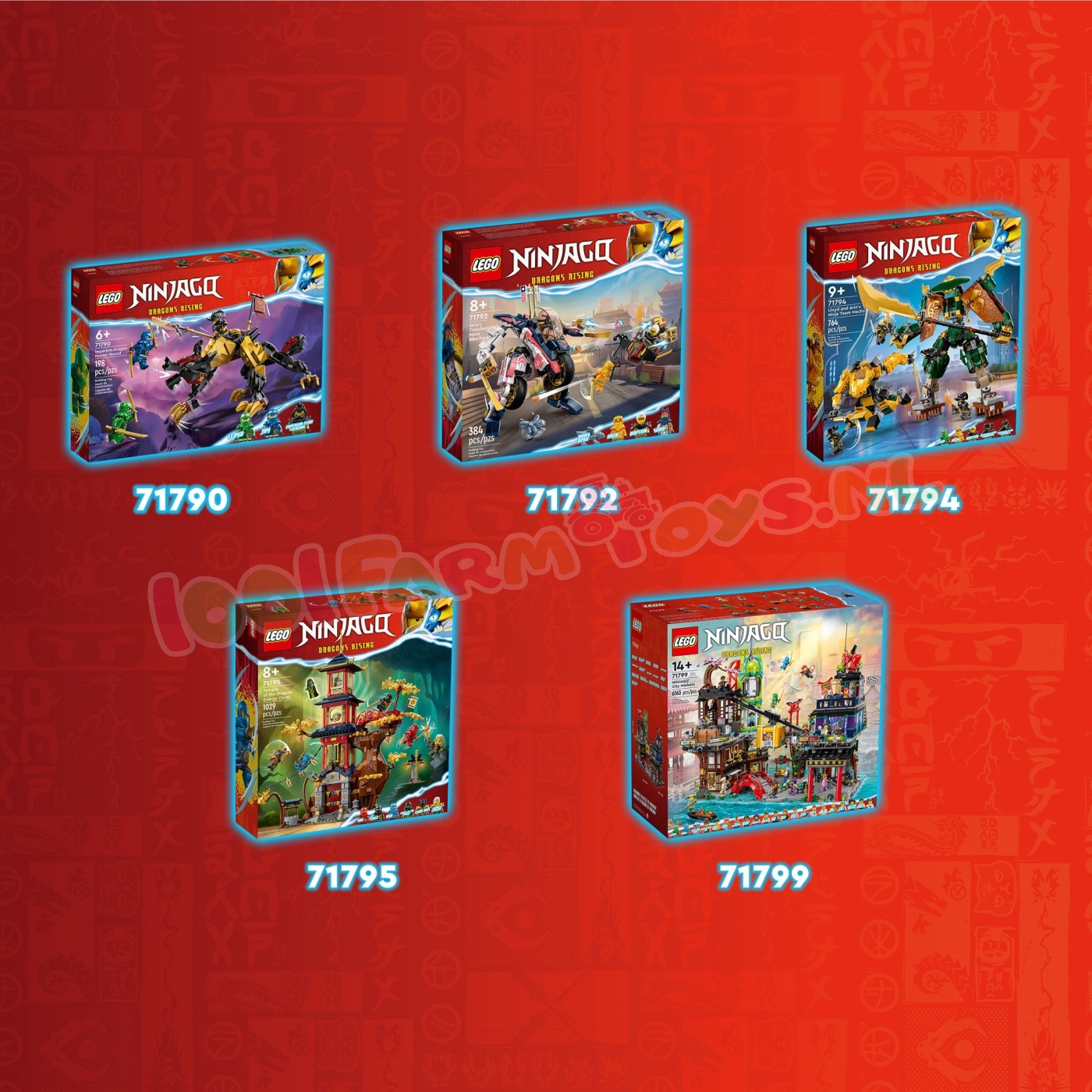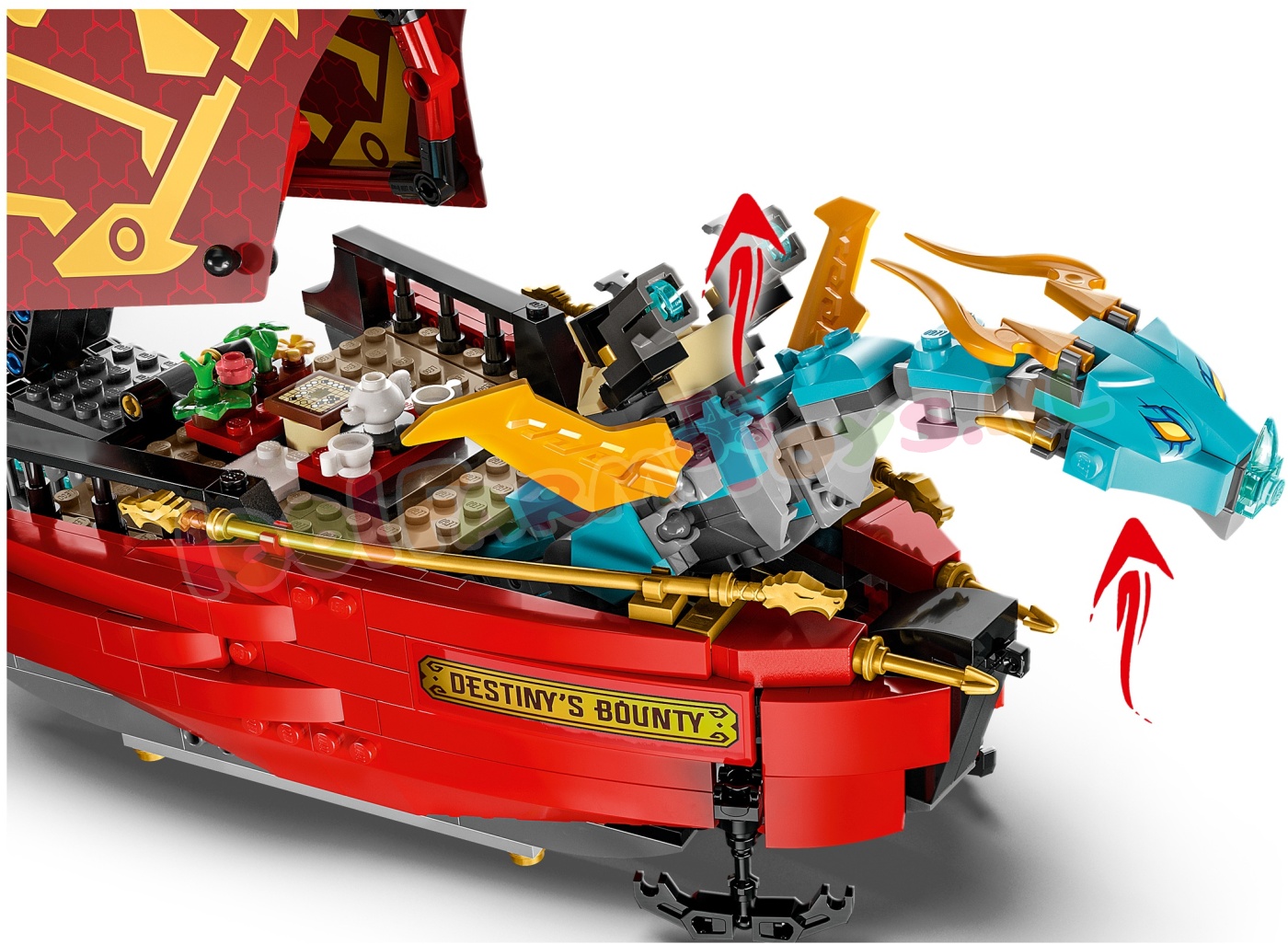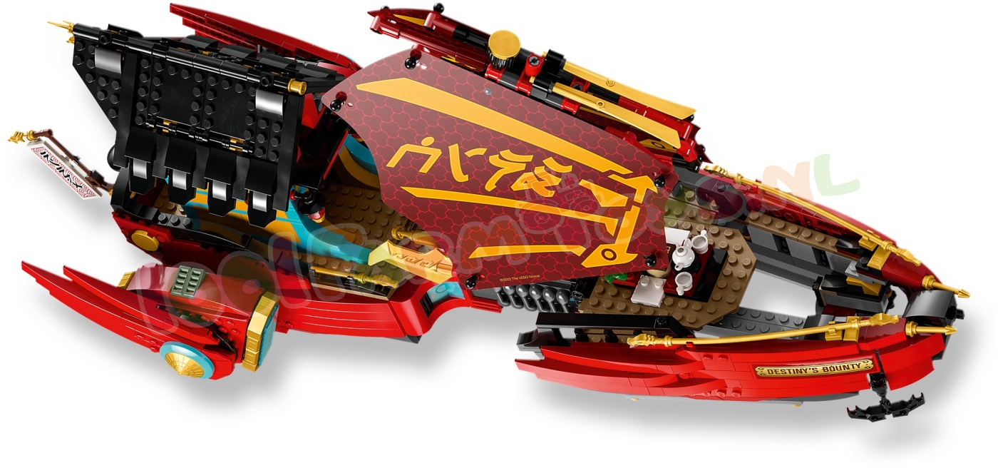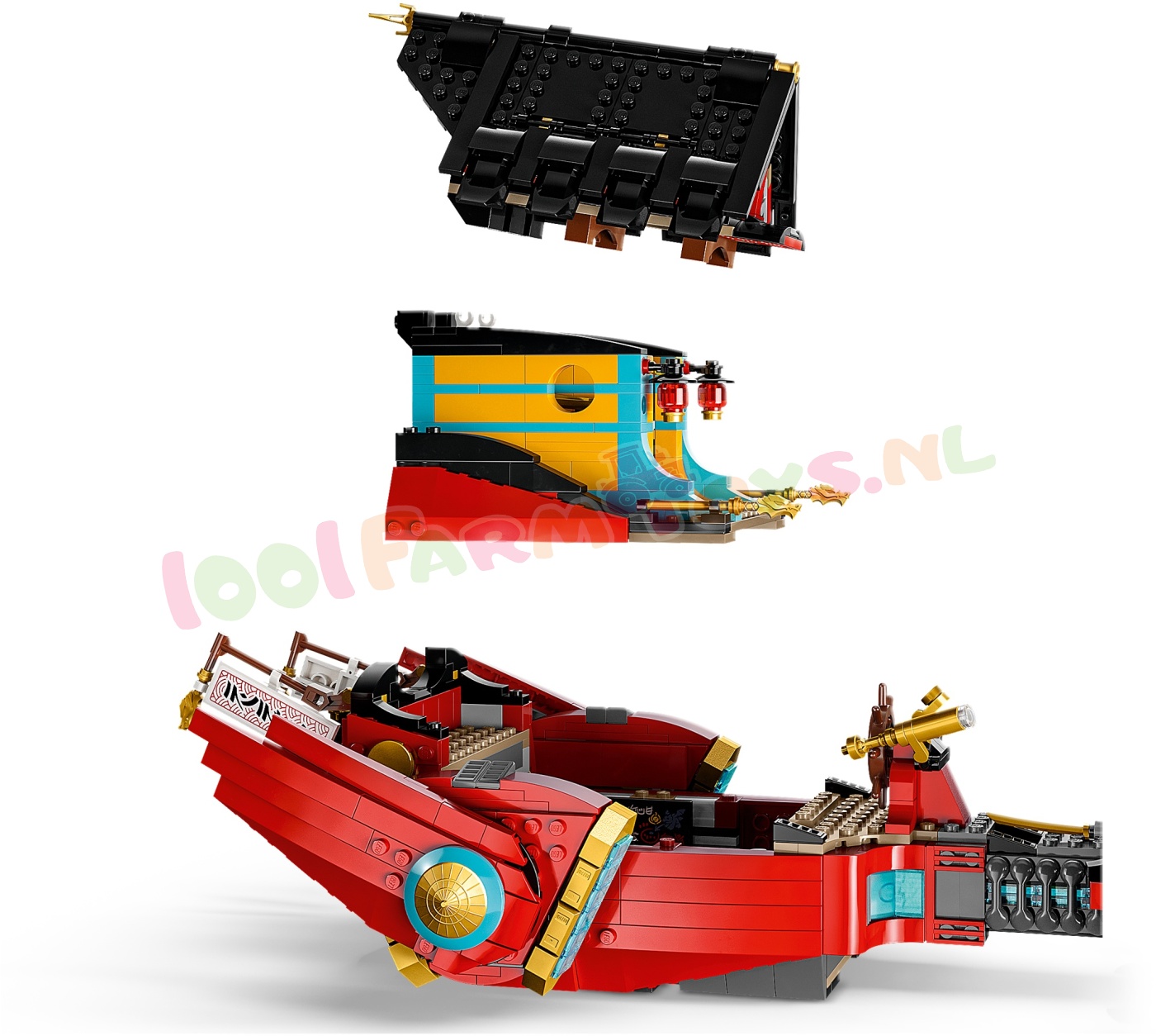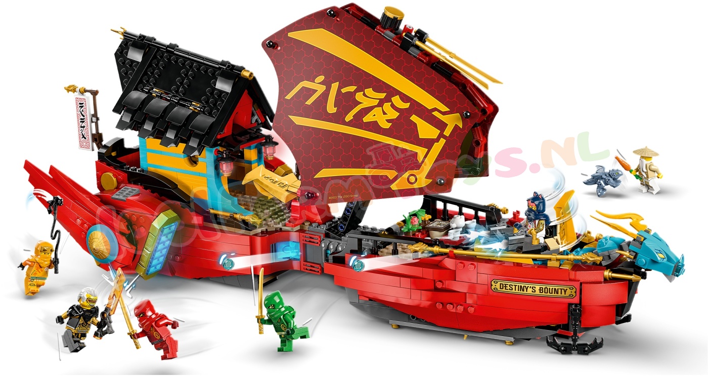 Ninjafans van 9 jaar en ouder zullen weg zijn van deze vernieuwde Destiny's Bounty – race tegen de klok (71797) speelset. Het bekende voertuig is nu een luchtschip. waarmee de ninja's boven de onlangs verenigde wereld kunnen zeilen. Met een afneembare draak aan de voorkant. verstelbare zeilen. noppenschieters aan de achterkant en motoren die 360 graden kunnen draaien. plus een afneembaar dak met daaronder een navigatieruimte en een speelkamer met speelautomaat.Cool kinderspeelgoedInclusief een model van baby Riyu en 6 minifiguren: Meester Wu met zijn staf. Arin met een enterhaak. Sora. Lloyd en Kai. die elk een gouden katana hebben. en Rapton met een Imperium zwaard en zijn eigen enterhaak om spannende scènes uit de tv-serie NINJAGO® Dragons Rising na te spelen.Een leuke digitale ervaring voor LEGO® fansLaat de LEGO Builder app jou en je kind begeleiden tijdens een eenvoudig en intuïtief bouwavontuur. Zoom in en draai modellen in 3D. bewaar sets en houd je voortgang bij. LEGO® NINJAGO® luchtschip – kinderen vanaf 9 jaar kunnen avonturen in de lucht naspelen met deze vernieuwde Destiny's Bounty – race tegen de klok (71797) speelset 6 minifiguren – het luchtschip wordt geleverd met minifiguren van Meester Wu. Arin. Sora. Lloyd. Kai en Rapton. elk met minstens 1 wapen voor rollenspellen boordevol actie 2 speelgoeddraken – deze fraaie speelset bevat een verstelbare elementdraak die aan de voorkant van het luchtschip kan worden vastgemaakt om het aan te drijven. plus een model van baby Riyu Functies van het luchtschip – het vernieuwde slagschip Destiny's Bounty beschikt over noppenschieters aan de achterkant. verstelbare zeilen en motoren die 360 graden kunnen draaien Afneembaar dak – haal het dak eraf om een navigatieruimte en een speelkamer met een speelautomaat voor de ninja's te onthullen Bouwen en spelen – kinderen vanaf 9 jaar kunnen genieten van een leuke bouwervaring met de 1739 onderdelen van deze set voordat ze de lucht in vliegen boven de nieuwe NINJAGO® wereld Leuk cadeau voor creatieve kinderen – dit vernieuwde ninjavoertuig is ca. 23 cm hoog. 53 cm lang en 31 cm breed. Een bijzonder cadeau voor een verjaardag of de feestdagen Een nieuwe bouwervaring – de LEGO® Builder app begeleidt jonge kinderen op een intuïtief bouwavontuur. Ze kunnen sets opslaan. hun voortgang bijhouden. inzoomen en hun modellen in 3D draaien tijdens het bouwen Topkwaliteit – LEGO® stenen worden al meer dan 60 jaar zo gemaakt dat ze elke keer weer consistent in elkaar te zetten zijn Veiligheid gegarandeerd – LEGO® bouwstenen voldoen aan strenge wereldwijde veiligheidsnormen.