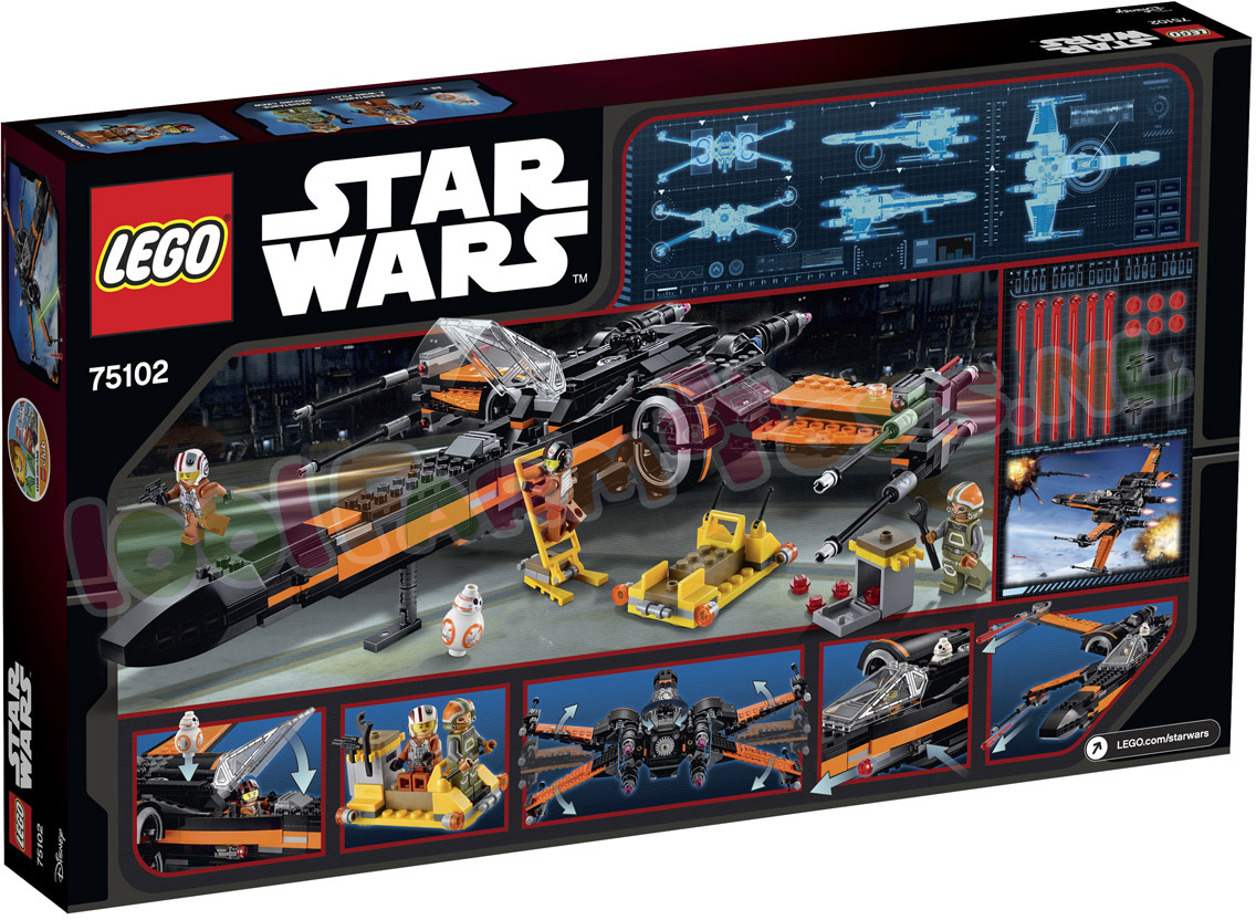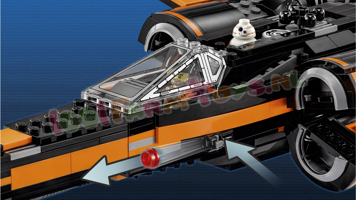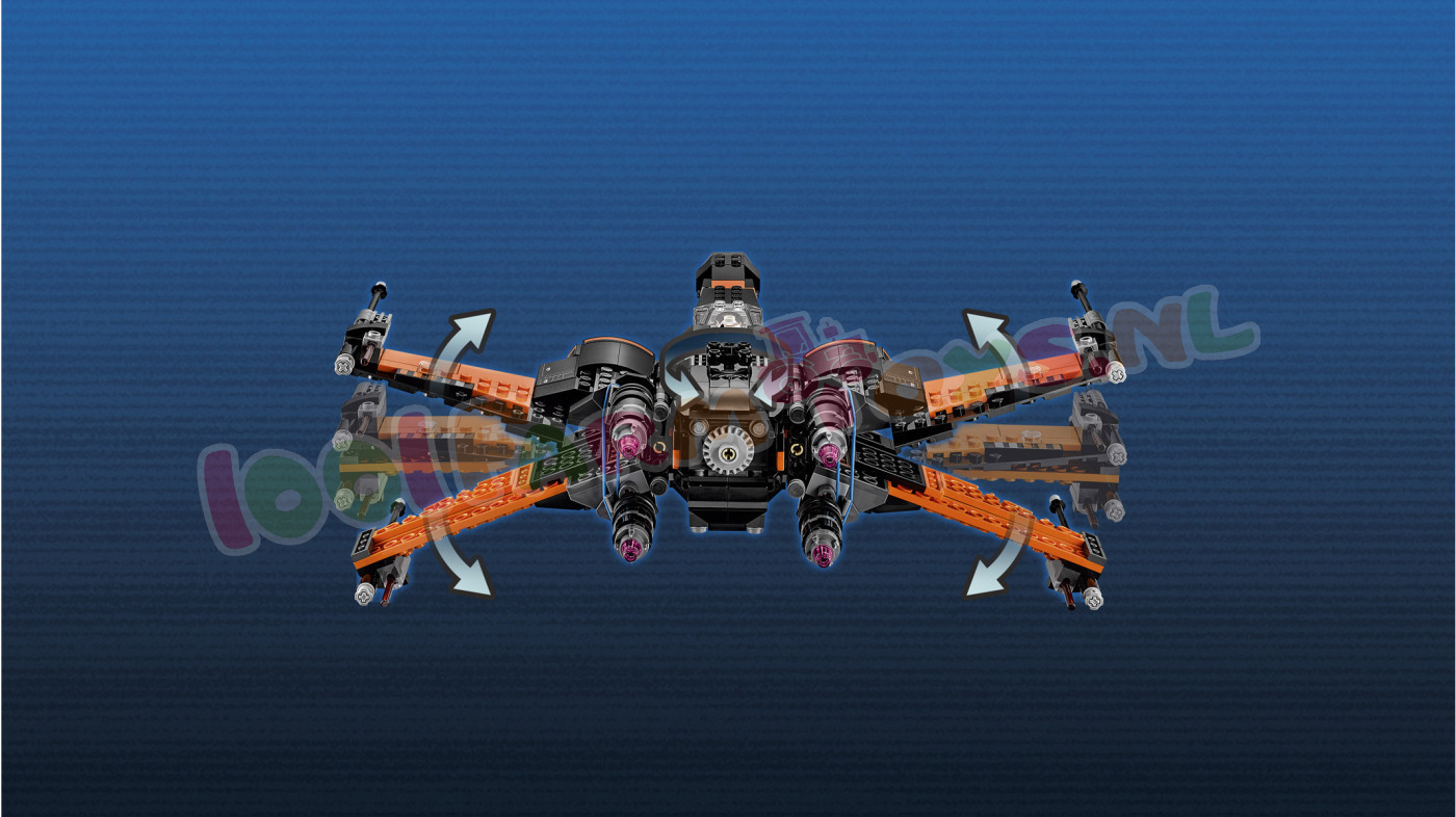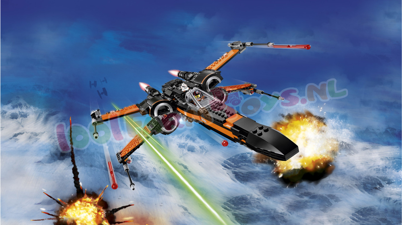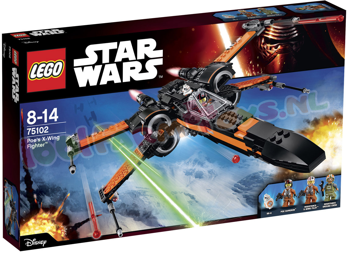 Het leger van de First Order mag dan indrukwekkend zijn. de Star Wars helden vechten terug! Poe’s X-Wing Fighter is de wendbare starfighter van Poe Dameron. boordevol slimme functies om zich te verdedigen tegen aanvallen van de vijand. Het gevechtsvliegtuig heeft viervoudig boordgeschut met veermechanisme en twee noppenschieters. Het landingsgestel is intrekbaar en de vleugels zijn uitvouwbaar. Open de cockpit om de piloot in zijn stoel te plaatsen. De BB-8 Astromech Droid kan achterin. Ook zijn er extra raketten en munitie aan boord. en een zitplaats voor een minifiguur. Met de LEGO 75102 Poe’s Wing Fighter speel je de spannende scenes uit de Star Wars film “The Force Awakens” keer op keer na. De LEGO 75102 Poe’s X-Wing Fighter wordt geleverd met drie minifiguren en een BB-8 Astromech Droid. Ga op spannende missies met Poe's X-Wing Fighter!Trek ten strijde in Poe's X-Wing Fighter met geschut met veermechanisme. noppenschieters. intrekbaar landingsgestel. uitvouwbare vleugels. lader. ladder naar de cockpit en meer.LEGO Star Wars 75102 Poe's X-Wing Fighter Specificaties: Inclusief 3 minifiguren met diverse wapens en accessoires: Poe Dameron. Resistance ground crew en een Resistance X-Wing piloot. plus een BB-8 Astromech Droid De set bestaat uit Poe's X-Wing Fighter. een laadvoertuig en een toegangsladder De X-Wing Fighter heeft viervoudig boordgeschut met veermechanisme. 2 noppenschieters. intrekbaar landingsgestel. uitvouwbare vleugels. cockpit die open kan met plaats voor een minifiguur en een ruimte achterin voor de BB-8 Astromech Droid Het laadvoertuig heeft wapenrekken. raketten. munitie en een minifiguur-zitplaats Wapens: 2 blasterpistolen Accessoires: 3 helmen en een moersleutel Vouw de vleugels naar buiten en stort je in de strijd! Bevoorraad het schip met het aparte laadvoertuig Start de motoren. stijg op en trek het landingsgestel in! Karakteristiek ontwerp Speel beroemde scènes na uit de film Star Wars: The Force Awakens De perfecte toevoeging aan iedere LEGO Star Wars collectie Speel spannende sneeuwplaneet-veldslagen na met de First Order Snowspeeder (productnr. 75100) Afmetingen: 11 cm hoog. 37 cm lang en 32 cm breed met geopende vleugels en 8 cm hoog met gesloten vleugels