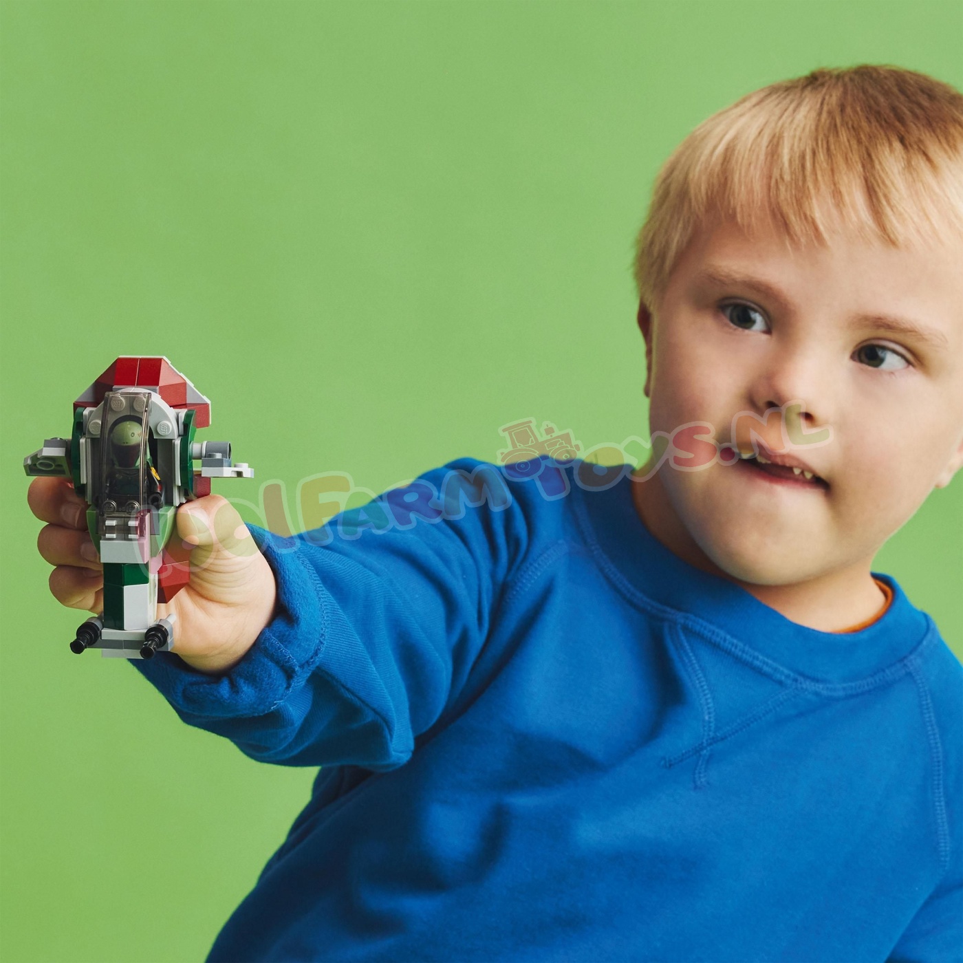 Laat kinderen van 6 jaar en ouder kennismaken met LEGO® Star Wars™ bouwspeelgoed met Boba Fett's sterrenschip Microfighter (75344). Deze schaalversie van LEGO stenen van het beroemde sterrenschip. zoals te zien in de klassieke Star Wars saga. Star Wars: The Mandalorian en Star Wars: The Book of Boba Fett. is voorzien van 2 knipschieters om vijandelijke starfighters aan te vallen en verstelbare vleugels om te vliegen en te landen. De meegeleverde LEGO minifiguur van Boba Fett heeft een blaster en een jetpack en past in de cockpit die open kan.LEGO Builder appVoeg een extra dimensie toe aan de creatieve ervaring van kinderen met de LEGO Builder app. inclusief instructies en interactieve zoom- en draaifuncties om ze te helpen bouwen met zelfvertrouwen.Een sterrenstelsel vol avonturenDe LEGO Groep maakt al sinds 1999 ruimteschepen. voertuigen. locaties en personages uit het Star Wars universum na. Er zijn talloze sets verkrijgbaar – superleuke cadeaus voor fans van alle leeftijden. Snel te bouwen LEGO® Star Wars™ Microfighter (75344) – jonge fans kunnen Star Wars: The Book of Boba Fett verhalen naspelen met deze schaalversie van LEGO stenen van Boba Fett's sterrenschip Inclusief een Boba Fett LEGO® minifiguur – het LEGO Star Wars™ personage Boba Fett heeft een blaster en jetpack als accessoire voor creatief speelplezier Leuke kenmerken – Boba Fett’s sterrenschip heeft een cockpit die open kan met ruimte voor de LEGO® minifiguur van Boba Fett. 2 knipschieters en verstelbare vleugels om te vliegen en landen Combineer Microfighters – je kunt dit bouwspeelgoed goed combineren met andere LEGO® Star Wars™ Microfighters voor nog meer speelmogelijkheden boordevol actie Leuk cadeau voor kinderen vanaf 6 jaar – geef dit 85-delige LEGO® Star Wars™ bouwspeelgoed aan kinderen als verrassing. beloning. verjaardagscadeau of voor de feestdagen Ook voor onderweg – de Microfighter is ca. 6 cm hoog. 9 cm lang en 8 cm breed. Compact genoeg om mee te nemen in een rugtas. zodat er ook onderweg mee gespeeld kan worden Interactief digitaal bouwen – wil je een jonge bouwer een nog leukere bouwervaring geven? Dat kan nu met de LEGO® Builder app inclusief intuïtieve zoom- en draaifuncties Bouwspeelgoed voor alle leeftijden – met LEGO® Star Wars™ sets kunnen kinderen en volwassen Star Wars fans beroemde scènes nabouwen. hun eigen creatieve verhalen bedenken en de bouwbare modellen op een mooi plekje neerzetten Kwaliteit gegarandeerd – LEGO® onderdelen voldoen aan strikte kwaliteitsnormen om ervoor te zorgen dat ze consistent en stevig op elkaar passen en robuuste modellen opleveren Veiligheid voor alles – LEGO® stenen en onderdelen worden gegooid. verhit. geplet. gedraaid en zorgvuldig geanalyseerd om er zeker van te zijn dat ze voldoen aan strenge wereldwijde veiligheidsnormen.