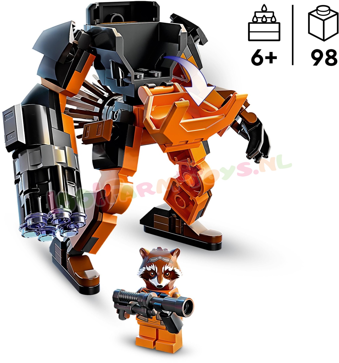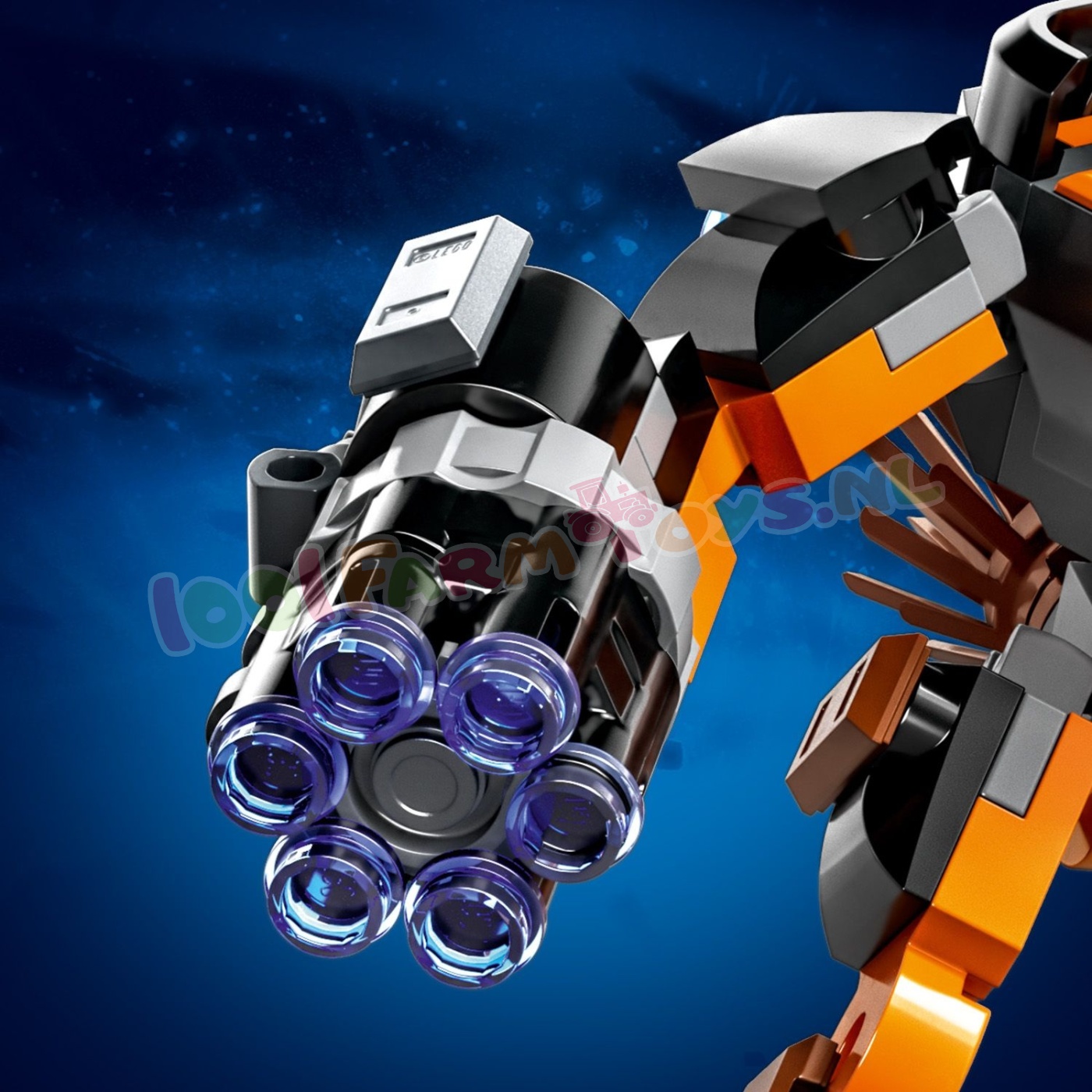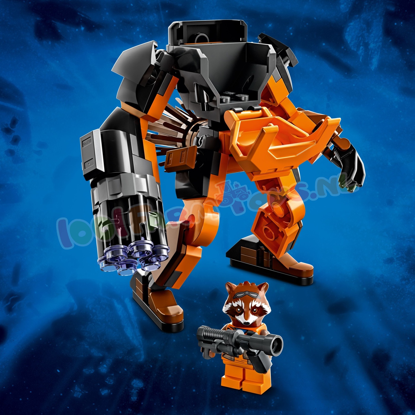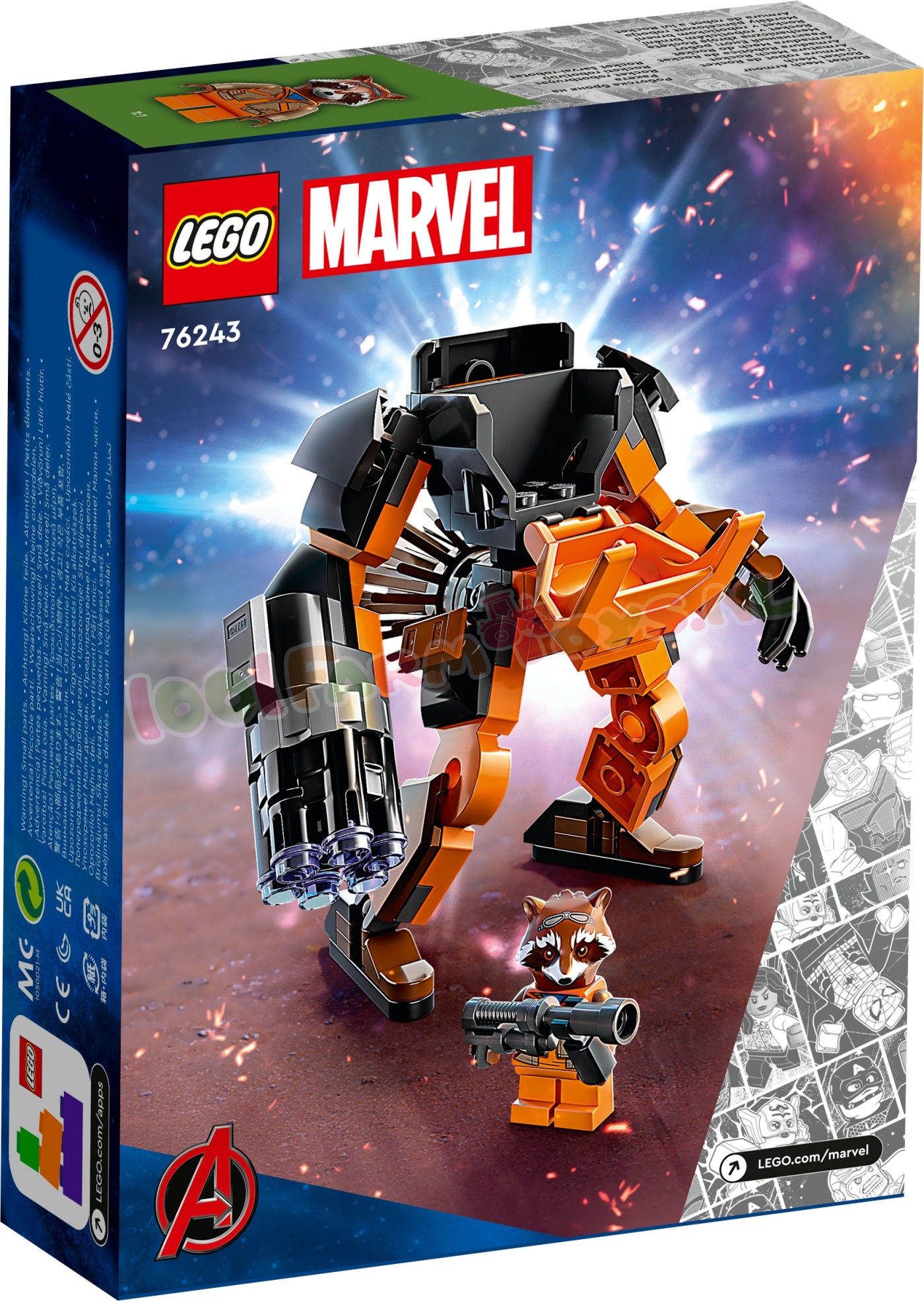 Fans van Marvel Studios Guardians of the Galaxy vanaf 6 jaar worden helemaal blij van dit LEGO® Marvel Rocket mechapantser (76243). Deze supergrote figuur plaatst Marvels razende wasbeer in de cockpit van zijn eigen indrukwekkende gevechtsmachine.Volledig verstelbare mechafiguur van Rocket RaccoonDe Rocket LEGO minifiguur past in de cockpit van de supergrote Rocket mecha. In zijn ene hand heeft de mecha een enorme blaster die 6 noppen tegelijk kan afschieten. Met de beweegbare armen. benen en vingers kan de mecha in allerlei houdingen worden geplaatst voor eindeloze speelmogelijkheden. Er is ook een kleinere blaster voor Rocket om te gebruiken als hij niet in de mecha zit. Voor extra digitaal plezier is er de LEGO Builder app met intuïtieve zoom- en draaifuncties waarmee kinderen hun model kunnen visualiseren terwijl ze het bouwen. Rocket Raccoon gevechtsmecha – het megagrote LEGO® Marvel Rocket mechapantser (76243) is een verrassing vol actie voor fans van de Marvel Studios Guardians of the Galaxy films Beroemd Marvel personage – inclusief een Rocket minifiguur en een bouwbare Rocket mecha met volledig verstelbare armen. benen en vingers. plus een blaster die 6 noppen tegelijk kan afschieten Verstelbaar om mee te spelen en neer te zetten – de Rocket minifiguur past in de cockpit van de volledig beweegbare mecha. die gemakkelijk aan te passen is voor eindeloze actie en avontuur Cadeau voor Marvel fans – deze bouwbare Rocket mecha boordevol actie is een veelzijdig cadeau voor een verjaardag. de feestdagen of een andere gelegenheid voor kinderen vanaf 6 jaar Spelen waar je maar wilt – deze draagbare speelfiguur is ca. 11 cm hoog. zodat kinderen hem overal mee naartoe kunnen nemen Interactief digitaal bouwen – de LEGO® Builder app heeft intuïtieve zoom- en draaifuncties waarmee kinderen hun model kunnen visualiseren terwijl ze het bouwen Onbeperkt plezier met superhelden – de uitgebreide reeks LEGO® Marvel bouwspeelgoed is ontworpen voor eindeloze fantasierijke bouw- en speelmogelijkheden Kwaliteit gegarandeerd – LEGO® onderdelen voldoen aan strenge kwaliteitsnormen. waardoor ze consistent. compatibel en comfortabel in elkaar te zetten zijn Veiligheid staat voorop – LEGO® onderdelen worden gegooid. verhit. geplet. gedraaid en geanalyseerd om er zeker van te zijn dat ze voldoen aan strikte wereldwijde veiligheidsnormen.