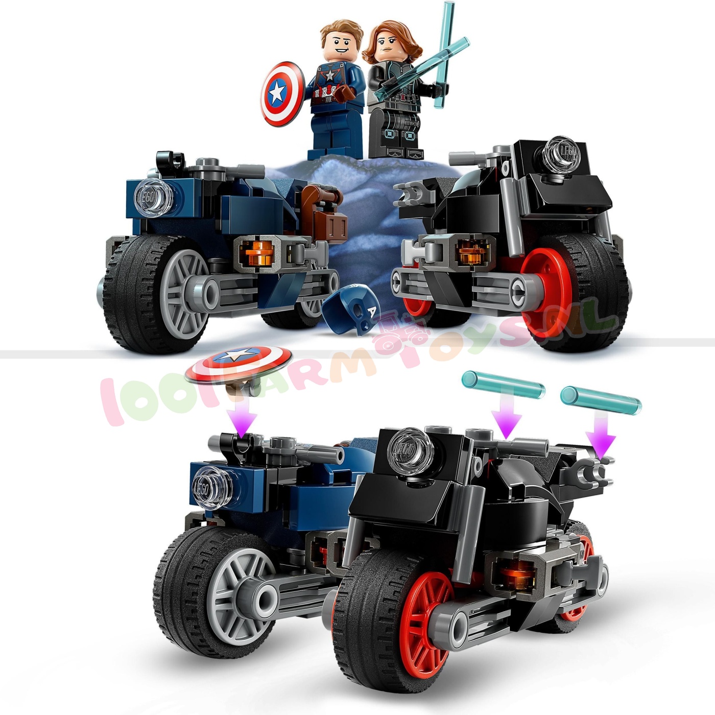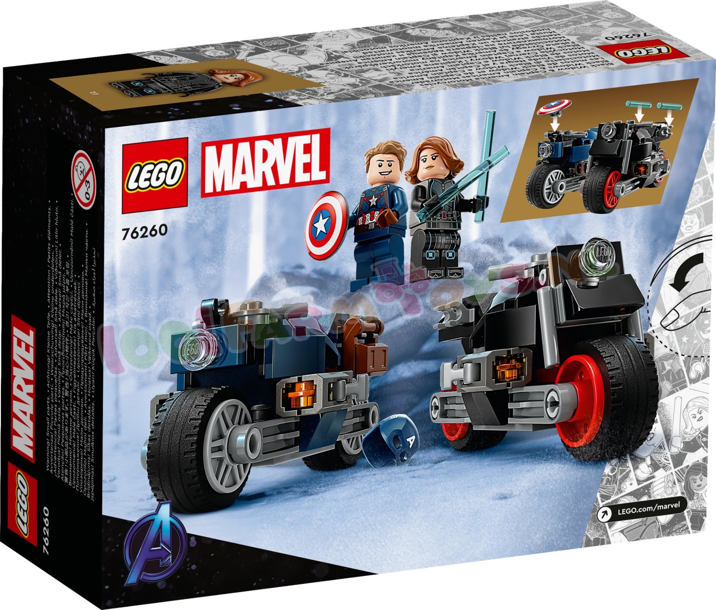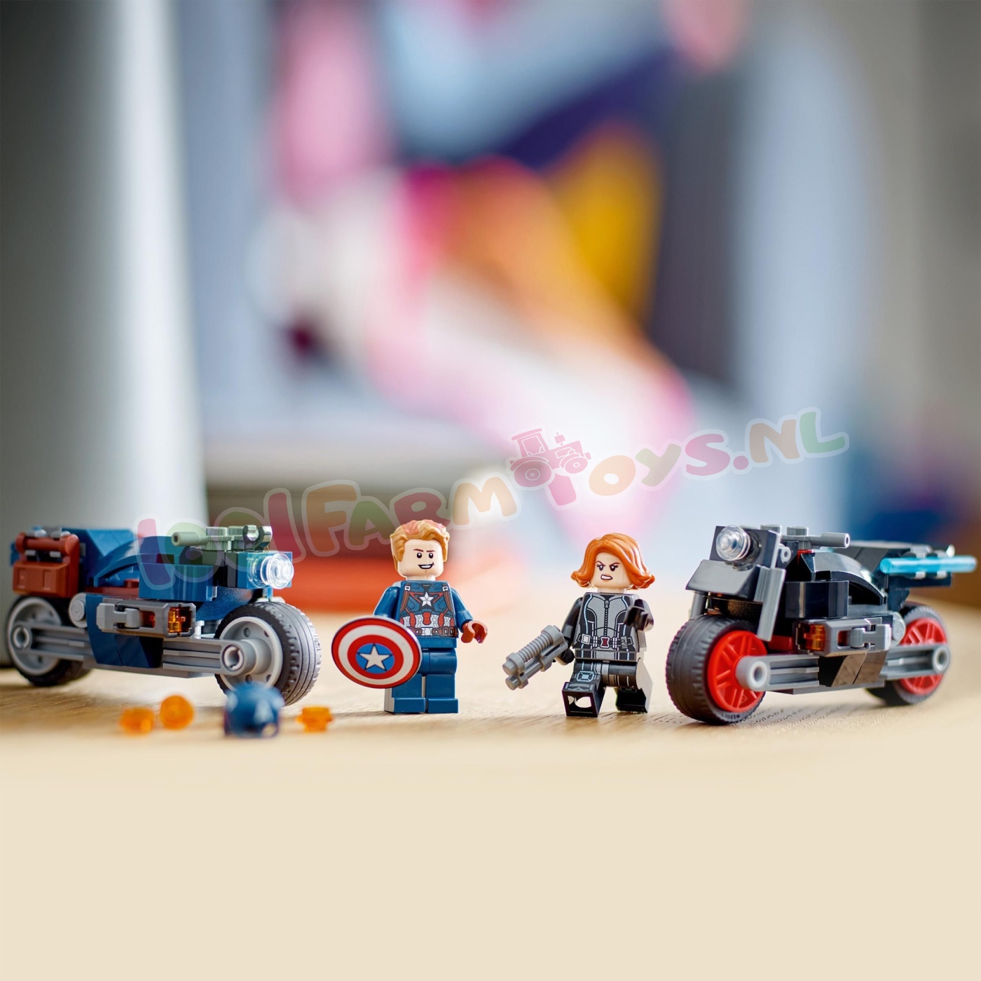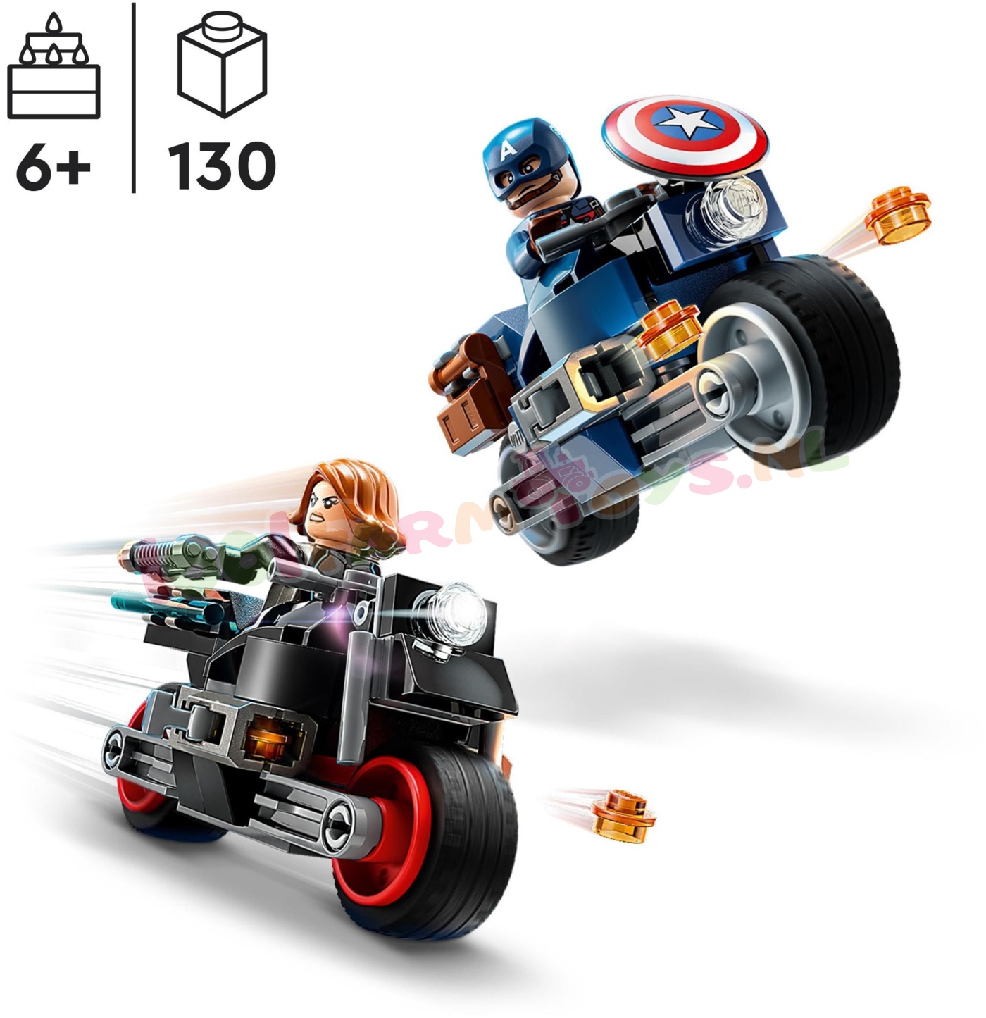 Breng spannende actiescènes uit de film tot leven met de LEGO® Marvel Black Widow & Captain America motoren (76260). Deze set is gebaseerd op de Marvel Studios film Avengers: Age of Ultron. De superhelden op motoren nemen kinderen vanaf 6 jaar mee op een eindeloze reis vol fantasierijke avonturen.Avengers actie – op wielen!De minifiguren van Captain America en Black Widow rijden op motoren die voor het eerst te zien waren in de onvergetelijke Marvel Studios film Avengers: Age of Ultron uit 2015. Beide motoren hebben zijschieters en houders voor de wapenstok van Black Widow en het schild van Captain America. De minifiguren kunnen eenvoudig van de motoren af worden gehaald om de speelmogelijkheden nog verder uit te breiden. Voor extra digitaal plezier kunnen bouwers inzoomen. sets in 3D draaien en hun voortgang bijhouden met de leuke. intuïtieve LEGO Builder app. Supersnelle Avengers avonturen – de set LEGO® Marvel Black Widow & Captain America motoren (76260) brengt een klassieke scène uit de Marvel Studios film Avengers: Age of Ultron tot leven Superhelden op motoren – de speelset bevat minifiguren van Captain America en Black Widow met hun bekende schild en wapenstok en 2 motorfietsen om zelf te bouwen Actie op en naast de motoren – beide motorfietsen hebben zijschieters om slechteriken af te weren. De minifiguren kunnen eenvoudig van de motoren worden afgehaald om de speelmogelijkheden nog verder uit te breiden Cadeau voor jonge superhelden – geef deze speelset cadeau aan Marvel filmfans van 6 jaar of ouder voor een verjaardag. de feestdagen of zomaar tussendoor Overal plezier – elke motor is ca. 4 cm hoog. 8 cm lang en 4 cm breed. zodat kinderen dit veelzijdige bouw- en speelspeelgoed overal mee naartoe kunnen nemen Intuïtieve bouwinstructies – kinderen kunnen de LEGO® Builder app downloaden voor een complete bouwervaring met digitale functies om in te zoomen en modellen in 3D te draaien. sets te bewaren en hun voortgang bij te houden Vergroot het superheldenplezier – de uitgebreide reeks LEGO® Marvel bouwspeelgoed is ontworpen voor eindeloze fantasierijke bouw- en speelmogelijkheden Kwaliteit gegarandeerd – LEGO® onderdelen voldoen aan strenge kwaliteitsnormen om ervoor te zorgen dat ze consistent. compatibel en comfortabel in elkaar te zetten zijn Veiligheid staat voorop – LEGO® stenen en onderdelen worden gegooid. verhit. geplet. gedraaid en geanalyseerd om er zeker van te zijn dat ze voldoen aan strikte wereldwijde veiligheidsnormen.