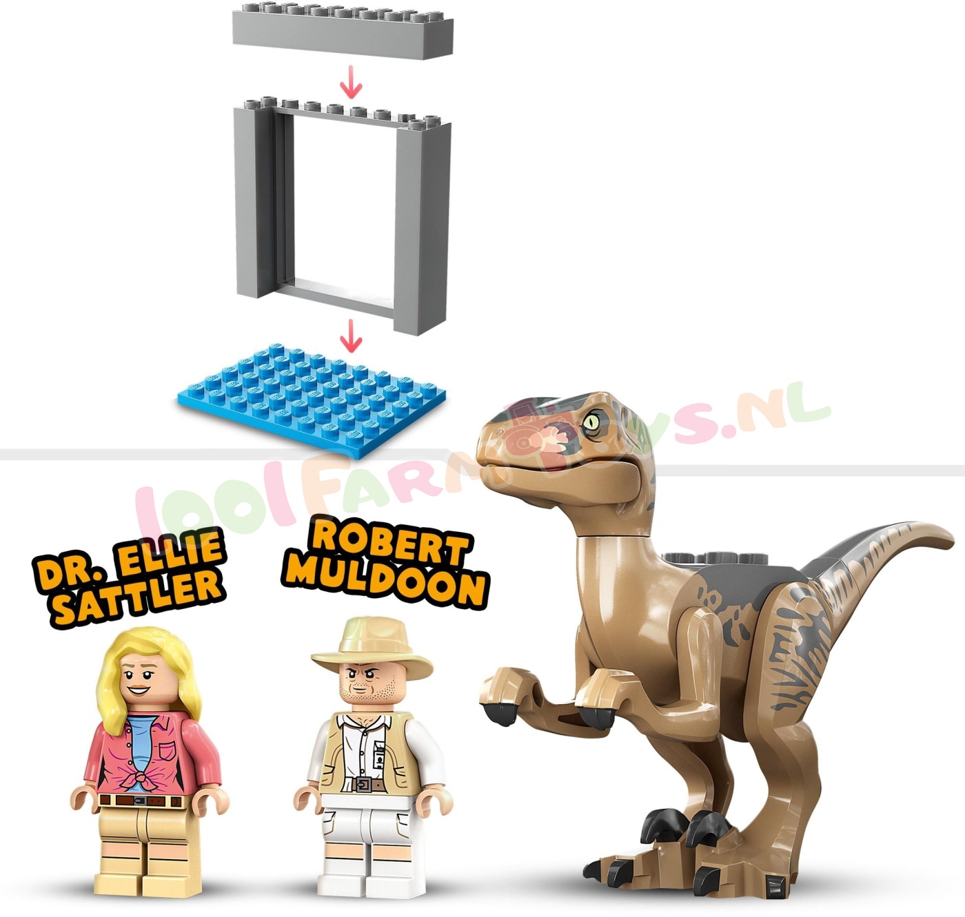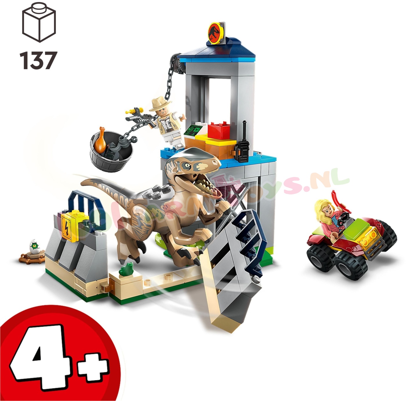 Kinderen vanaf 4 jaar kunnen leren bouwen met deze LEGO® Jurassic World Velociraptor ontsnapping (76957) speelset. De set is geïnspireerd op een bekende scène uit Jurassic Park en bevat een dinosaurusverblijf met een toren. ontsnappingsfunctie en lier om voedsel naar de Velociraptor figuur te laten zakken. Inclusief een bouwbare terreinwagen. 2 minifiguren en leuke accessoires voor creatief spel.Digitale instructiesDe eenvoudige instructies met afbeeldingen zijn geschikt voor kinderen dienog niet kunnen lezen. Voor extra digitaal plezier heeft de LEGO Builder app intuïtieve zoom- en draaifuncties waarmee kinderen hun model tijdens het bouwen kunnen visualiseren.Samen bouwenMet LEGO 4+ bouwsets maken jonge kinderen kennis met een wereld van films. tv-sterren en alledaagse helden. De sets zijn speciaal ontwikkeld voor kinderen vanaf 4 jaar en bevatten startstenen zodat zelfs beginnende bouwers voertuigen. gebouwen en meer kunnen bouwen met wat hulp van een broer. zus of volwassene. Startset – laat kinderen vanaf 4 jaar kennismaken met LEGO® Jurassic World speelgoedsets met de Velociraptor ontsnapping (76957) inclusief een verstelbare Velociraptor figuur. een snel te bouwen dinosaurusverblijf en een terreinwagen 2 minifiguren – dr. Ellie Sattler en Robert Muldoon. plus een kikkerfiguur. Accessoires zijn onder andere een speelgoedwalkietalkie. verdovingsgeweer. hotdog. dinosauruspoep en een dinosaurusei in een bouwbaar nest Speelse functies – het dinosaurusverblijf heeft een toren met een startsteen om het bouwen gemakkelijker te maken. een lier met een voermand. een poort voor de terreinwagen en een hek met ontsnappingsfunctie Cadeau voor kinderen vanaf 4 jaar – deze 137-delige LEGO® Jurassic World startset kan eenvoudig opnieuw worden gebouwd nadat de raptor is ontsnapt en is een leuk cadeau voor een verjaardag. de feestdagen of zomaar tussendoor Bouwen en spelen – de toren en het dinosaurusverblijf zijn geïnspireerd op de film Jurassic Park en zijn ca. 17 cm hoog. 16 cm breed en 11 cm diep Plezier voor het hele gezin – deze startset is ontworpen met het oog op de vaardigheden (en aandachtsboog) van jonge kinderen met modellen die ze kunnen bouwen met slechts een beetje hulp van een ouder. broer of zus Gedrukte en digitale instructies – in de doos vind je stapsgewijze instructies met afbeeldingen. Download de LEGO® Builder app voor digitale bouwinstructies. plus zoom- en draaifuncties Stimuleer de creativiteit – LEGO® Jurassic World 4+ bouwsets laten kinderen op een leuke manier kennismaken met speelgoeddino's. Ze leren bouwen en ontwikkelen hun fantasie Hoge kwaliteit – LEGO® stenen voldoen aan strikte industrienormen. waardoor ze elke keer weer eenvoudig en stevig op elkaar passen Veiligheid voor alles – LEGO® onderdelen worden gegooid. verhit. geplet. gedraaid en zorgvuldig geanalyseerd om er zeker van te zijn dat ze voldoen aan strenge wereldwijde veiligheidsnormen.
