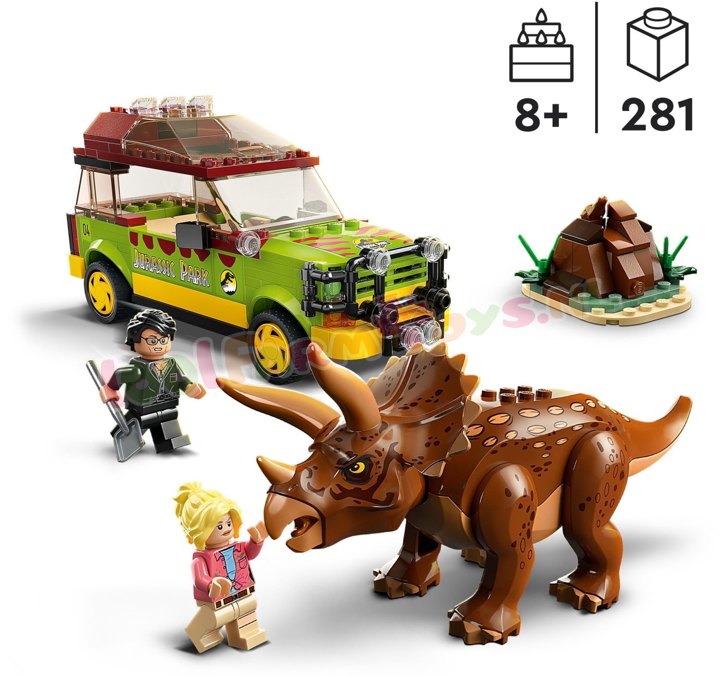 Kinderen die van dinosaurussen en coole auto's houden. zullen weg zijn van deze LEGO® Jurassic World Triceratops onderzoek (76959) speelset. Dit geweldige cadeau voor kinderen vanaf 8 jaar bevat een authentiek gedetailleerde Jurassic Park Ford Explorer met een navigatiesysteemelement om dinosaurussen te vinden en ruimte voor de 2 minifiguren van dr. Ellie Sattler en Ian Malcolm. Er is ook een verstelbare Triceratops. een bouwbare stapel dinosauruspoep met een giftige bes en een schop. zodat kinderen de beroemde Jurassic Park scène kunnen naspelen waaraan de set is ontleend.LEGO BuilderKinderen kunnen genieten van een eenvoudig en intuïtief bouwavontuur met de LEGO Builder app. Hiermee kunnen ze inzoomen en hun modellen in 3D draaien. sets opslaan en hun voortgang bijhouden.Dinofeest!Er zijn LEGO Jurassic World sets voor fans van alle leeftijden. of ze nu legendarische scènes uit de films of animatieserie willen naspelen of de verzamelmodellen willen bouwen en neerzetten. Speelset voor kinderen die van dino's en auto's houden – speel een onvergetelijke scène uit de film Jurassic Park na met deze Triceratops onderzoek (76959) set met een bouwbare Ford Explorer en dinosauruspoep Speelgoeddinosaurus en 2 minifiguren – een verstelbare Triceratops figuur. Ian Malcolm en dr. Ellie Sattler met een schop om de verborgen giftige bes uit de bouwbare dinosauruspoep te scheppen Ford Explorer – de speelgoedauto zit boordevol authentieke details van de terreinwagen uit Jurassic Park en heeft ruimte voor beide minifiguren en een ingebouwd navigatiesysteemelement Cadeau-idee voor kinderen vanaf 8 jaar – geef deze leuke 281-delige Jurassic Park bouwset als verjaardagscadeau of cadeau voor de feestdagen. Kinderen kunnen er alleen of samen met vrienden urenlang mee spelen Plezier voor onderweg – de bouwbare Ford Explorer is ca. 8 cm hoog. 16 cm lang en 6 cm breed. De set past dus gemakkelijk in een rugzak om mee te nemen als je kind bij iemand gaat spelen Een helpende hand – ontdek intuïtieve bouwinstructies in de LEGO® Builder app waarmee bouwers kunnen inzoomen en hun model kunnen draaien in 3D. hun voortgang kunnen bijhouden en sets kunnen opslaan terwijl ze nieuwe vaardigheden ontwikkelen Het LEGO® Jurassic World assortiment – er zijn sets om fans van alle leeftijden te verrassen. of ze nu beroemde scènes willen naspelen. hun eigen verhalen willen bedenken of de modellen willen bouwen en neerzetten Topkwaliteit – LEGO® stenen voldoen aan strikte industrienormen om ervoor te zorgen dat ze consistent zijn en eenvoudig op elkaar passen Een veilige keuze – LEGO® stenen en onderdelen worden op vrijwel alle denkbare manieren getest en grondig geanalyseerd om er zeker van te zijn dat ze voldoen aan strenge wereldwijde veiligheidsnormen.