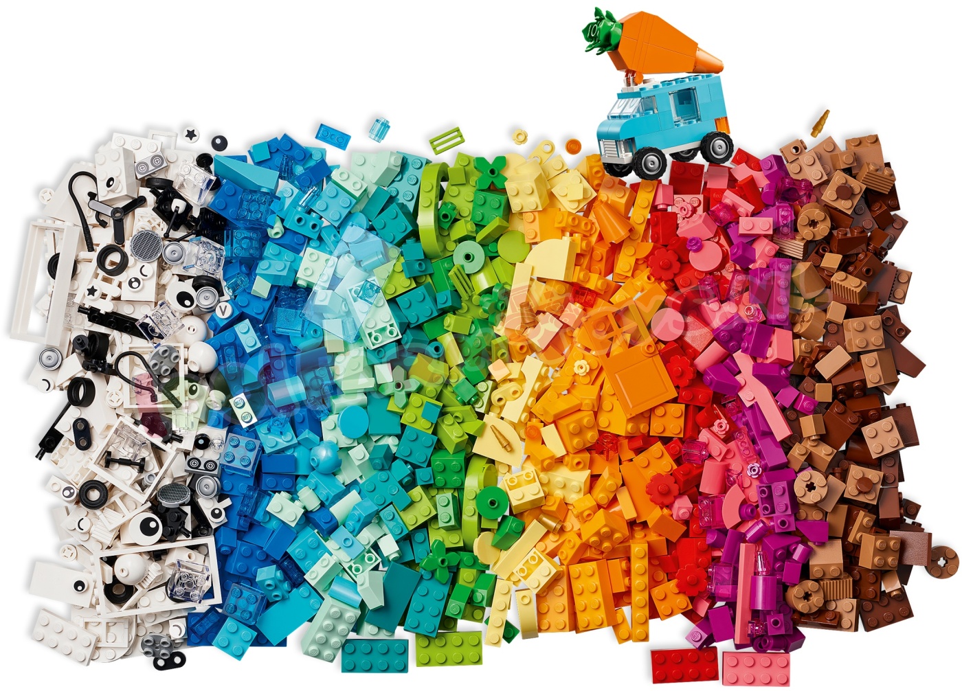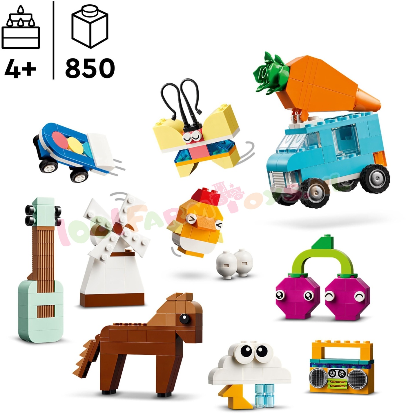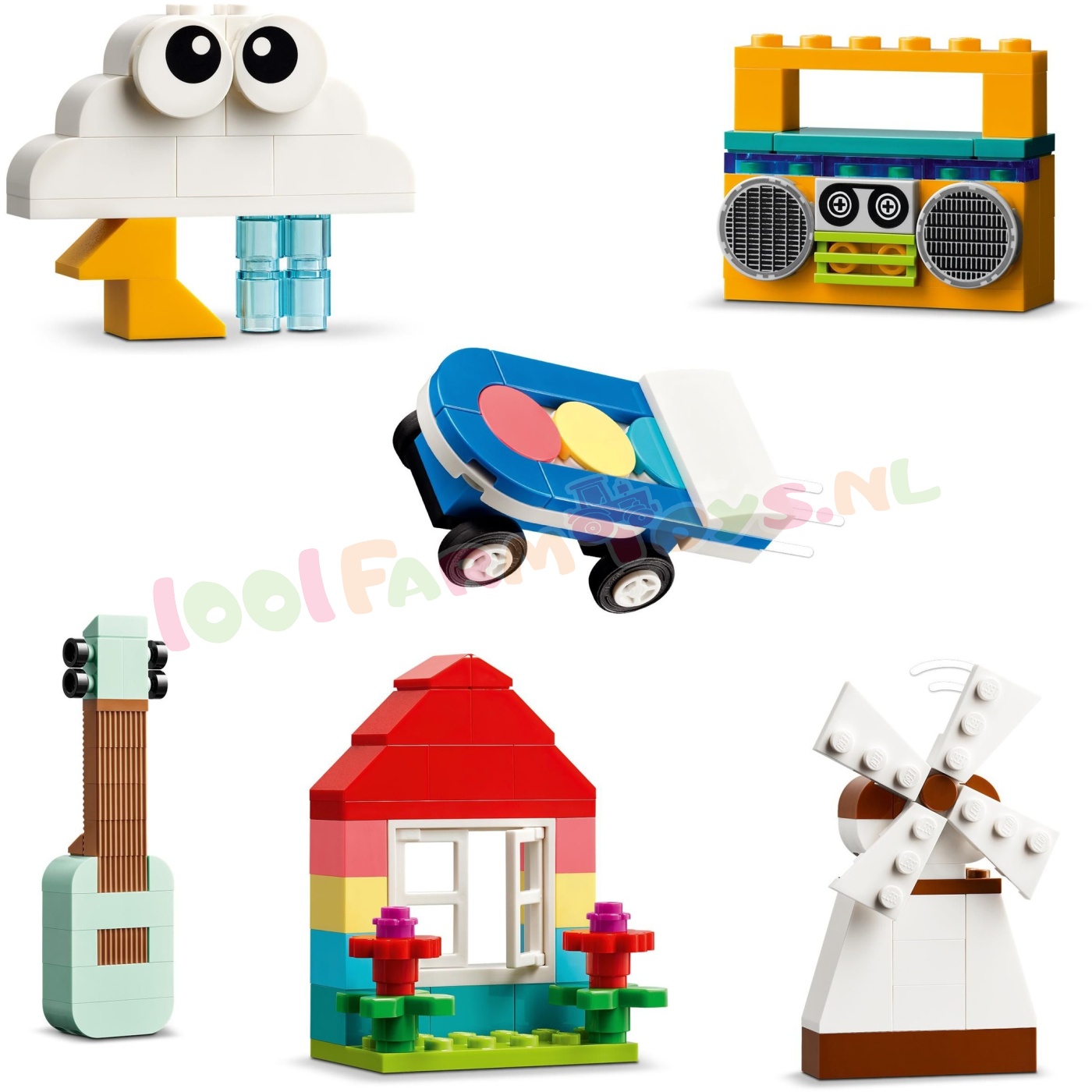 LEGO® Classic Kleurrijke creatieve opbergdoos (11038) bevat een vrolijke mix van LEGO stenen en onderdelen voor meisjes en jongens van 4 jaar en ouder. Kinderen die van creatief bouwen houden. zullen dol zijn op de vele gekleurde stenen en mogelijkheden in deze leuke opbergdoos in de vorm van een LEGO steen. Om kinderen op weg te helpen. kunnen ze 10 coole dingen bouwen: een paard. wortelwagen. kers. boombox. windmolen. skateboard. wolk. vlinder. kip en gitaar. Met behulp van de meegeleverde ideeën kunnen kinderen nog meer speelgoed bouwen. waaronder een vliegtuig. eenhoorn. modelhuis. bloem. speelgoedijsje. auto. boom en alternatief skateboard. Ze kunnen de stenen opnieuw combineren om van kleur. vorm en grootte te veranderen en deuren.ramen. wielen. planten. ogen en doorzichtige onderdelen verwisselen om hun eigen. unieke modellen te maken. LEGO Classic speelgoed zit vol ideeën en inspiratie. waarmee ouders bouwplezier en mijlpalen in de ontwikkeling met hun kinderen kunnen delen. Gekleurde bouwstenen voor kinderen – creatieve meisjes en jongens vanaf 4 jaar ontdekken allerlei kleurrijke stenen en fantasierijk speelgoed om te bouwen en aan te passen in de LEGO® Classic Kleurrijke creatieve opbergdoos Creatief speelgoed om jonge bouwers te inspireren – kinderen kunnen een paard. een wortelwagen. een kers. een boombox. een windmolen. een skateboard. een wolk. een vlinder. een kip en een gitaar bouwen Herbouwbaar speelgoed – de meegeleverde suggesties inspireren kinderen om hun modellen om te bouwen tot een vliegtuig. eenhoorn. huis. bloem. ijsje. auto. boom en alternatief skateboard Onbegrensd bouwplezier – kinderen combineren de stenen opnieuw om van kleur. vorm en grootte te wisselen en deuren. ramen. wielen. planten. ogen en doorzichtige onderdelen te veranderen en hun eigen. unieke modellen te maken Leuk cadeau – geef de LEGO® Classic Kleurrijke creatieve opbergdoos cadeau voor een verjaardag. de feestdagen of een andere gelegenheid aan kinderen die zullen genieten van het vrolijk gekleurde bouwspeelgoed Gemaakt voor jonge bouwers – de eenvoudig te volgen handleiding met afbeeldingen versnelt het bouwen en om het speelplezier nog verder te vergroten kunnen kinderen deze set combineren met andere sets uit de serie: 11034. 11035. 11036 en 11037 Bouwen aan vaardigheden – LEGO® Classic sets geven jonge bouwers de kans om vrij te spelen en zichzelf creatief te uiten 850 LEGO® onderdelen – het bouwbare speelgoedpaard is ca. 7 cm hoog en de wortelwagen is ca. 8 cm hoog. 9 cm lang en 4 cm breed.