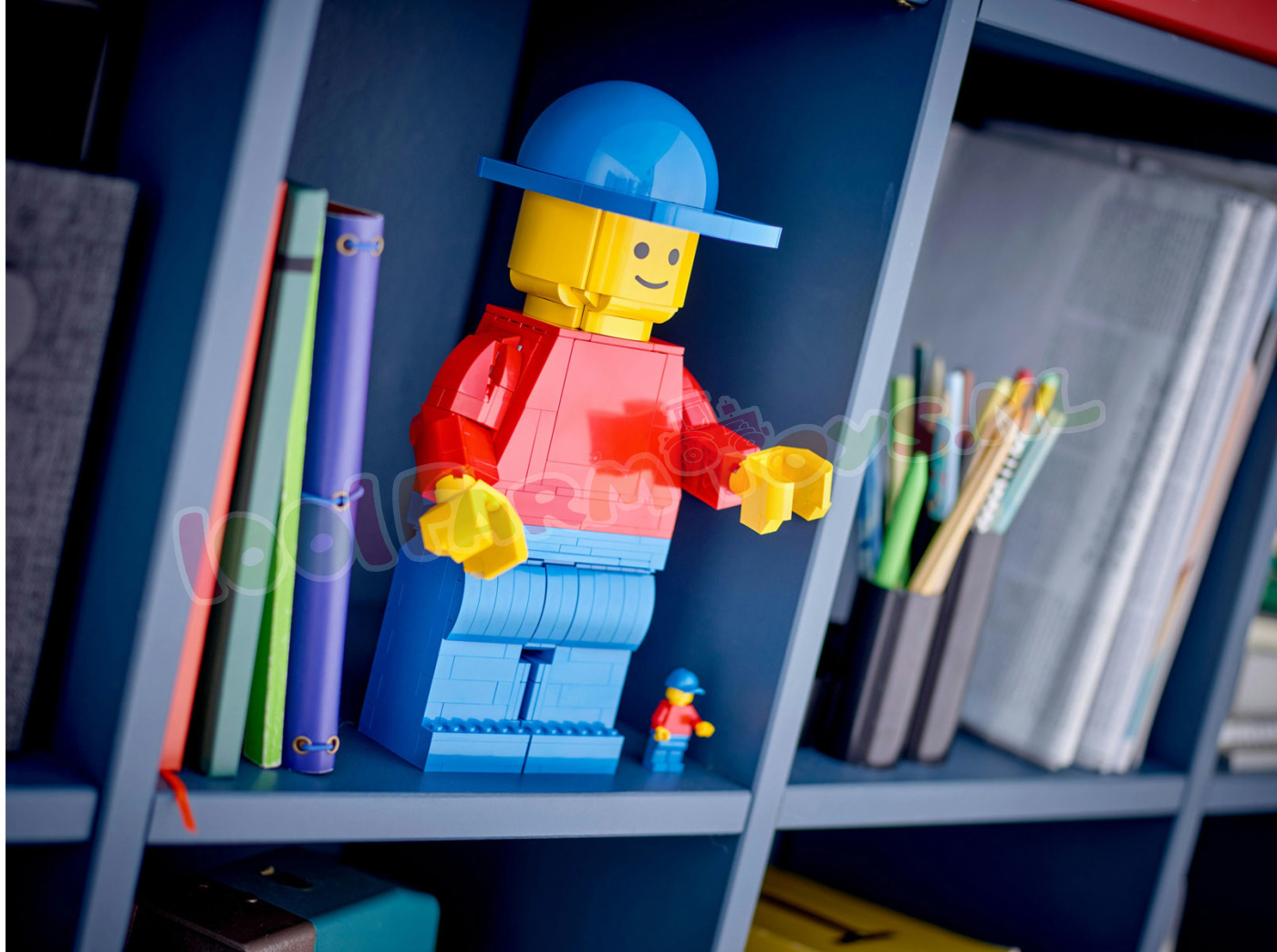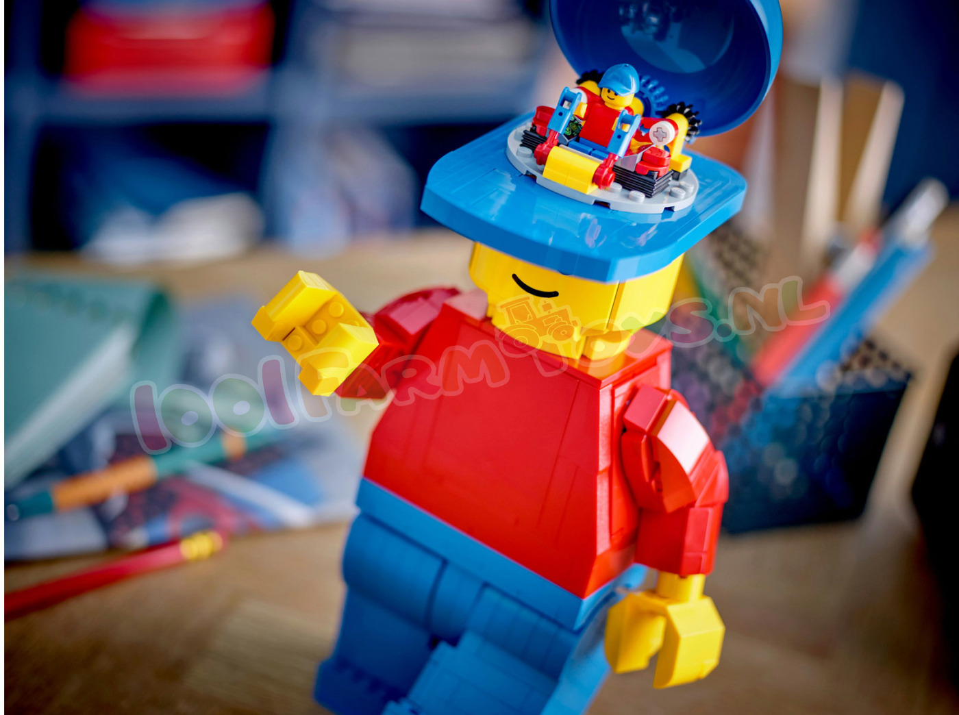 Betover elke LEGO® fan van 10 jaar of ouder met deze bouwbare. supergrote LEGO minifiguur (40649). Deze verstelbare minifiguur lijkt precies op die voor de LEGO Campus in Billund en heeft een beweegbaar hoofd. armen. benen en handen. Het model beschikt ook over een pet die kan worden geopend waar een standaard minifiguur in zit voor rollenspelplezier. Deze grote bouwfiguur ziet er geweldig uit in elk huis of kantoor en is een speciaal cadeau voor elke fan van LEGO bouwsets of minifiguren. Bouwbaar icoon – maak een supergrote LEGO minifiguur met deze fantasierijke set (40649). Dit is een leuk cadeau voor oudere kinderen of volwassen fans met een passie voor LEGO bouwsets of minifiguren Cadeau met een geheim – naast een beweegbaar hoofd. handen. armen en benen heeft deze supergrote minifiguur een pet die kan worden geopend en waarin een standaard minifiguur verstopt zit. ideaal voor rollenspelplezier Afmetingen – deze leuke. verstelbare minifiguur is ca. 27 cm hoog en vormt een fraaie blikvanger in elke kamer.
