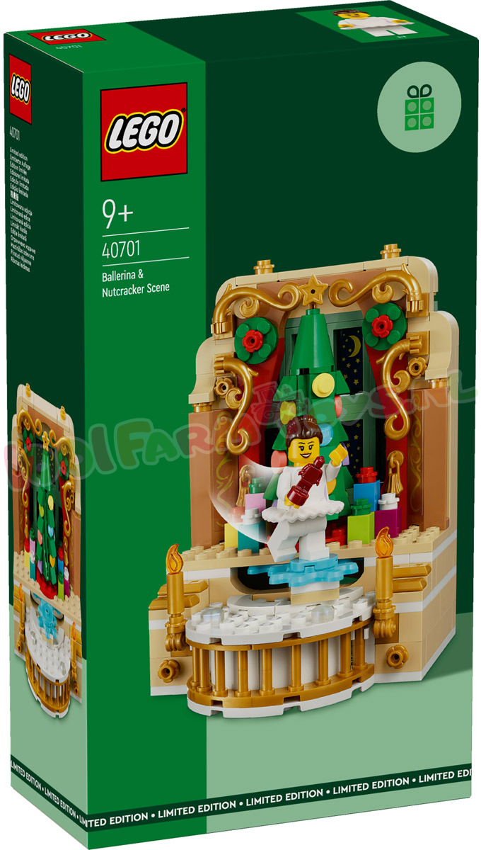 Laat kinderen de betoverende sfeer van Tsjaikovski's De Notenkraker ervaren met deze LEGO® Ballerina en notenkraker (40701) bouwset. een creatief cadeau voor meisjes en jongens vanaf 9 jaar. Jonge bouwers zullen het geweldig vinden om het beroemdeverhaal na te spelen met LEGO stenen voordat ze kennismaken met de ronddraaiende minifiguur van de ballerina. die een tutu draagt en een kleine figuur van een notenkraker vasthoudt. Andere leuke elementen zijn een raam met uitzicht op de nachtelijke hemel en een LEGO kerstboom. Een podium voor creativiteit – laat kinderen de magie van Tsjaikovski's De Notenkraker ervaren met deze LEGO® Ballerina en notenkraker set. een creatief cadeau voor meisjes en jongens van 9 jaar en ouder Maak kennis met de prima ballerina – de scène wordt tot leven gebracht door een minifiguur van een ballerina. die een tutu draagt en een kleine notenkraker in haar hand houdt Creëer de juiste sfeer – deze feestelijke bouwset bevat een LEGO® kerstboom en een raam dat uitkijkt op een sterrenhemel LEGO® kerstdecoratie – eenmaal voltooid is de set een mooi stukje LEGO kerstversiering dat je ieder jaar weer tevoorschijn kunt halen om te bewonderen Een cadeautip voor kinderen – de set is een leuk kerstcadeau voor meisjes en jongens. maarook voor jonge balletdansers en fans van De Notenkraker Afmetingen – deze set bestaat uit 244 onderdelen en is ca. 14 cm hoog. 9 cm breed en 9 cm diep.Mooi december cadeau's; aftellen voor het Kerstfeest - Chrismas.Trefwoord: Adventkalender; Adventskalender. kerstkalender.