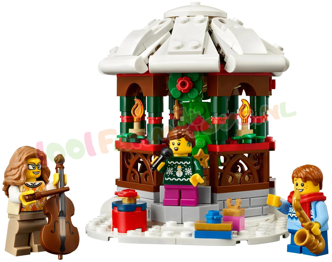 Advies Reserveer voor Afhalen.Is dat kerstmuziek die we daar horen? Verras kinderen vanaf 8 jaar met deze LEGO® Winters paviljoen (40778) bouwset. Meisjes en jongens zullen plezier beleven aan het in elkaar zetten van het LEGO paviljoen voordat ze de verschillende details ontdekken. waaronder een besneeuwd dak. een kerstboom en een kaars. 3 minifiguren van koorzangers in kersttruien brengen de magie tot leven en stimuleren creatieve rollenspellen. Deze set is een sfeervol decembercadeau voor kinderen en past goed bij andere kerstversieringen. Bevat 245 onderdelen. Winterse LEGO® set – laat kinderen genieten van een feestelijk bouwproject met deze LEGO Winters paviljoen bouwset voor meisjes en jongens van 8 jaar en ouder Een witte wereld – het LEGO® paviljoen heeft een besneeuwd dak. een versierde kerstboom en een kaars 3 LEGO® minifiguren – de kerstspeelset wordt tot leven gebracht door 3 leden van een kerstkoor: minifiguren in kersttruien die muziekinstrumenten vasthouden Decoratie voor de feestdagen – als je klaar bent met bouwen. wordt deze speel- en displayset een stukje LEGO® kerstdecoratie waar je elk jaar weer van kunt genieten Cadeau voor kinderen – deze bouwset is een geweldig cadeau met kerstthema voor meisjes en jongens en een creatief cadeau voor volwassenen die dol zijn op feestelijke LEGO® sets Afmetingen – het Winters paviljoen van 245 onderdelen is ca. 11 cm hoog. 9.5 cm breed en 11 cm diep.
