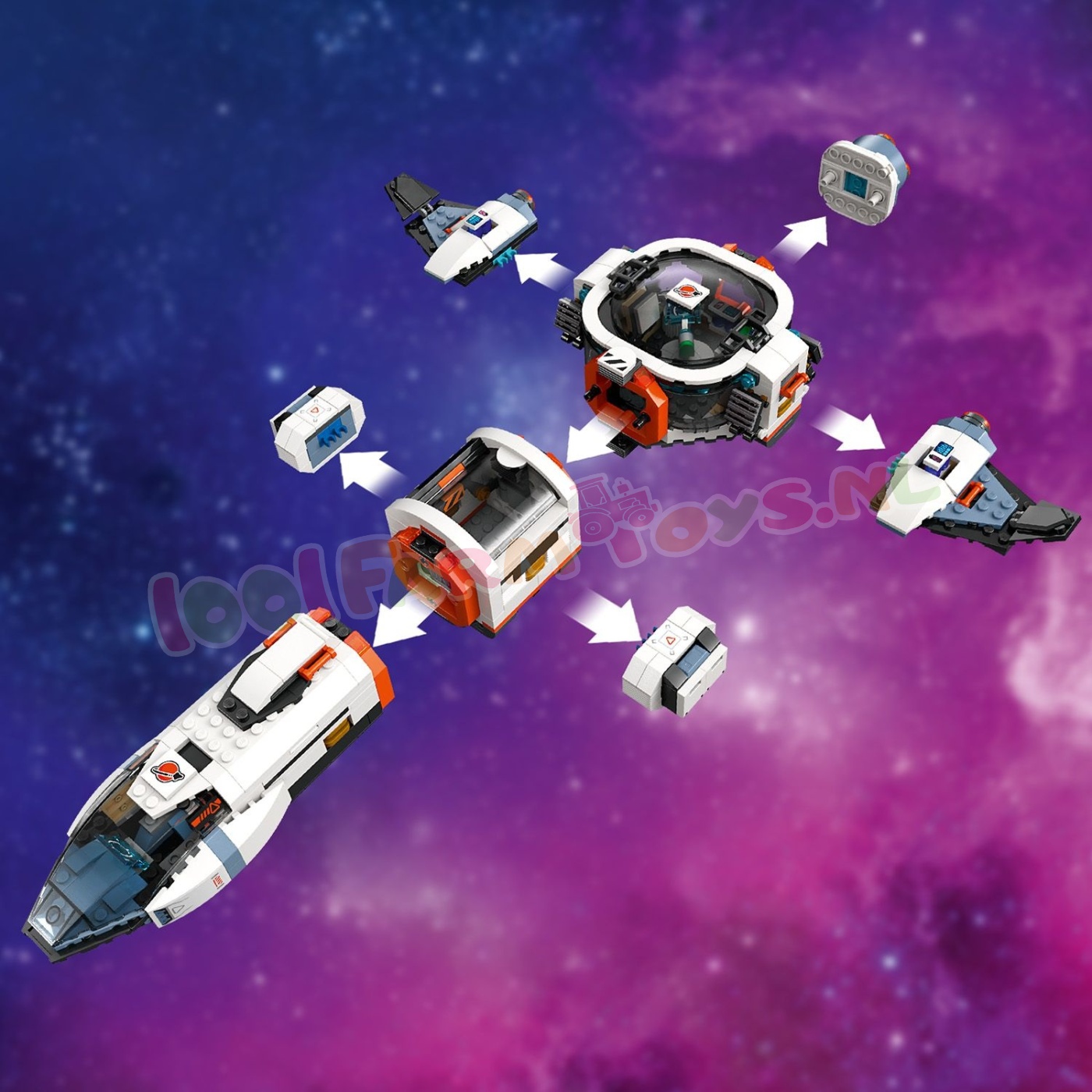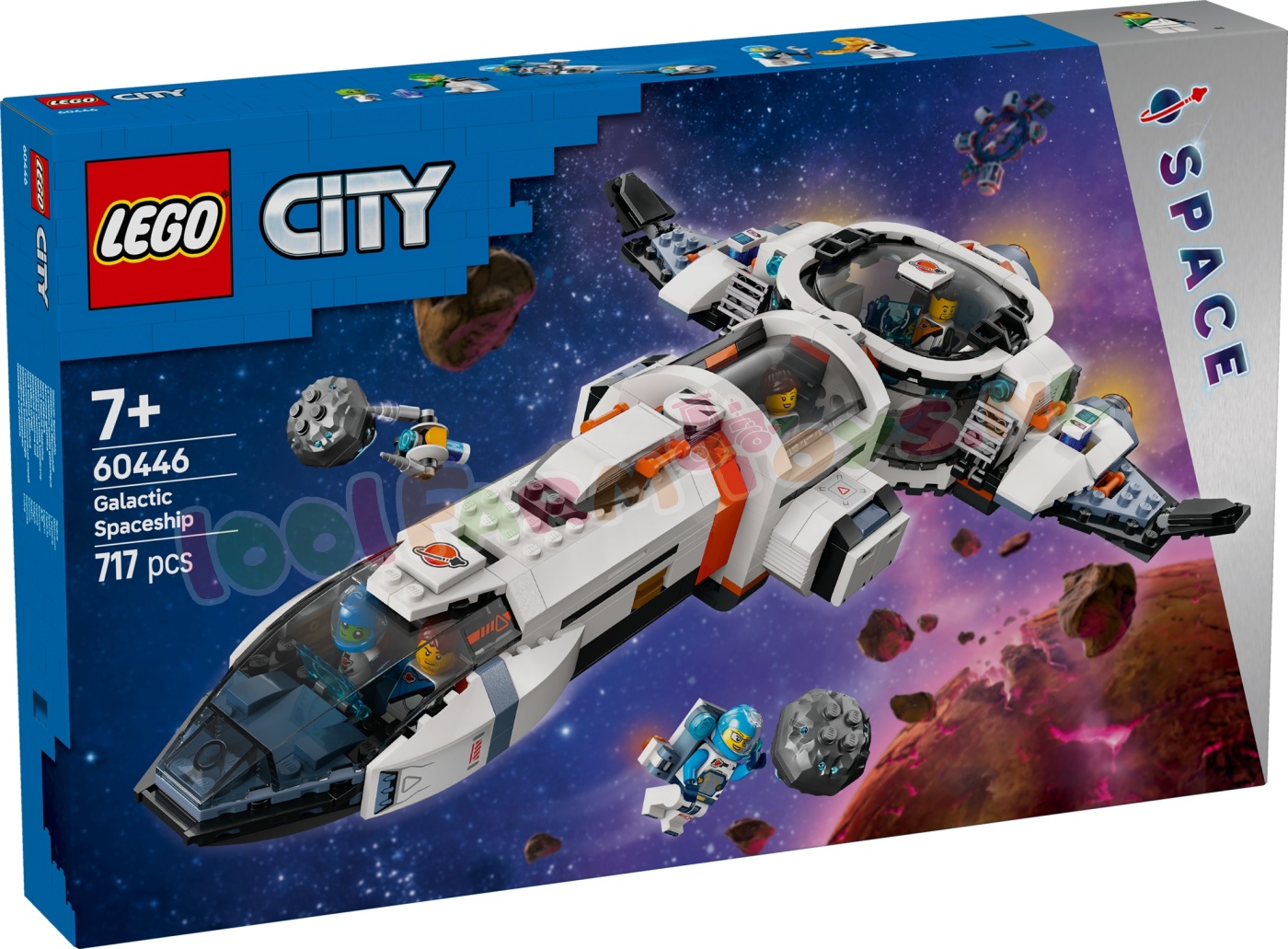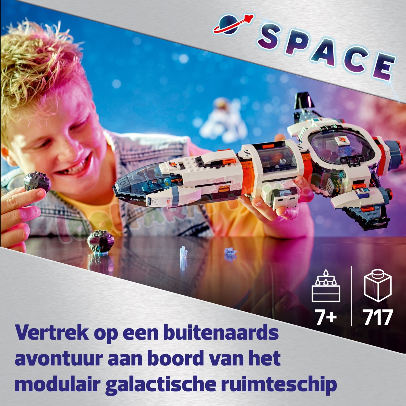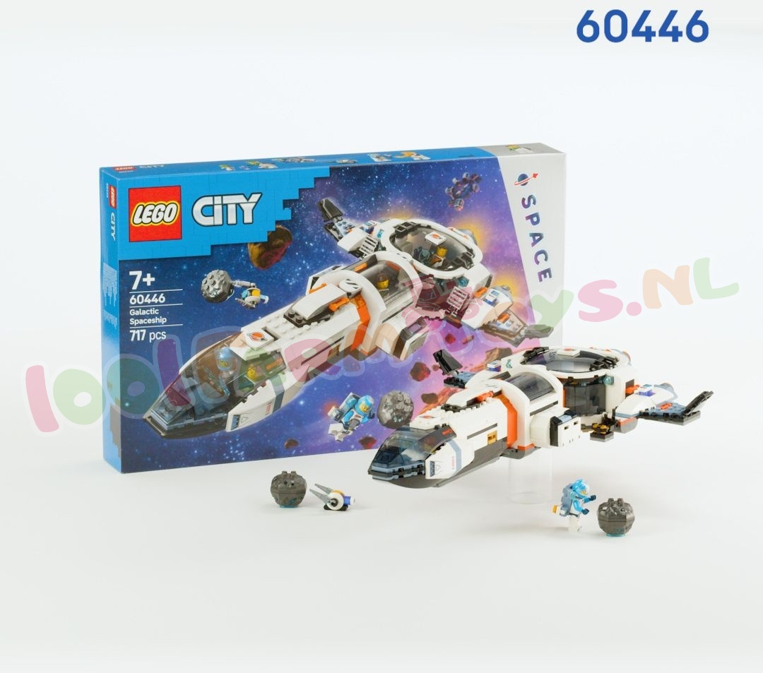 Ruimteliefhebbers vanaf 7 jaar kunnen interstellaire avonturen beleven met het LEGO® City Modulair galactisch ruimteschip (60446). Dit speelgoedmodel heeft een veelzijdige modulaire indeling. zodat kinderen het kunnen veranderen in een spaceshuttle en een basis met een laboratorium. medische ruimte en keuken. Ze kunnen meteorieten analyseren en nieuwe werelden verkennen samen met de ruimtebemanning: 4 minifiguren van astronauten. plus figuren van een buitenaards wezen en een boorrobot.Neem jonge astronauten mee op een spannend bouwavontuur met de LEGO Builder app. Hiermee kunnen ze inzoomen. hun modellen draaien en in 3D visualiseren tijdens het bouwen.LEGO City ruimteverkenningssets bevatten realistische voertuigen. gedetailleerde gebouwen en inspirerende personages die fantasie en werkelijkheid combineren voor creatief speelplezier zonder grenzen. Deze ruimteset bevat een speciaal luchtsluissysteem om het model te koppelen aan andere geschikte LEGO ruimtesets (apart verkrijgbaar). Buitenaards leuk speelgoed voor kinderen – jonge ruimtefans beleven intergalactische avonturen vol actie met deze LEGO® City Modulair galactisch ruimteschip speelset Wat zit er in de doos – alles wat kinderen nodig hebben om een modulair ruimteschip te bouwen. plus 2 speelgoedmeteorieten. 4 minifiguren van astronauten. een buitenaards wezen en een boorrobot Modulair speelgoed voor ruimtemissies – kinderen kunnen het model van het ruimteschip veranderen in een spaceshuttle en een landingsbasis met een laboratorium. medische ruimte en keuken Ruimteset met digitale gids – ruimteliefhebbers gaan op een leuk bouwavontuur met de LEGO® Builder app. waar ze kunnen inzoomen. sets kunnen draaien en hun model tijdens het bouwen in 3D kunnen visualiseren Leuk cadeau voor jonge astronauten – de verbeelding van kinderen stijgt naar nieuwe hoogten wanneer je deze speelset cadeau geeft voor de feestdagen of zomaar tussendoor aan jongens en meisjes vanaf 7 jaar Koppel aan ander ruimtespeelgoed voor nog meer interstellaire avonturen – deze bouwbare ruimteschipset bevat een luchtsluiselement waarmee het kan worden aangesloten op andere geschikte LEGO® speelsets met ruimtethema Onbeperkte speelmogelijkheden – LEGO® City ruimtespeelsets bevatten realistische voertuigen. gedetailleerde gebouwen en inspirerende personages die fantasie en werkelijkheid combineren voor speelplezier zonder grenzen Afmetingen – het ruimteschip voor kinderen in deze 717-delige set is ca. 6 cm hoog. 39 cm lang en 29 cm breed.