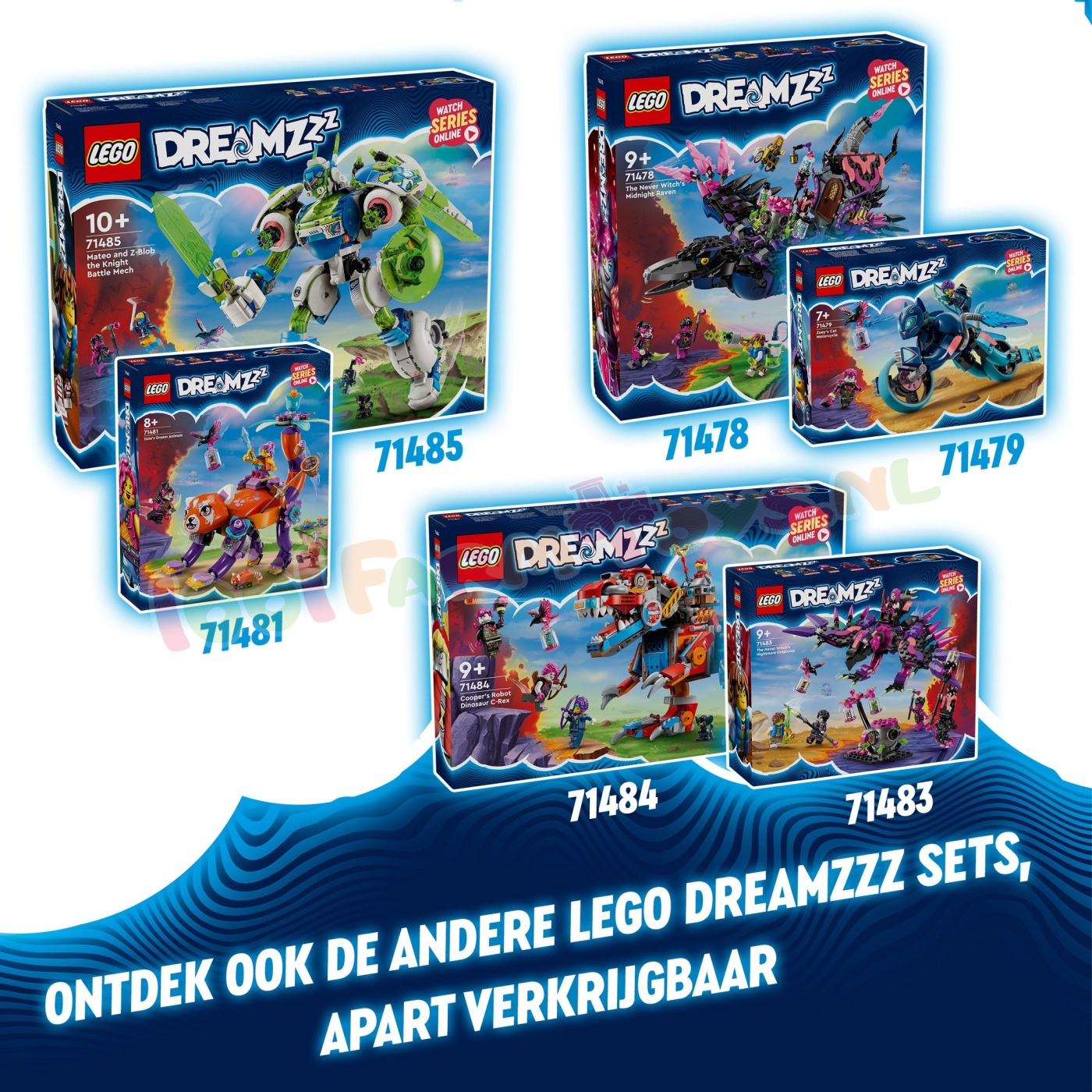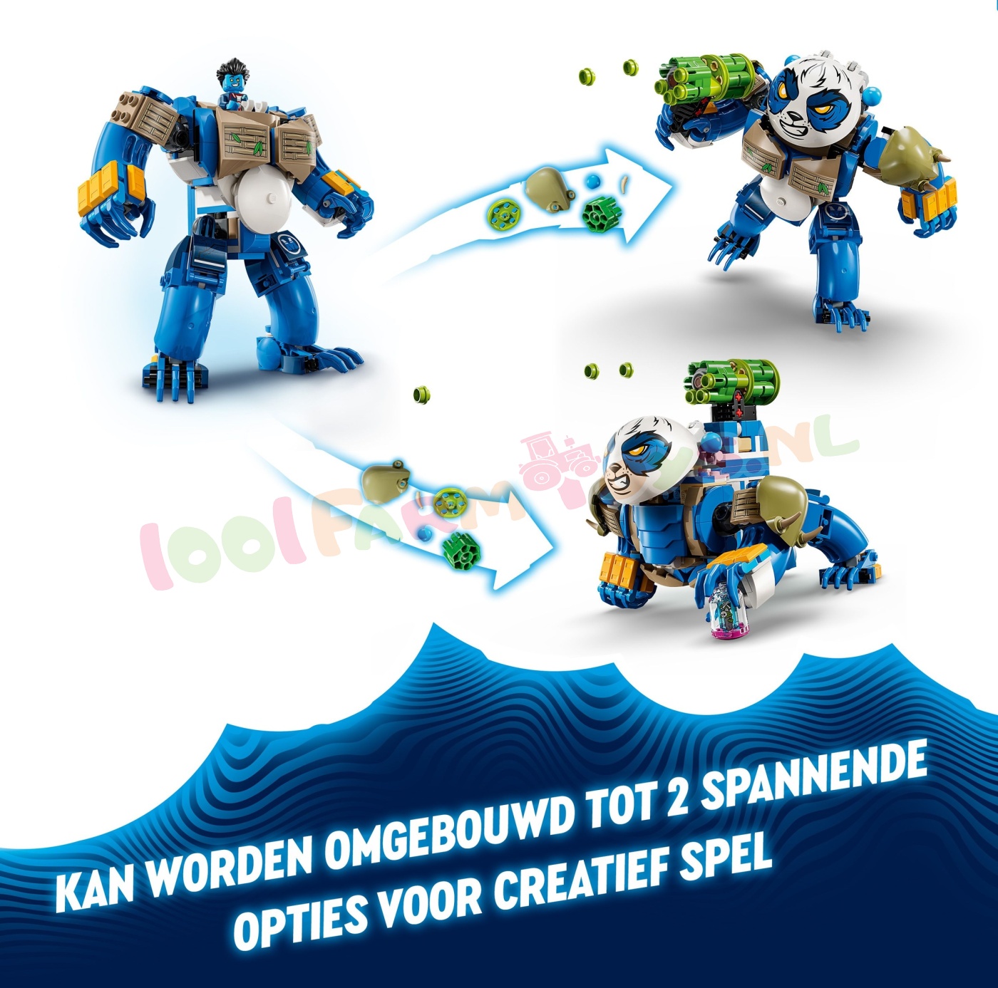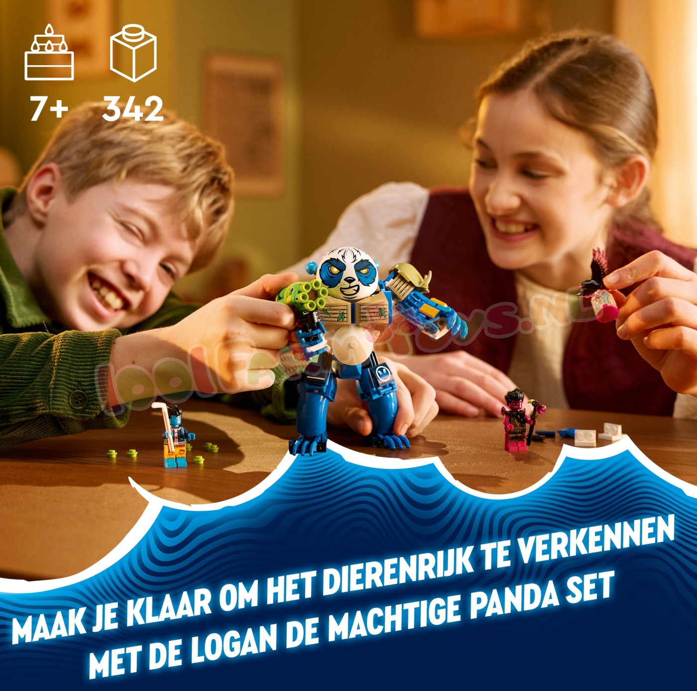 Kinderen worden creatief met deze LEGO® DREAMZzz™ Logan de machtige panda (71480) bouwset. een geweldig herbouwbaar speelgoedmodel voor jongens en meisjes vanaf 7 jaar. Deze dierenspeelset is geïnspireerd op de spannende tv-serie en laat kinderen het fantasierijke Beestendomein betreden.De gemene raaf van de Neder Heks heeft een herinnering van Logan gestolen en kinderen moeten hem helpen om die terug te krijgen! Jonge dromers bouwen de verstelbare dierenfiguur die een bamboeharnas draagt en gebruiken hun fantasie door hem om te bouwen tot een pandamachine met een 6-noppenschieter of een pandastrijder met een hockeystick en schild.Deze set is een leuk cadeau voor dierenliefhebbers en fans van de LEGO DREAMZzz tv-serie en wordt tot leven gebracht door 2 minifiguren: de held Logan en zijn dubbelganger Dogan. De set bevat bouwinstructies op basis van verhalen. die kinderen inspireren om helemaal op te gaan in het avontuur terwijl ze genieten van twee keer zo veel speelmogelijkheden. Pandaspeelgoed – betreed het Beestendomein met deze herbouwbare LEGO® DREAMZzz™ Logan de machtige panda dierenspeelset voor kinderen van 7 jaar en ouder 1 set. 2 avonturen – creatieve kinderen kunnen de LEGO® panda op 2 manieren bouwen: ze kunnen hem omtoveren tot een pandamachine met een 6-noppenschieter of een pandastrijder met een hockeystick en schild Poseer de panda – dit fantasierijke speelgoed is verstelbaar. waardoor kinderen gemakkelijk scènes uit het Beestendomein kunnen naspelen Maak kennis met de minifiguren – de set wordt tot leven gebracht door Logan en zijn duistere dubbelganger Dogan. die allebei zijn uitgerust met wapenaccessoires Cadeau voor kinderen – de speelgoedpanda is een leuk cadeau voor de feestdagen of eenverjaardag voor kinderen die van dieren houden. maar ook voor fans van de LEGO® DREAMZzz™ tv-serie Maak deel uit van de actie – deze set bevat bouwinstructies op basis van verhalen die ook digitaal beschikbaar zijn in de LEGO® Builder app. waarmee kinderen tijdens het bouwen kunnen inzoomen en modellen in 3D kunnen draaien Een wereld vol wilde dromen – met de fantasierijke LEGO® DREAMZzz™ collectie kunnen jonge dromers hun eigen avonturen kiezen terwijl ze de meest geweldige wezens en voertuigen bouwen Afmetingen – de set bestaat uit 342 onderdelen en de pandafiguur is ca. 15 cm hoog.
