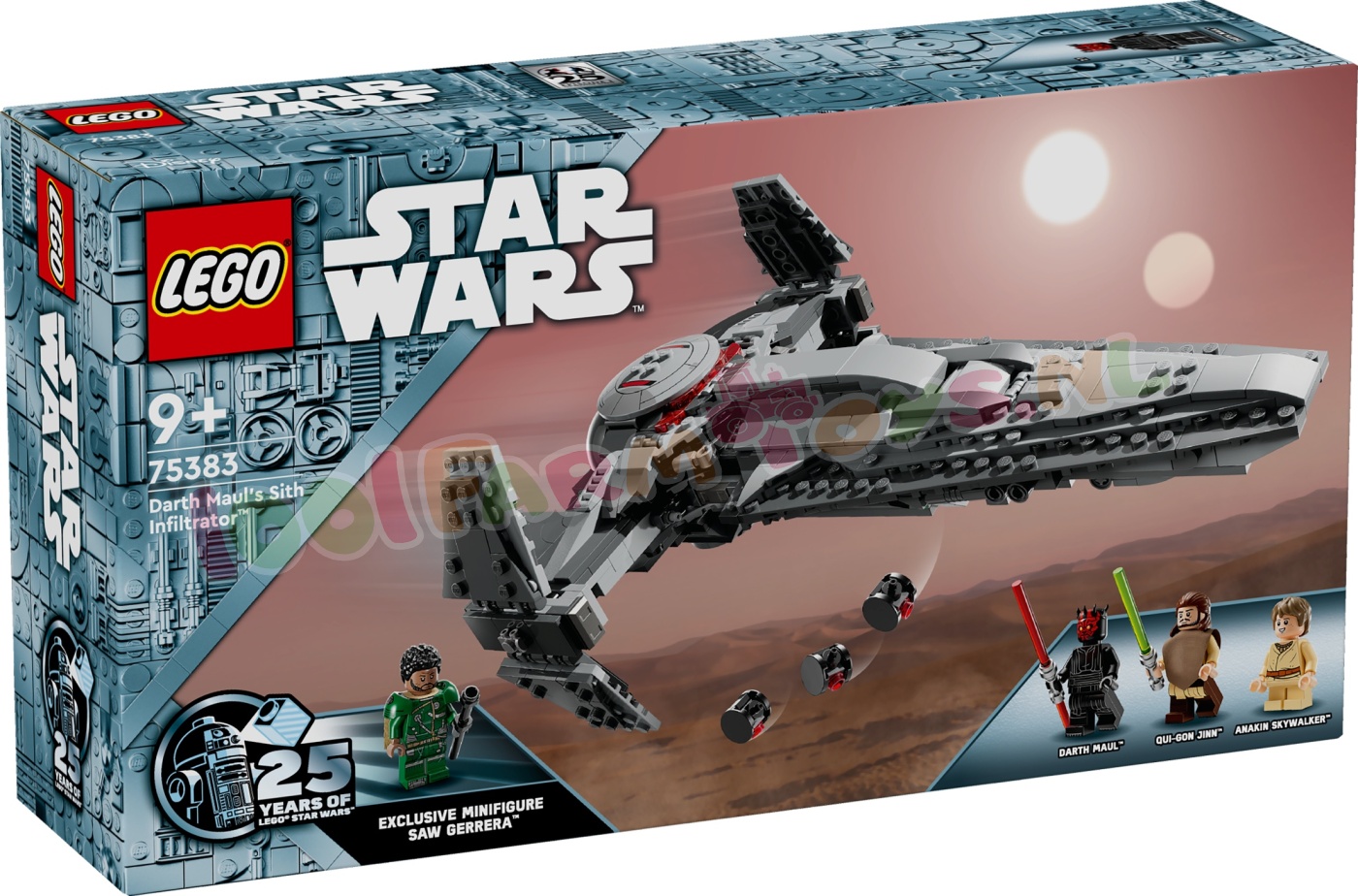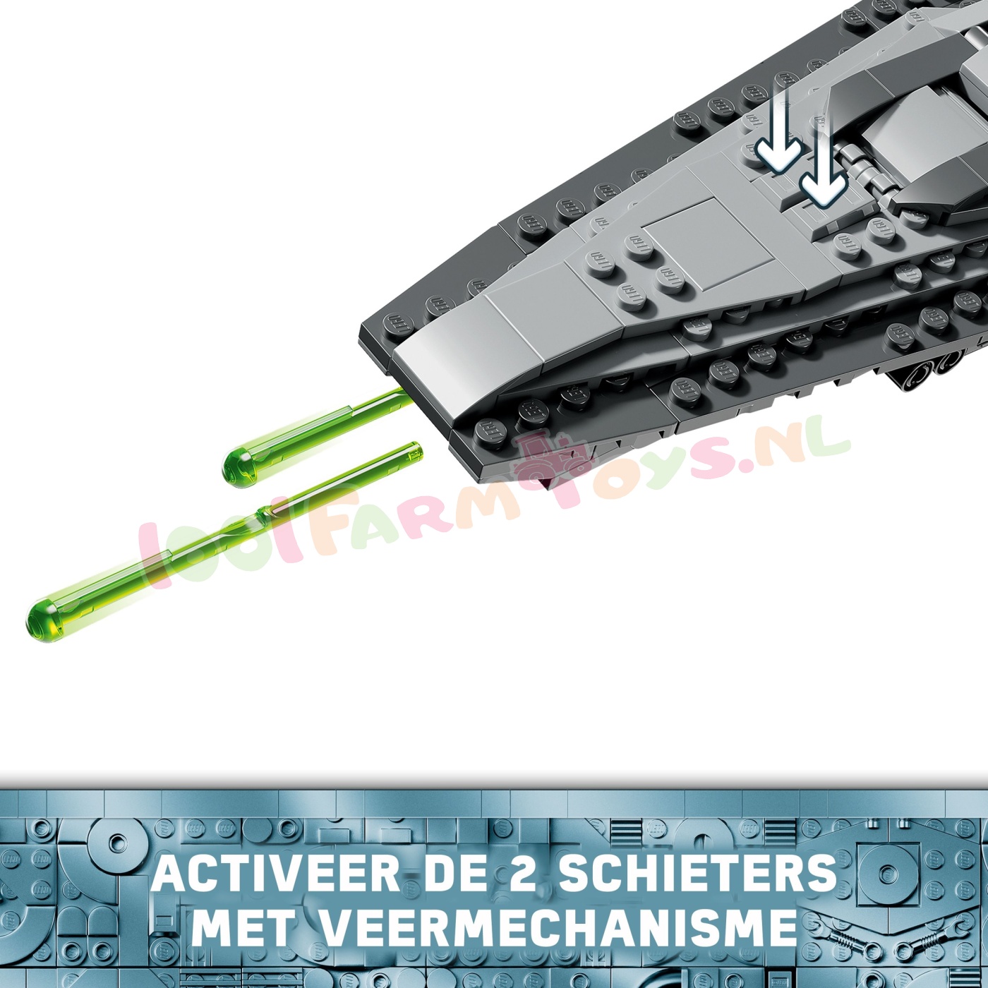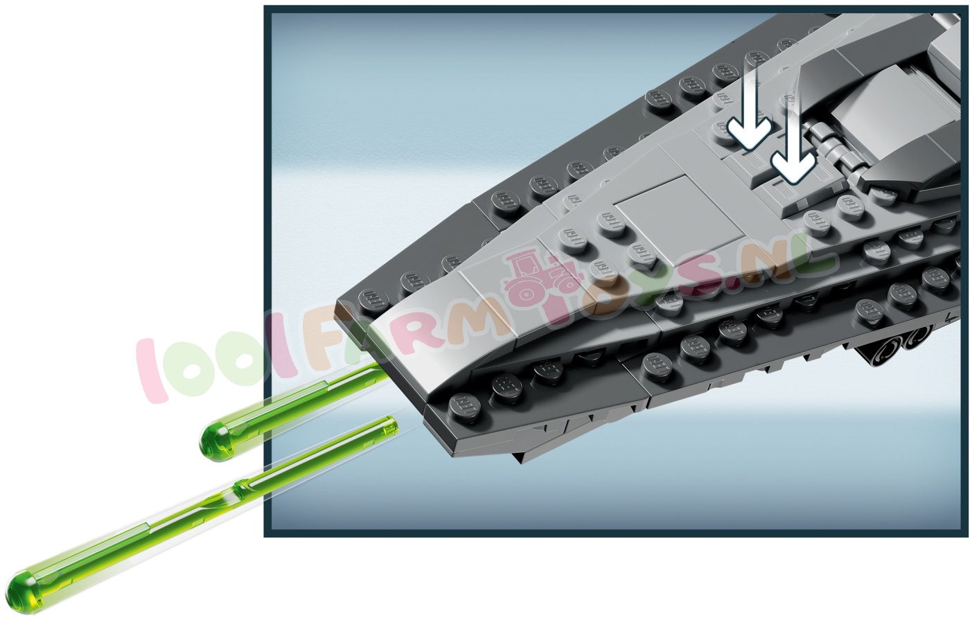 Bouw Darth Mauls Sith Infiltrator (75383) en speel zijn achtervolging op Qui-Gon Jinn uit Star Wars: The Phantom Menace na met dit bouwspeelgoed voor kinderen vanaf 9 jaar. Deze unieke set is een leuke cadeautip voor Star Wars™ fans en verzamelaars en bevat een gedetailleerd LEGO® model van Darth Mauls persoonlijke ruimteschip met veel speelse functies voor fantasierijke avonturen boordevol actie. Vouw de vleugels uit en trek het landingsgestel in om te vliegen. vuur de 2 schieters met veermechanisme af en druk op de knop om 3 DRK-1 Probe Droids uit het voorste vak te laten vallen.Inclusief 4 LEGO minifiguren voor creatief speelplezier: Darth Maul. Anakin Skywalker en Qui-Gon Jinn. plus een exclusieve LEGO Star Wars Saw Gerrera minifiguur ter ere van het 25-jarig jubileum met een displaystandaard. Darth Maul is uitgerust met een dubbel lichtzwaard en Qui-Gon Jinn heeft een lichtzwaard voor duels. De set bevat ook Darth Mauls Bloodfin speeder. die in de cockpit van het ruimteschip past. Bouwbaar LEGO® Star Wars™ Darth Maul speelgoedruimteschip – bouw Darth Mauls Sith Infiltrator en Bloodfin speeder en speel scènes uit Star Wars: The Phantom Menace na met dit bouwspeelgoed voor kinderen Fantasierijk. avontuurlijk bouwspeelgoed met 4 LEGO® minifiguren – inclusief Darth Maul. Anakin Skywalker en Qui-Gon Jinn. plus een exclusieve LEGO Star Wars™ Saw Gerrera minifiguur ter ere van het 25-jarig jubileum met een displaystandaard Speelse details – met uitvouwbare vleugels om te vliegen. een intrekbaar landingsgestel. 2 schieters met veermechanisme en een luik met knopbediening om de 3 DRK-1 Probe Droids uit het voorste vak te laten vallen Bouwspeelgoed om te verzamelen voor creatief speelplezier – Darth Maul kan op zijn Bloodfin speeder in de cockpit van het ruimteschip zitten. De set bevat ook zijn dubbelbladige lichtzwaard en het lichtzwaard van Qui-Gon Jinn Cadeautip voor kinderen vanaf 9 jaar – dit LEGO® Star Wars™ ruimteschip bouwspeelgoed is een leuk verjaardagscadeau voor jongens. meisjes en Star Wars fans of verzamelaars Een helpende hand – met de LEGO® Builder app kunnen kinderen tijdens het bouwen inzoomen. sets in 3D draaien. een digitale versie van hun bouwmodel draaien en visualiseren. hun voortgang bijhouden en sets opslaan Star Wars™ bouwspeelgoed voor alle leeftijden – met LEGO® Star Wars sets kunnen kinderen en volwassen fans klassieke scènes nabouwen. unieke verhalen naspelen en de bouwbare modellen op een mooi plekje neerzetten Bouwen. spelen en neerzetten – het bouwbare Star Wars™ speelgoedruimteschip in deze 640-delige LEGO® bouwset is ca. 7 cm hoog. 27 cm lang en 20 cm breed.