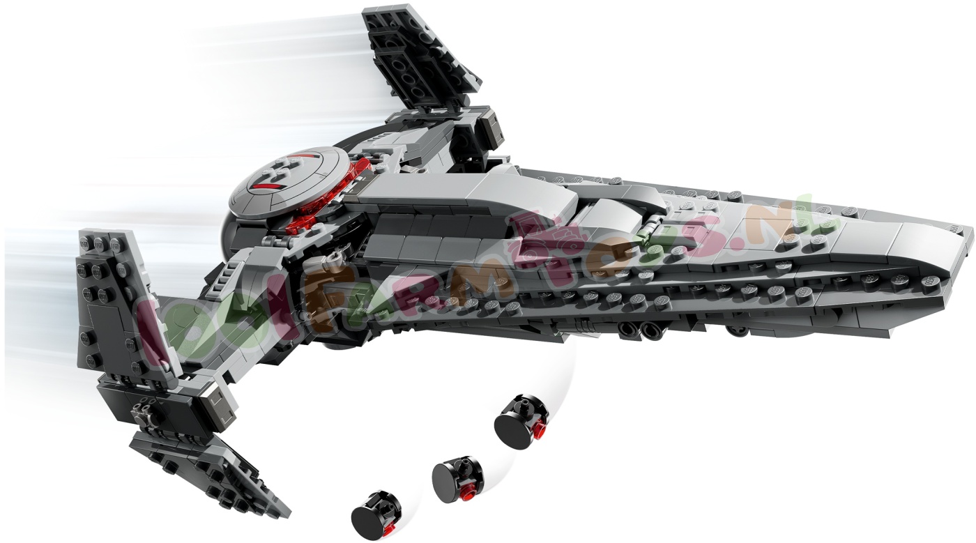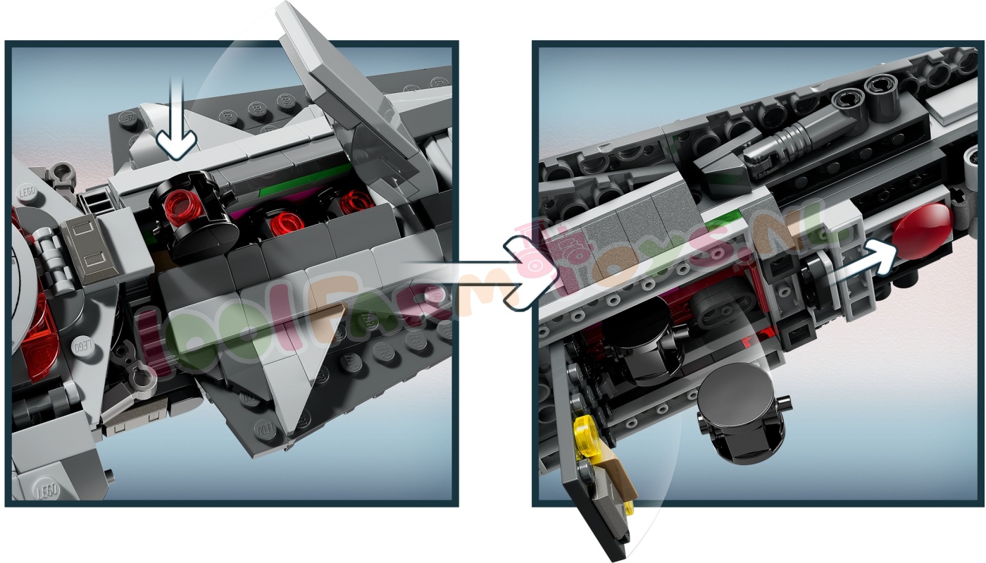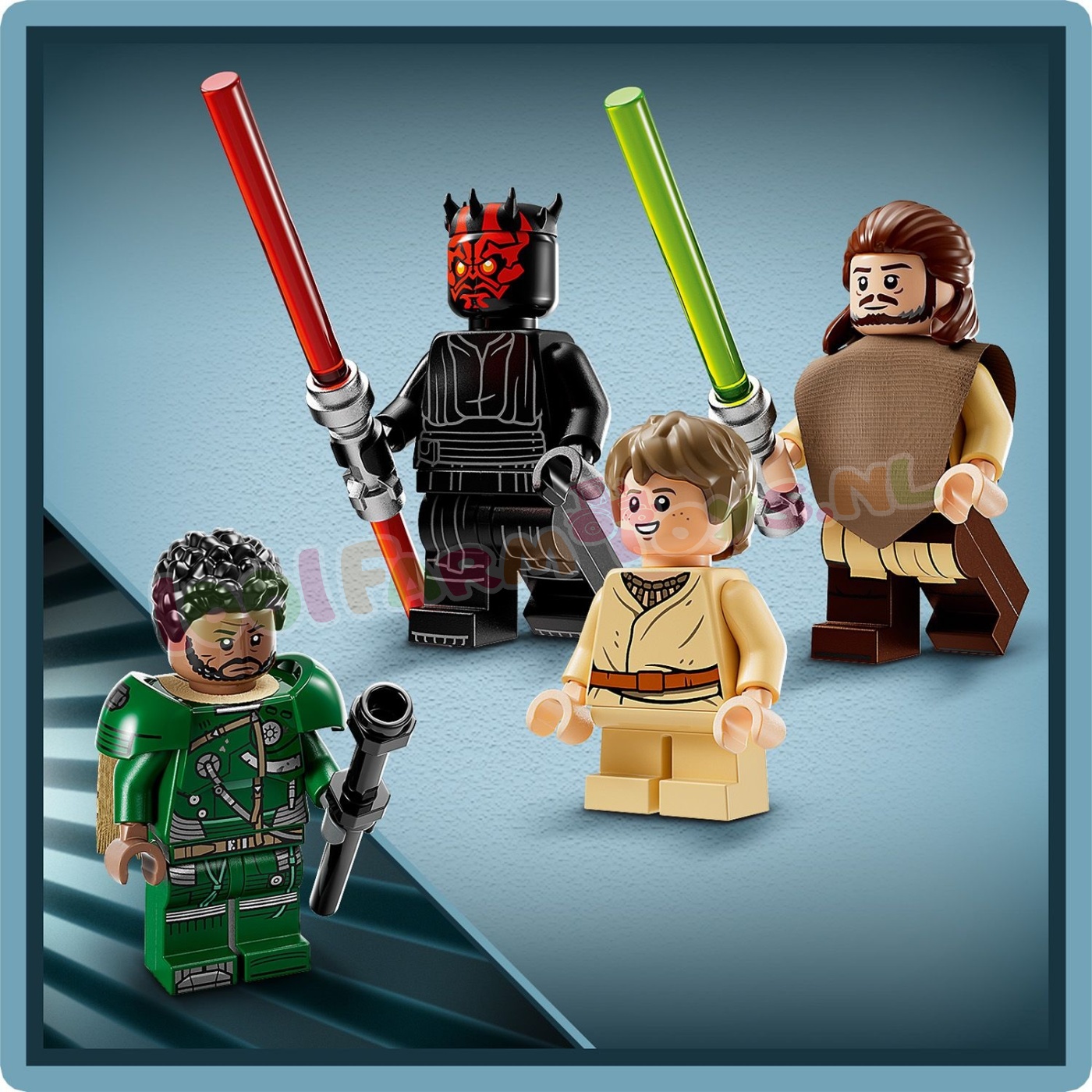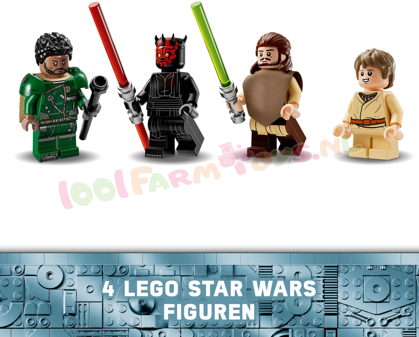 Bouw Darth Mauls Sith Infiltrator (75383) en speel zijn achtervolging op Qui-Gon Jinn uit Star Wars: The Phantom Menace na met dit bouwspeelgoed voor kinderen vanaf 9 jaar. Deze unieke set is een leuke cadeautip voor Star Wars™ fans en verzamelaars en bevat een gedetailleerd LEGO® model van Darth Mauls persoonlijke ruimteschip met veel speelse functies voor fantasierijke avonturen boordevol actie. Vouw de vleugels uit en trek het landingsgestel in om te vliegen. vuur de 2 schieters met veermechanisme af en druk op de knop om 3 DRK-1 Probe Droids uit het voorste vak te laten vallen.Inclusief 4 LEGO minifiguren voor creatief speelplezier: Darth Maul. Anakin Skywalker en Qui-Gon Jinn. plus een exclusieve LEGO Star Wars Saw Gerrera minifiguur ter ere van het 25-jarig jubileum met een displaystandaard. Darth Maul is uitgerust met een dubbel lichtzwaard en Qui-Gon Jinn heeft een lichtzwaard voor duels. De set bevat ook Darth Mauls Bloodfin speeder. die in de cockpit van het ruimteschip past. Bouwbaar LEGO® Star Wars™ Darth Maul speelgoedruimteschip – bouw Darth Mauls Sith Infiltrator en Bloodfin speeder en speel scènes uit Star Wars: The Phantom Menace na met dit bouwspeelgoed voor kinderen Fantasierijk. avontuurlijk bouwspeelgoed met 4 LEGO® minifiguren – inclusief Darth Maul. Anakin Skywalker en Qui-Gon Jinn. plus een exclusieve LEGO Star Wars™ Saw Gerrera minifiguur ter ere van het 25-jarig jubileum met een displaystandaard Speelse details – met uitvouwbare vleugels om te vliegen. een intrekbaar landingsgestel. 2 schieters met veermechanisme en een luik met knopbediening om de 3 DRK-1 Probe Droids uit het voorste vak te laten vallen Bouwspeelgoed om te verzamelen voor creatief speelplezier – Darth Maul kan op zijn Bloodfin speeder in de cockpit van het ruimteschip zitten. De set bevat ook zijn dubbelbladige lichtzwaard en het lichtzwaard van Qui-Gon Jinn Cadeautip voor kinderen vanaf 9 jaar – dit LEGO® Star Wars™ ruimteschip bouwspeelgoed is een leuk verjaardagscadeau voor jongens. meisjes en Star Wars fans of verzamelaars Een helpende hand – met de LEGO® Builder app kunnen kinderen tijdens het bouwen inzoomen. sets in 3D draaien. een digitale versie van hun bouwmodel draaien en visualiseren. hun voortgang bijhouden en sets opslaan Star Wars™ bouwspeelgoed voor alle leeftijden – met LEGO® Star Wars sets kunnen kinderen en volwassen fans klassieke scènes nabouwen. unieke verhalen naspelen en de bouwbare modellen op een mooi plekje neerzetten Bouwen. spelen en neerzetten – het bouwbare Star Wars™ speelgoedruimteschip in deze 640-delige LEGO® bouwset is ca. 7 cm hoog. 27 cm lang en 20 cm breed.